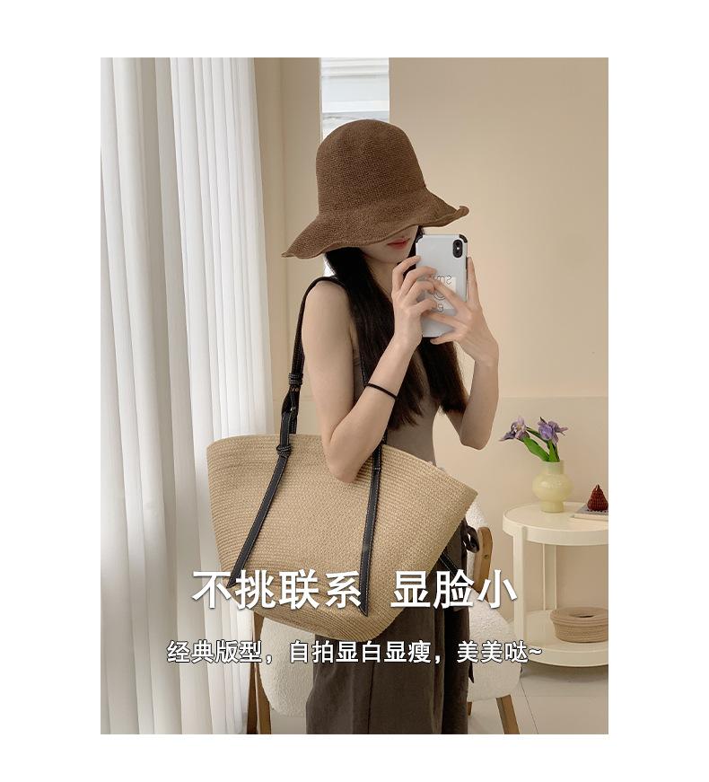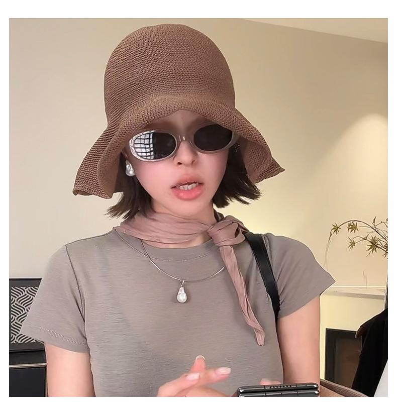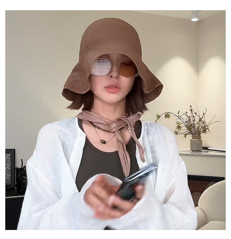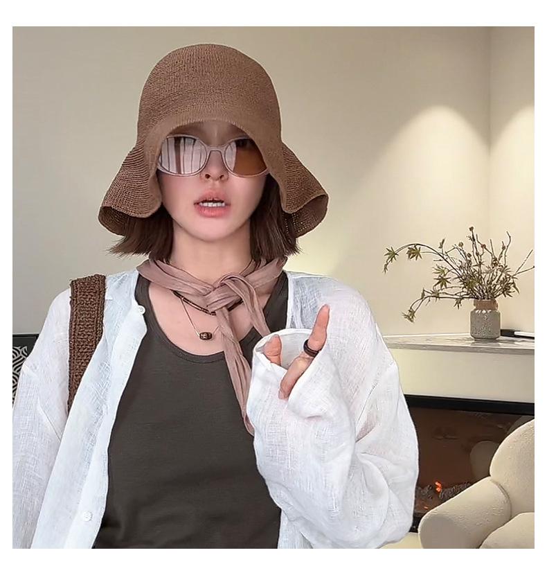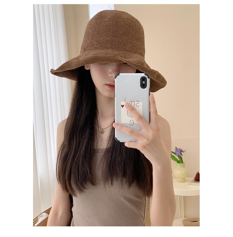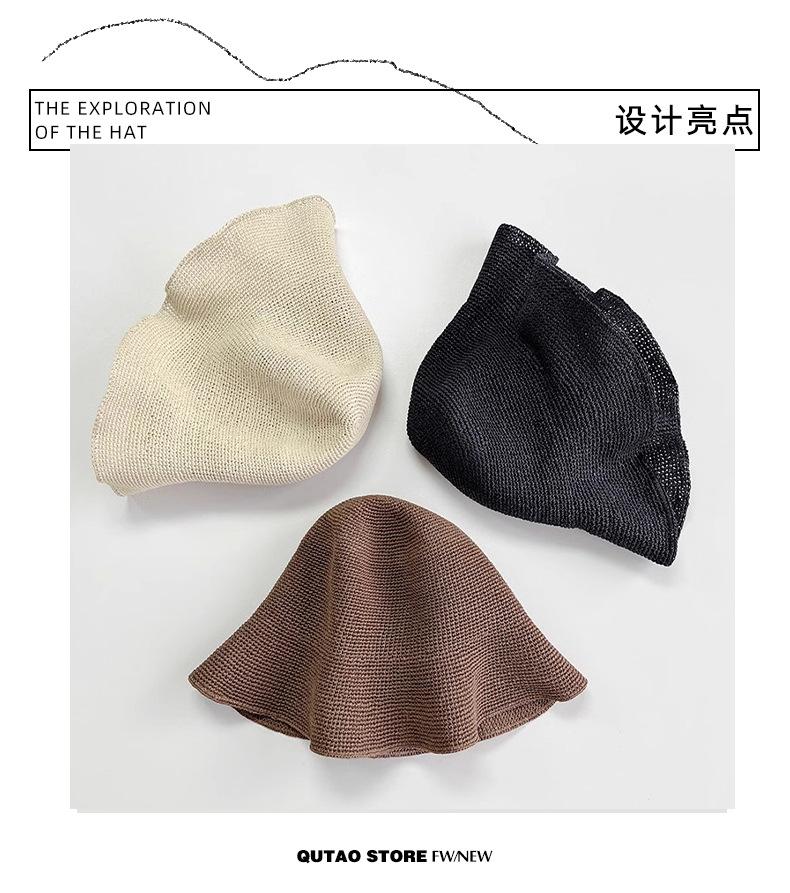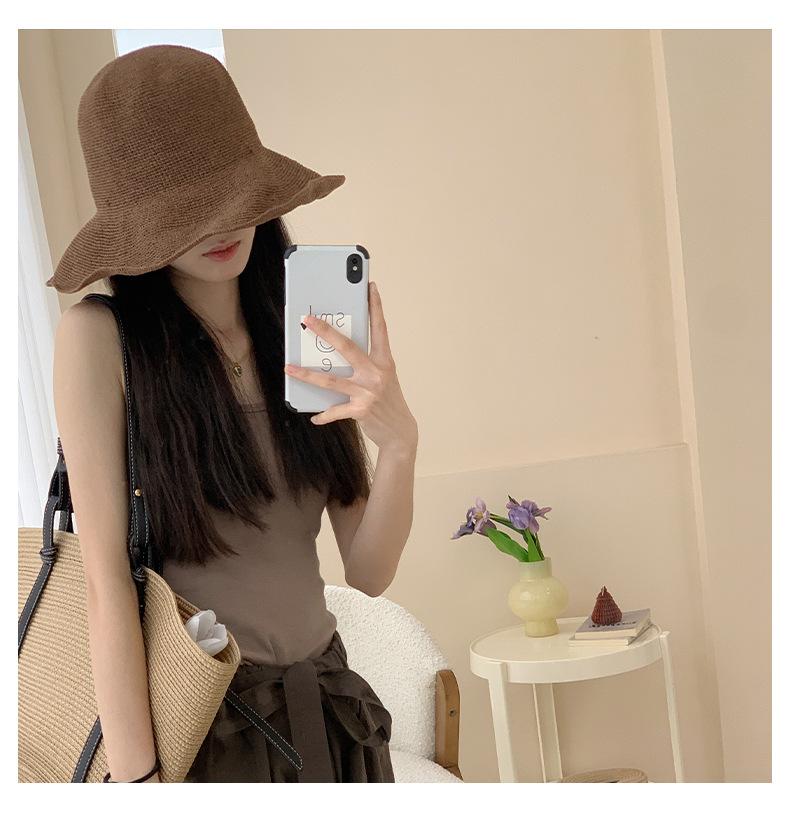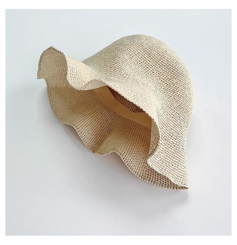 Sombrero de pescador de paja suave, tejido con papel y protector solar, sencillo y combinable, para playa, para mujer, 2024