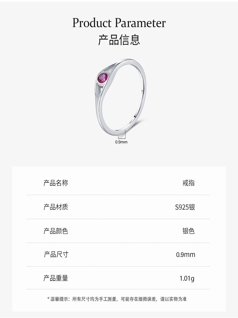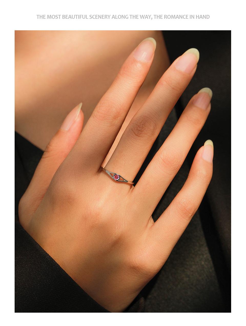 Anillo de plata de ley S925 con diseño de nicho vintage para mujer, redondo, color rosa y rojo, con un toque de tesoro, simple y apilado.