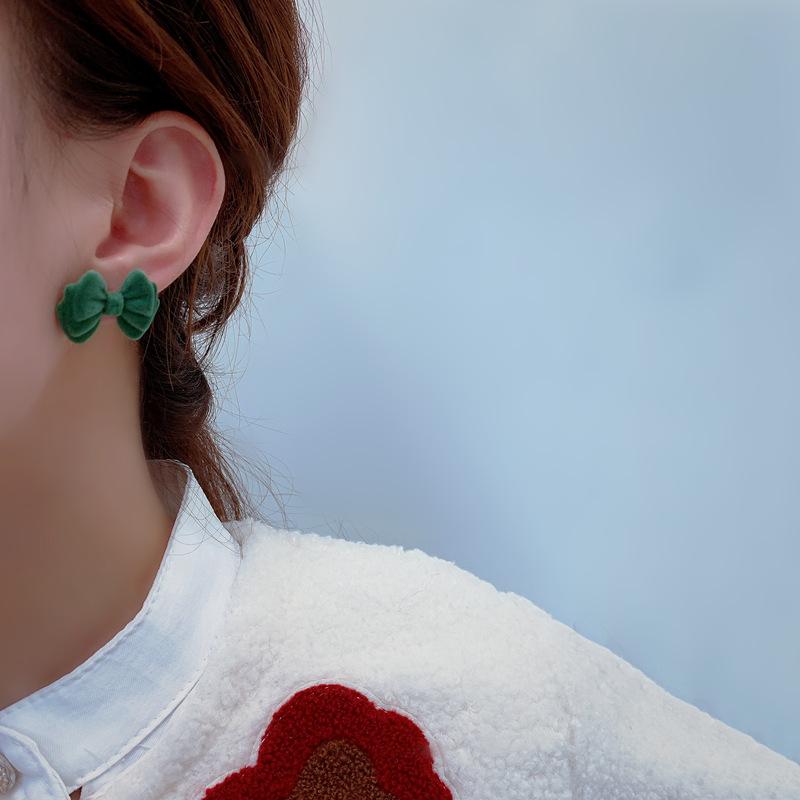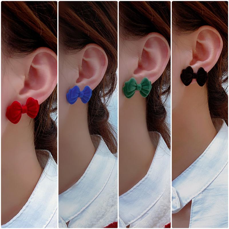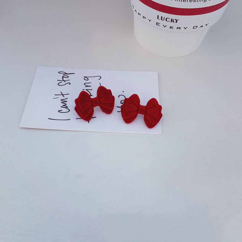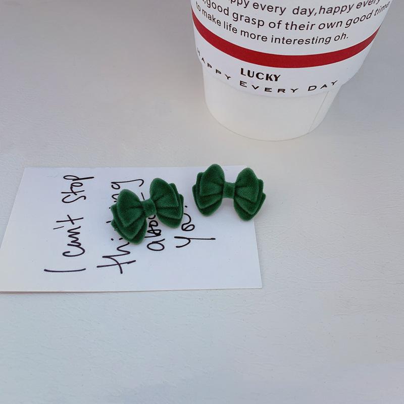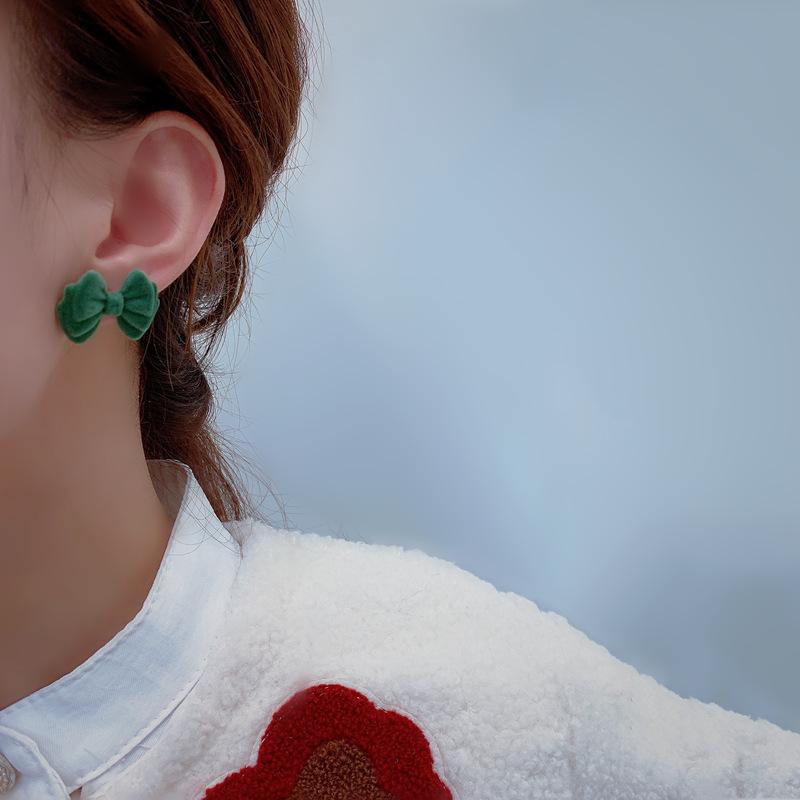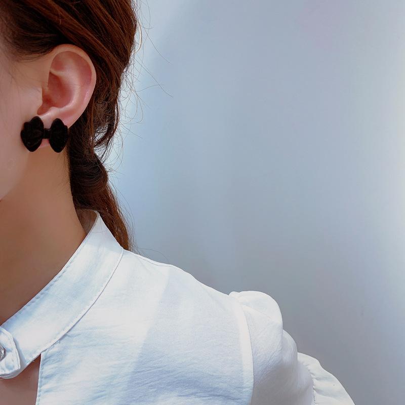 Pendientes de plata de ley s925 con diseño de aguja y lazo flocado de Corea del Sur, de Dongdaemun, sencillos y modernos, con diseño de celebridades de Internet para mujer.