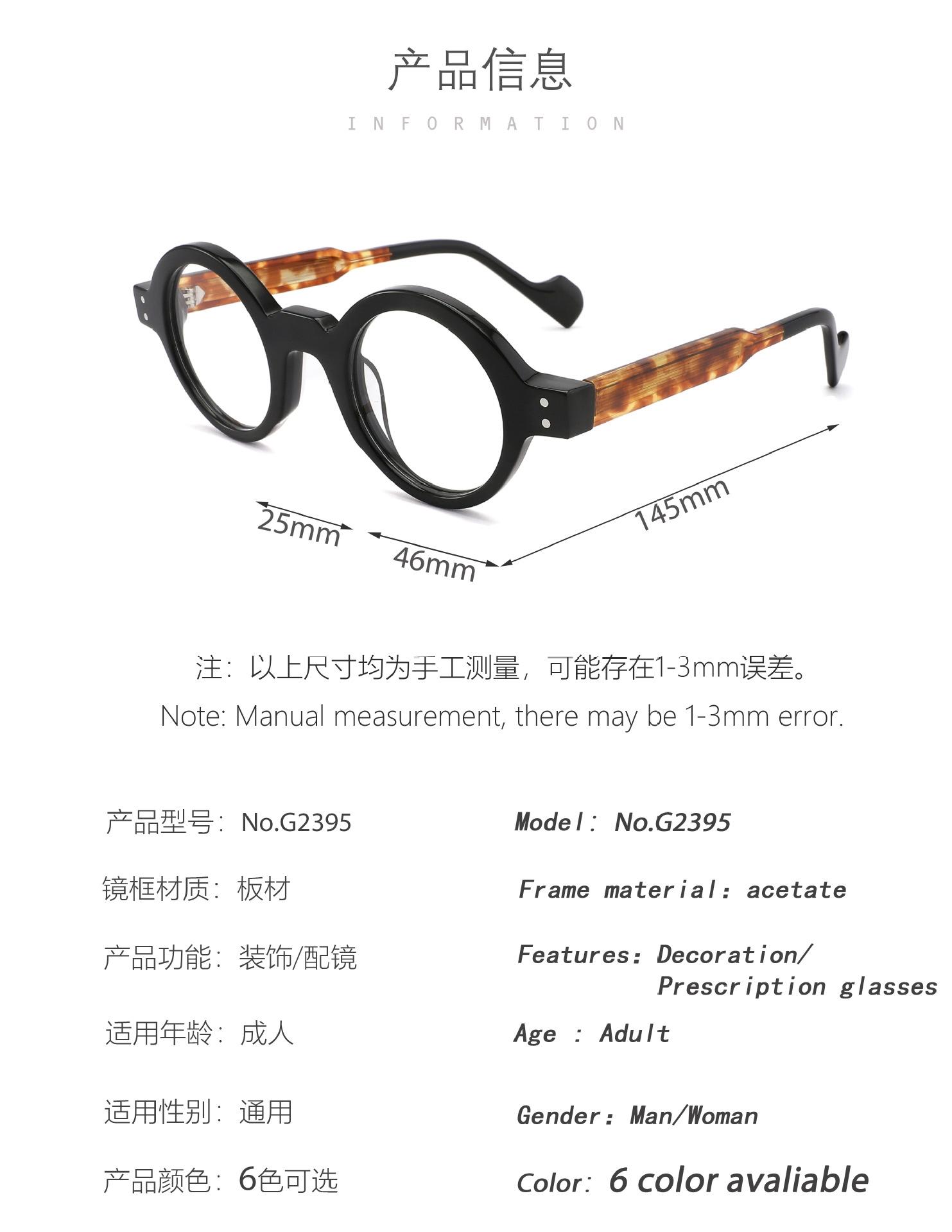 Gafas de moda transfronteriza con montura redonda, estilo retro con costuras de color caramelo, estilo europeo y americano con personalidad y costuras avanzadas, gafas lisas.