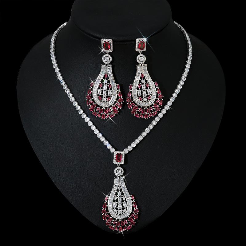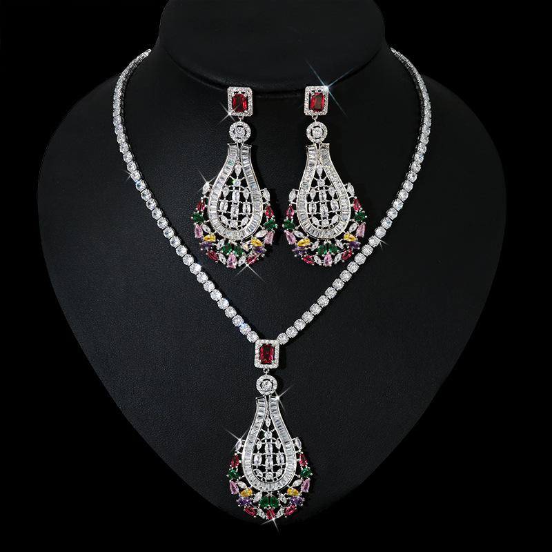 Joyería de alta gama para novias europeas y americanas, collar y pendientes de circonita, joyería de traje de hip-hop, joyería Joker informal al por mayor