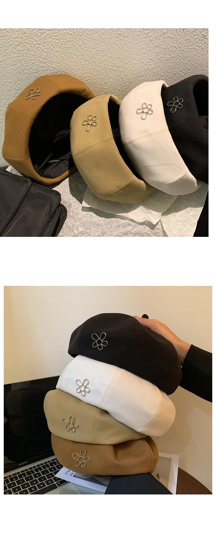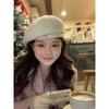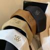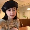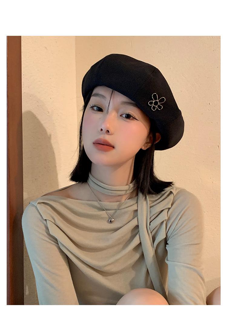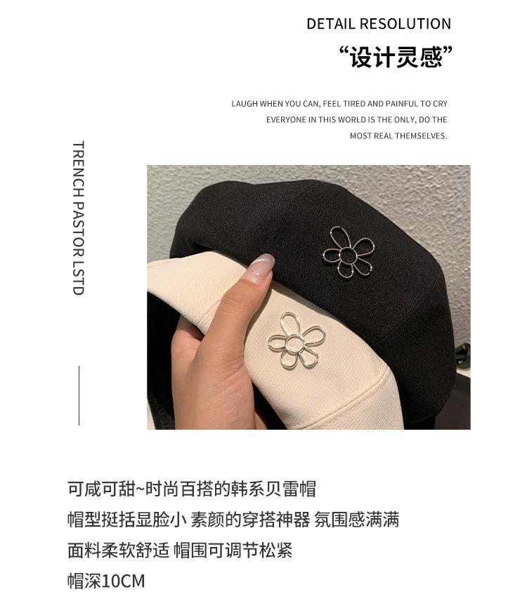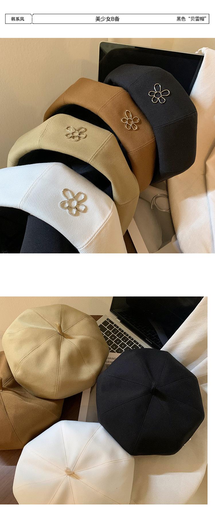 Boina de punto de flor negra para mujer estilo coreano versátil que afina el rostro, sombrero de pintor Beilei de cabeza pequeña, sombrero de circunferencia de cabeza grande, moda