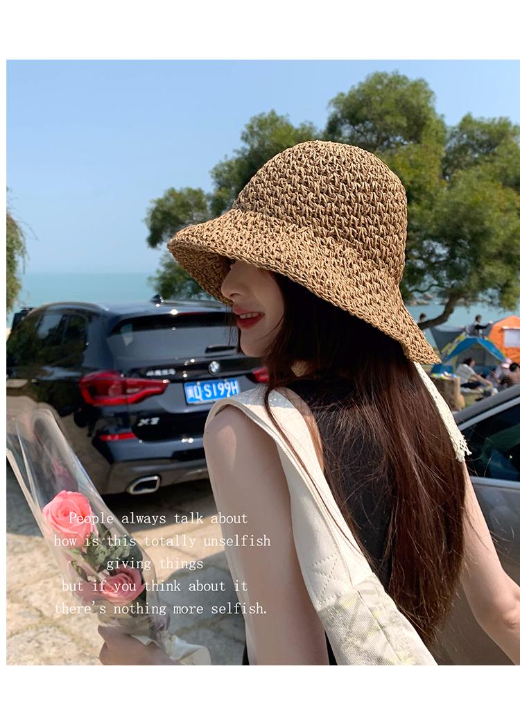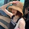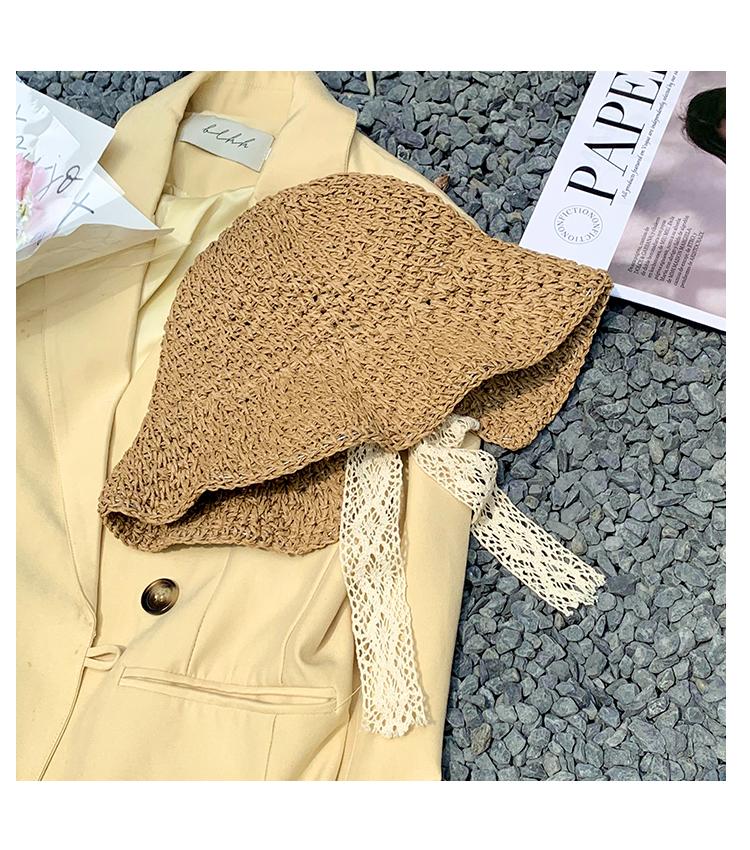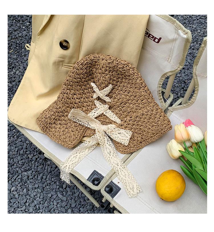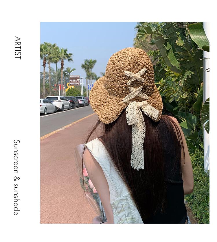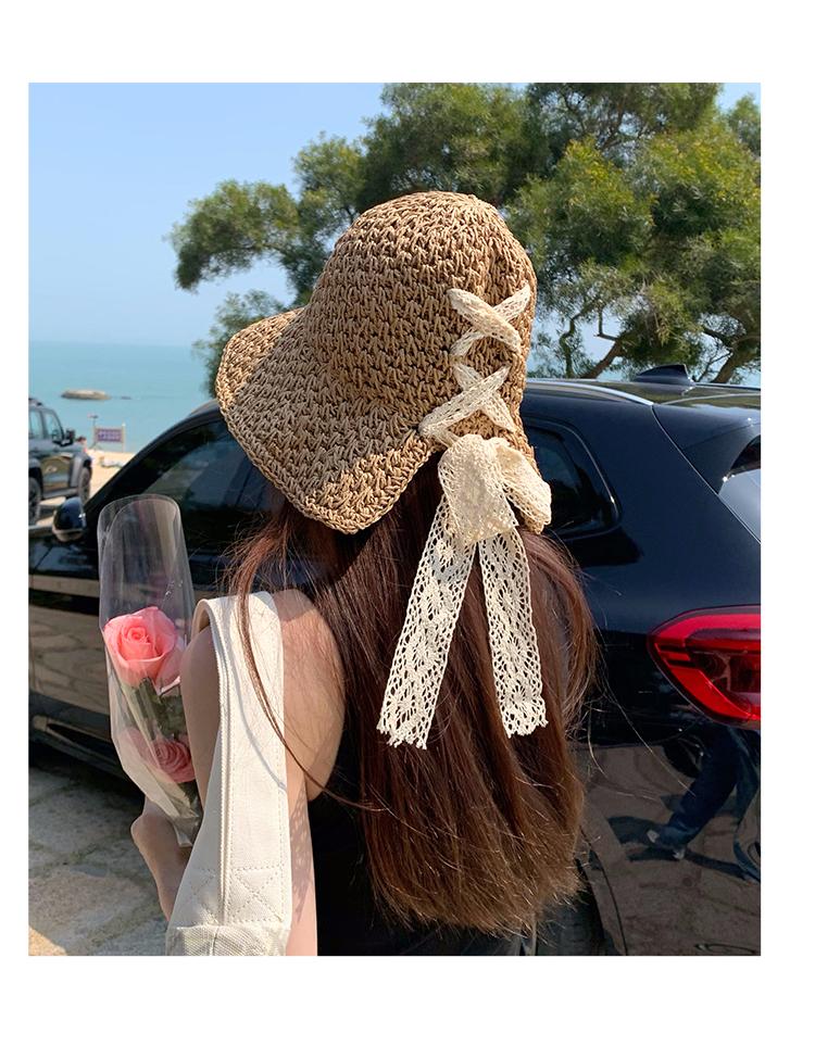 Sombrero de paja con lazo de encaje para mujer, sombrero de sol de verano, plegable, de ala grande, para playa, vacaciones en la playa
