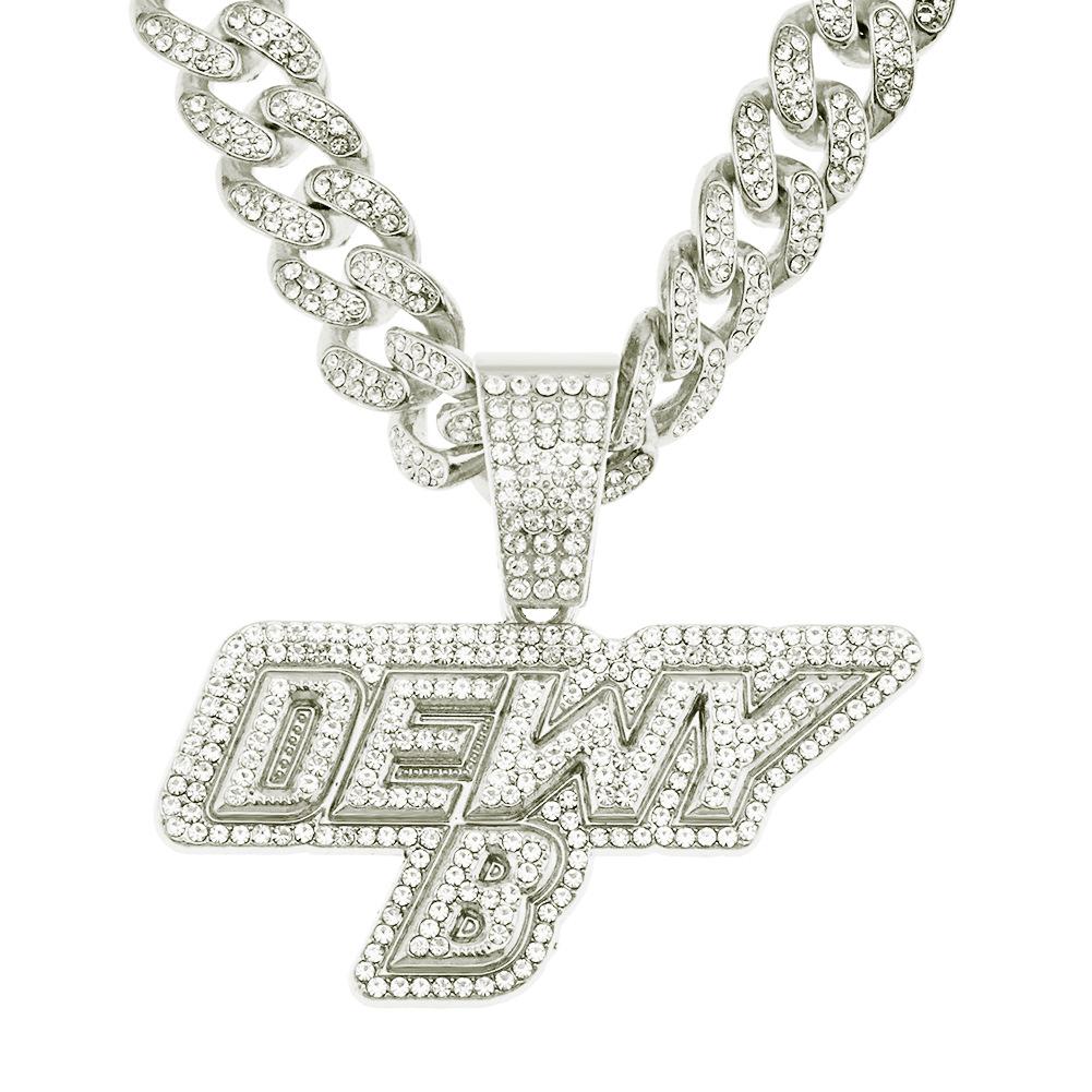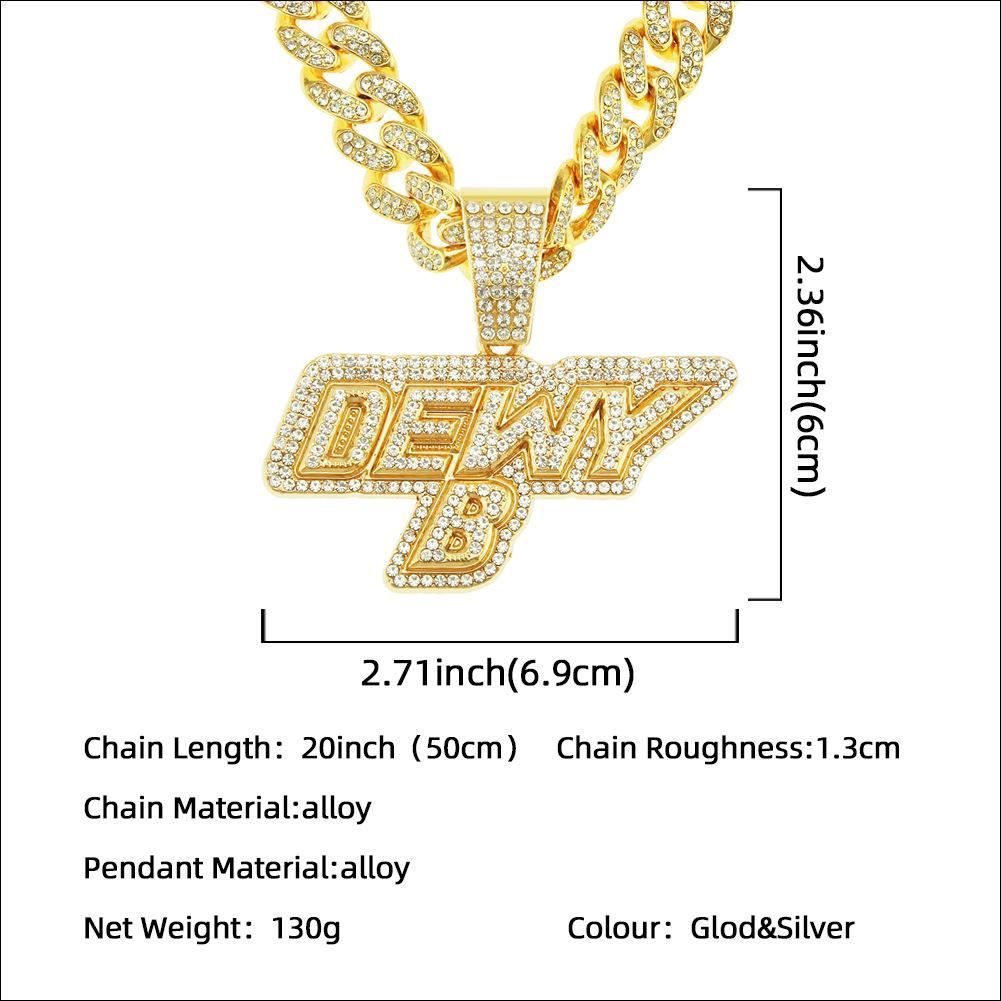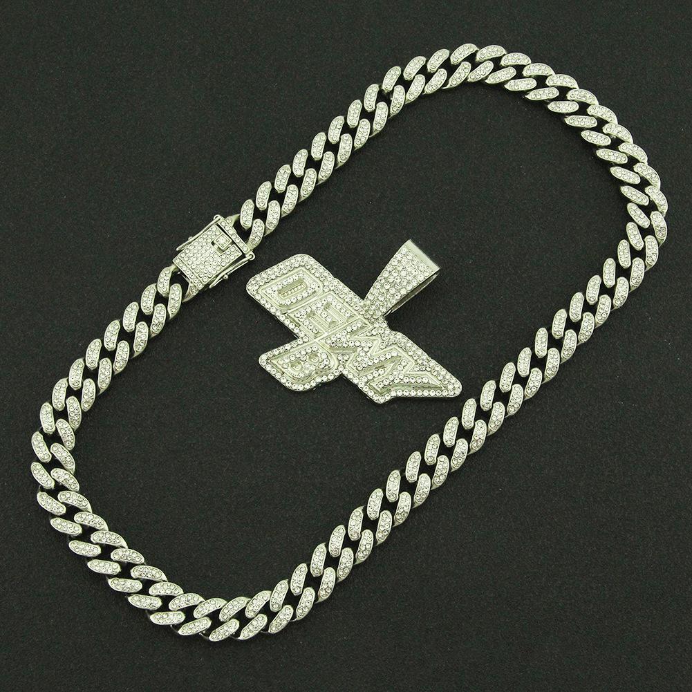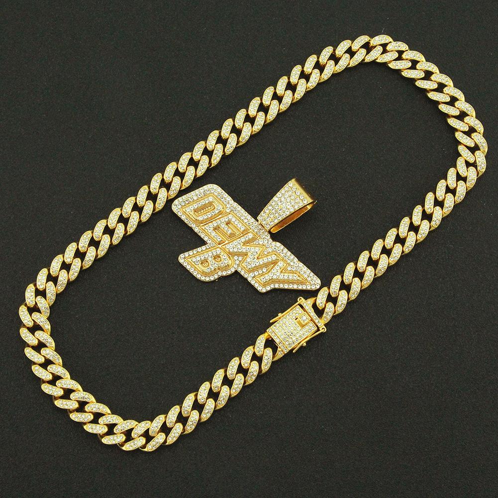 Collar dominante para hombre con colgante de letra de diamante completo, cadena cubana ancha, estilo hip hop, hip-hop, baile callejero europeo y americano