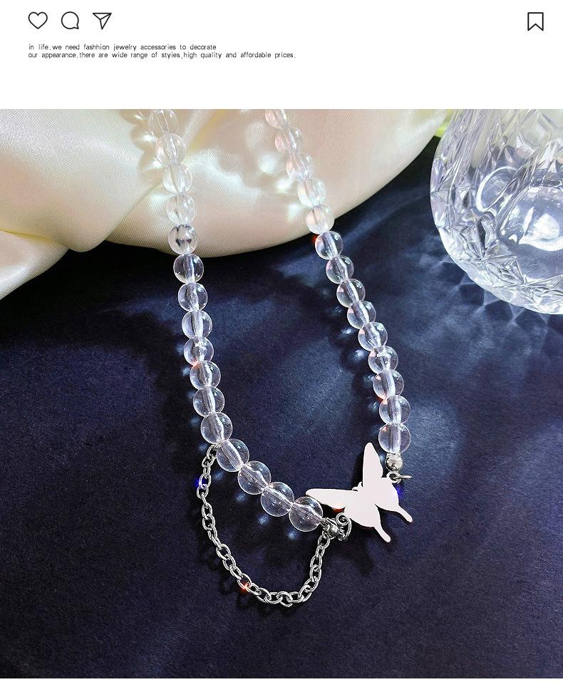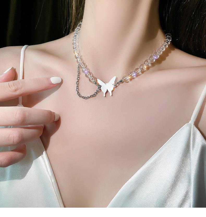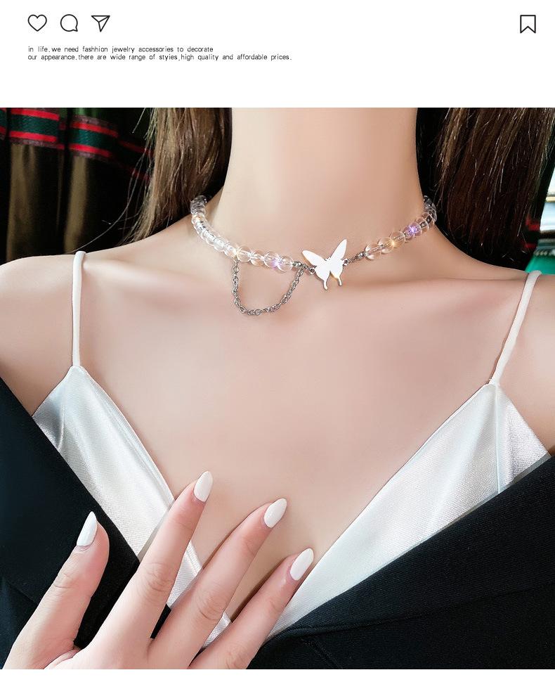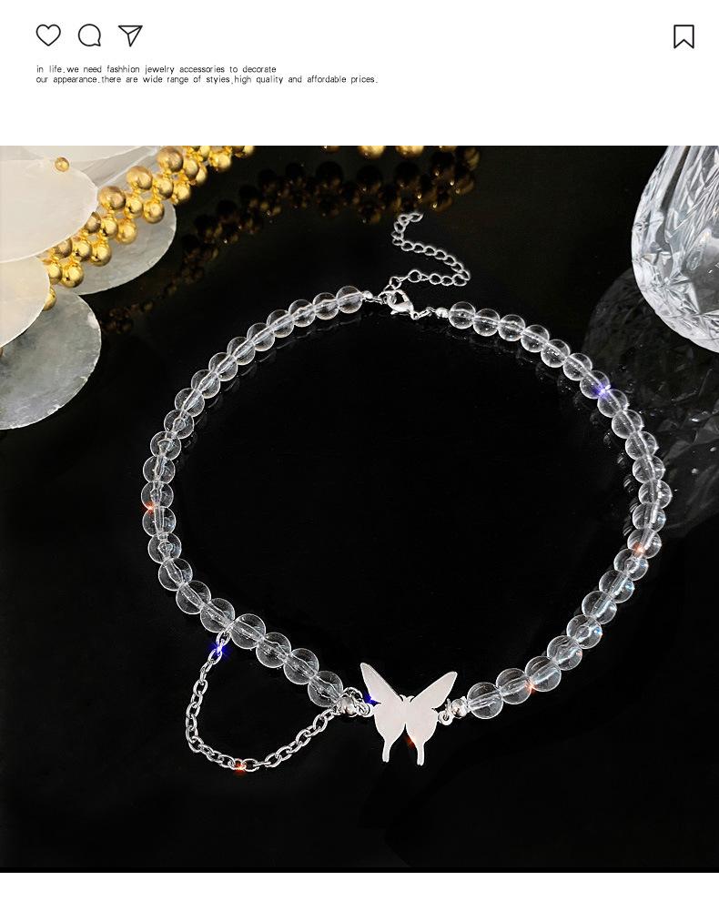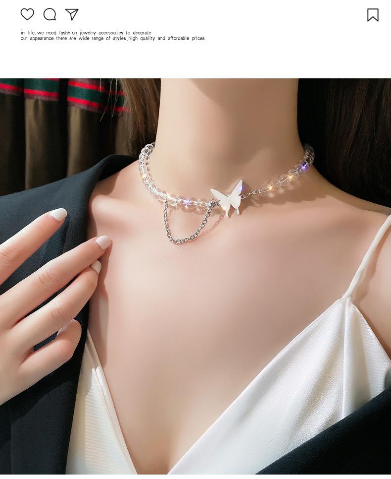 Collar de mujer con estilo moderno, cadena de bola, elegante gargantilla de mariposa, cadena de clavícula, collar corto, cadena de diseño de nicho para mujer.