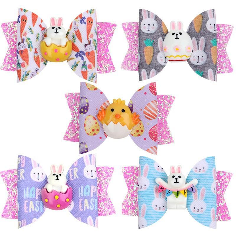 Pinza para el pelo de cuero con diseño de dibujos animados de anime para niños, divertida y divertida, con forma de huevo de Pascua, con estampado de conejo y mariposa. | Lazo transfronterizo europeo y americano para niños, horquilla, accesorios para el cabello, tela de hilo de color sólidoConejo de dibujos animados resina ventas directas de fábrica |
