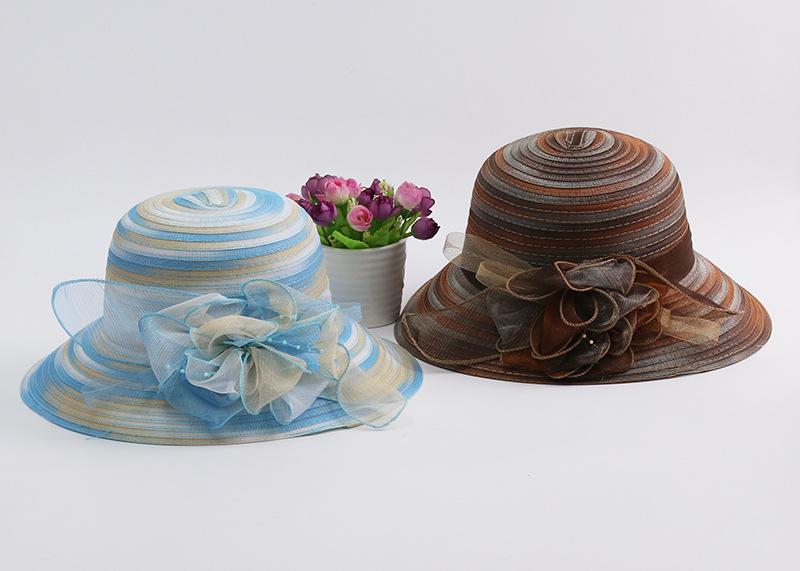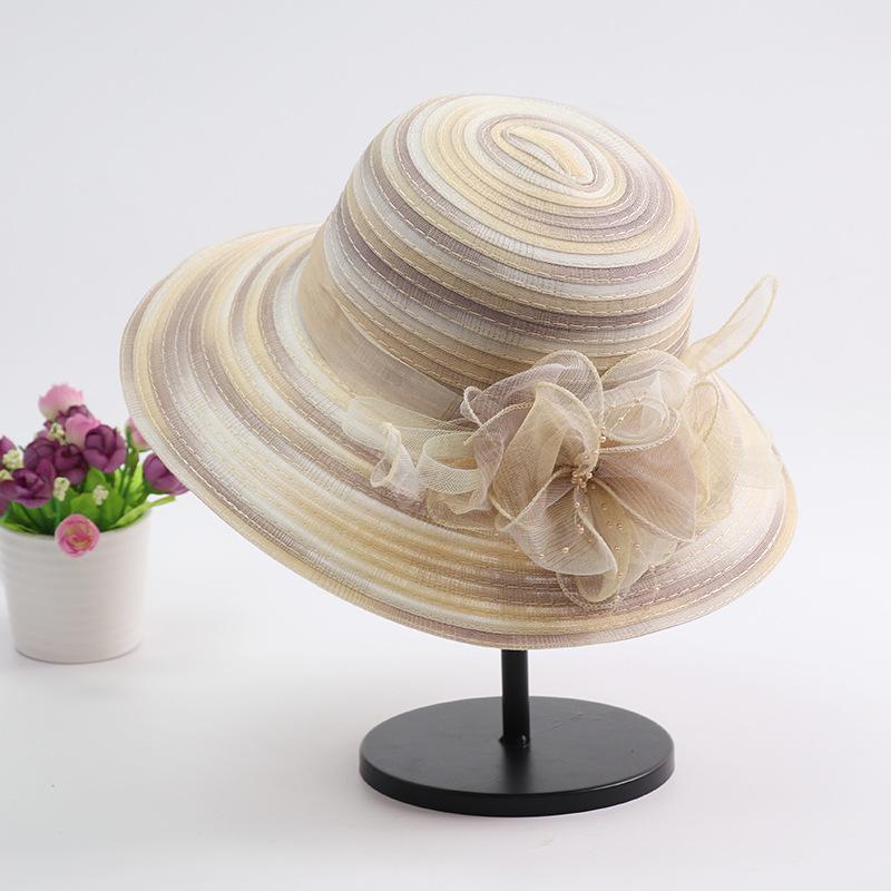 Sombrero de organza de verano, sombrero para el sol, protector solar para mujer, sombrero de pescador, sombrero de playa de viaje, sombrero para el sol, sombrero para el sol con flores