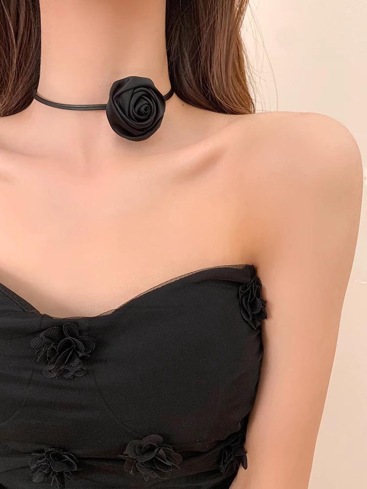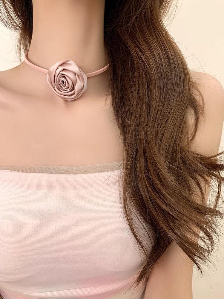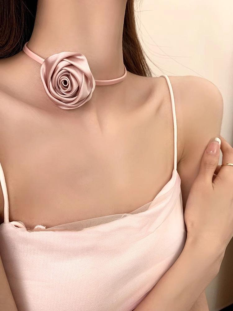 Collar de flores con cuello de rosa estilo Pure Desire para mujer, accesorio de cadena de clavícula de alta gama, cadena de cuello de flores de nicho de lujo ligero.