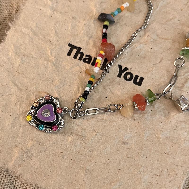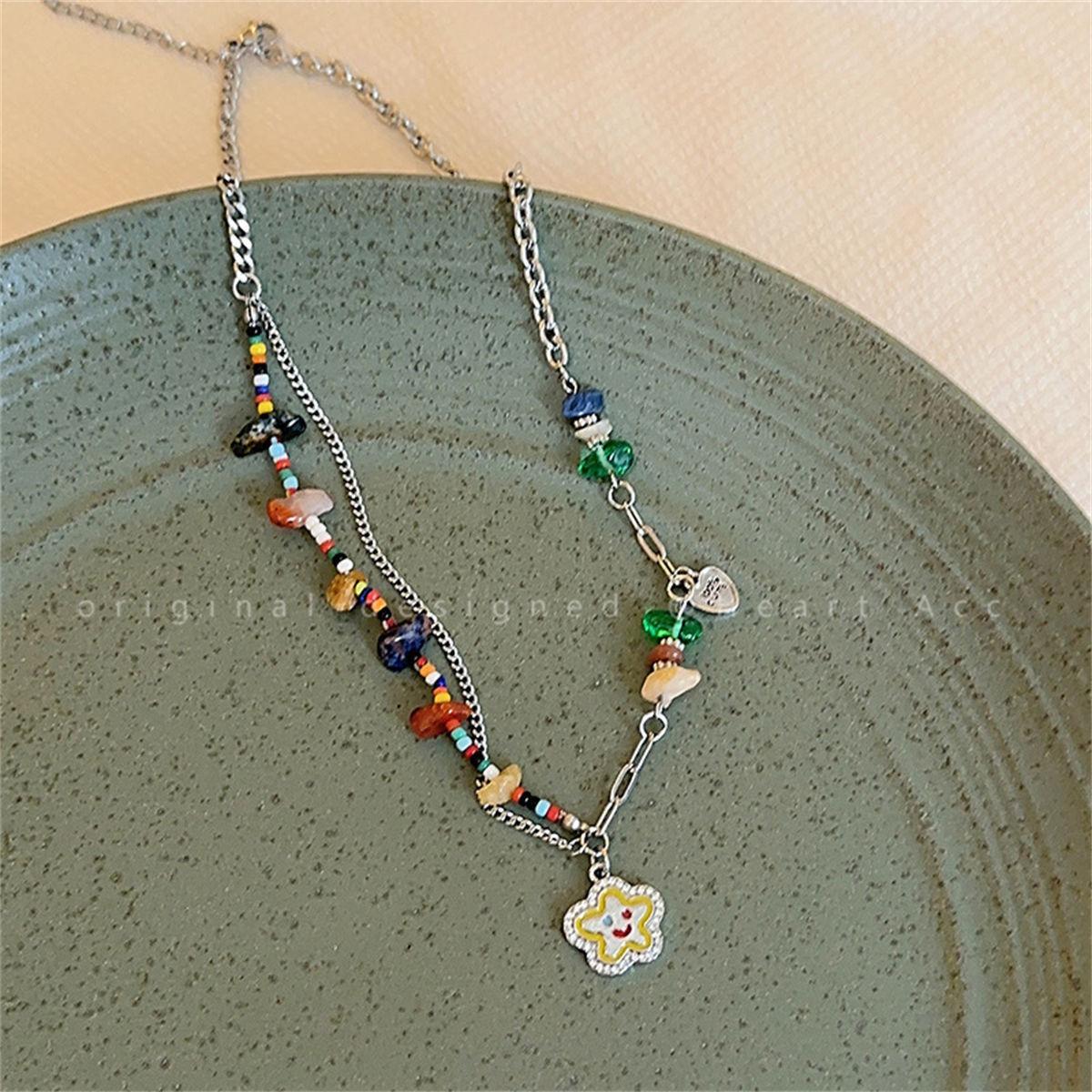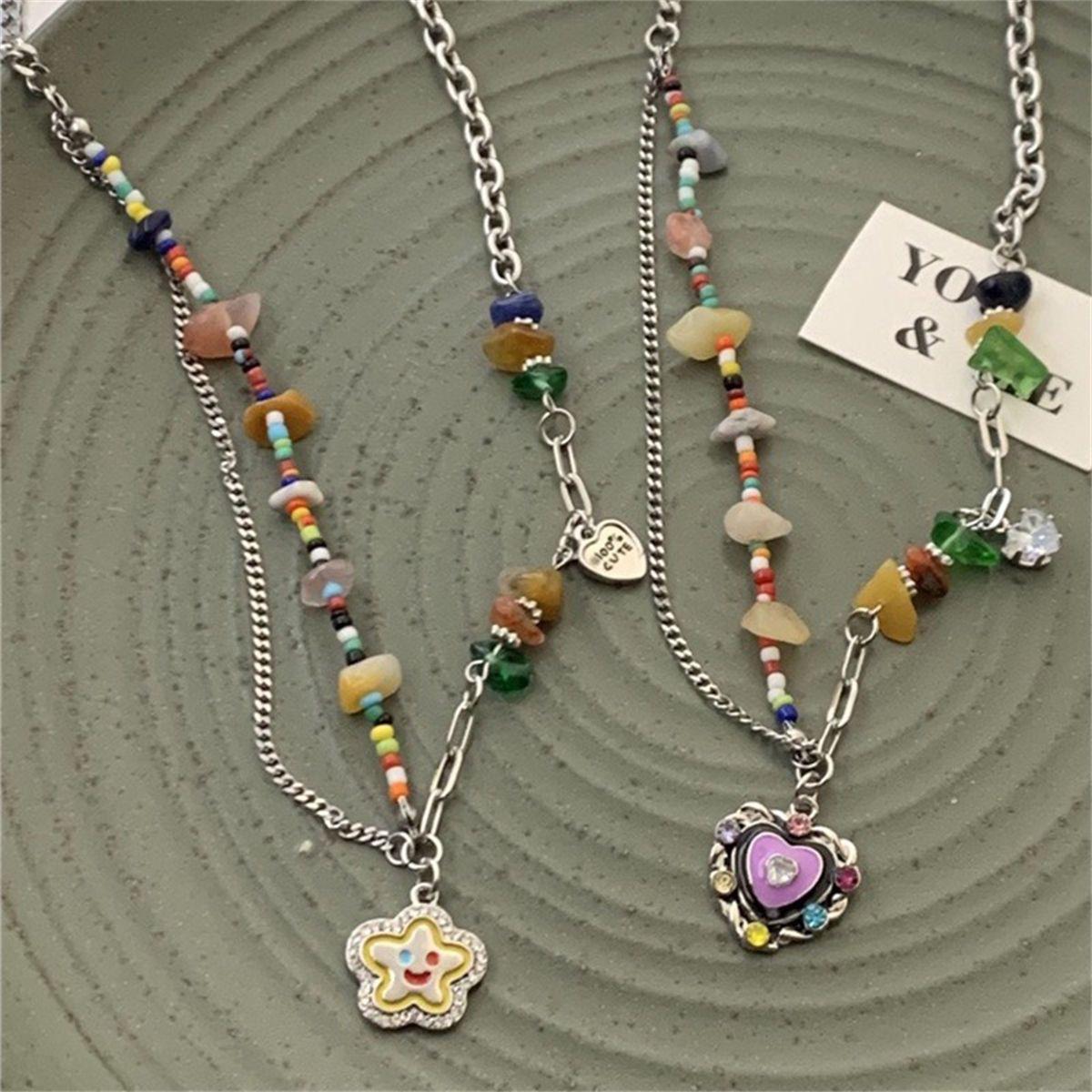 Colorful Stone Love Necklace, Colorful Stone Smiley Necklace, Colorful Stone Clouds Necklace