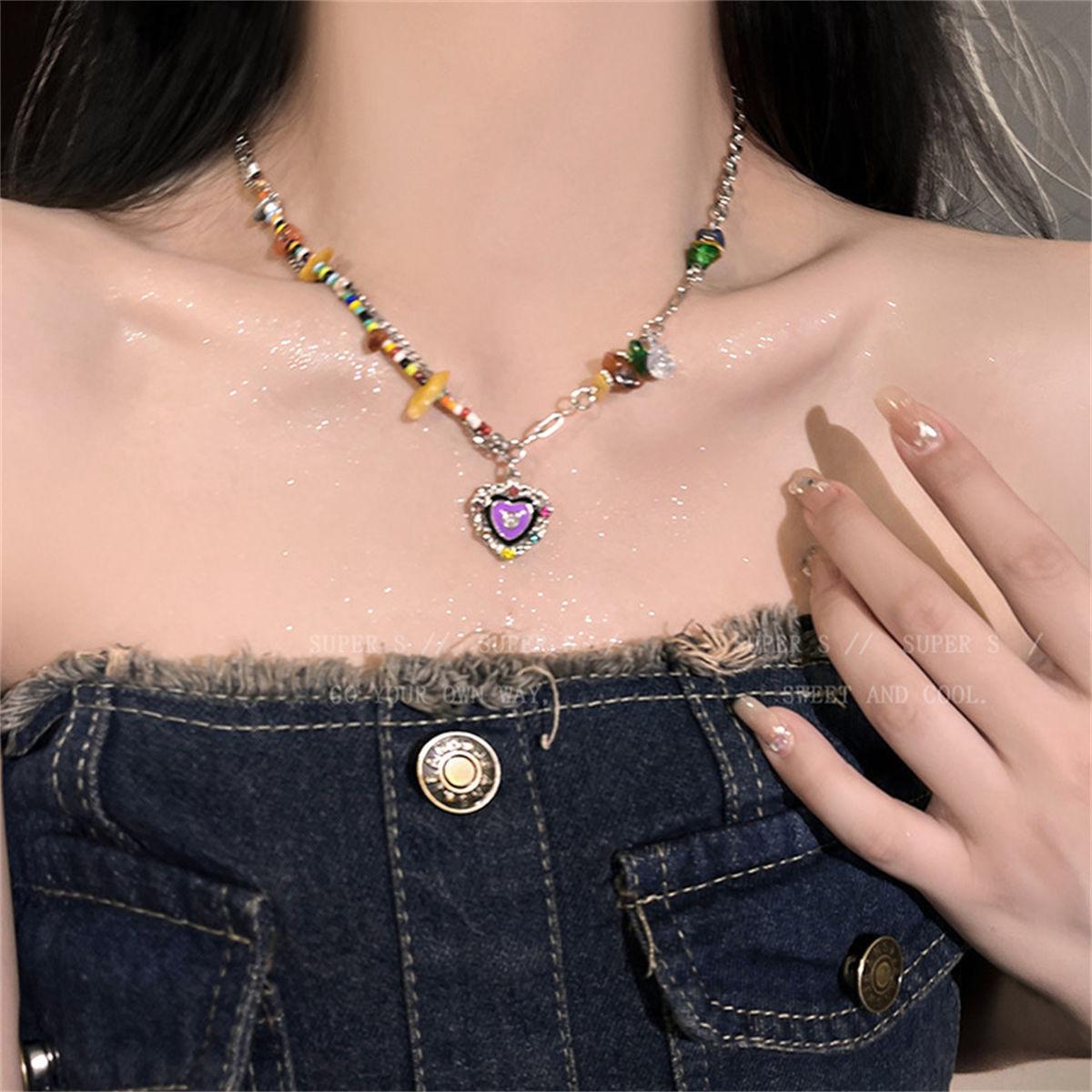 Collar de amor con piedras coloridas para mujer, moderno, dulce, fresco, picante, con cara sonriente, cadena de clavícula, diseño de alto sentido, cadena para mujer