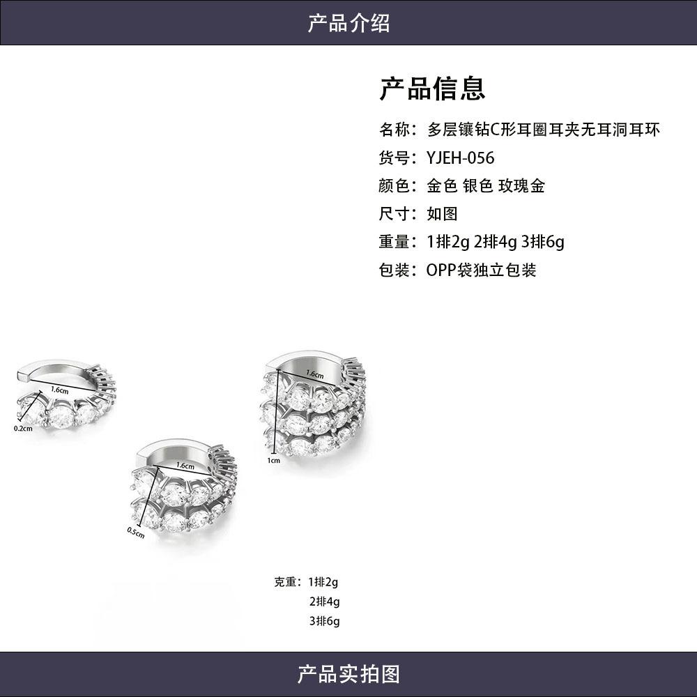 Aretes de Clip Yunjin sin Agujeros para las Orejas para Mujer, Aretes de Metal Elegantes y Sencillos de Moda, Aretes Europeos y Americanos Multicapa con Diamantes en Forma de C