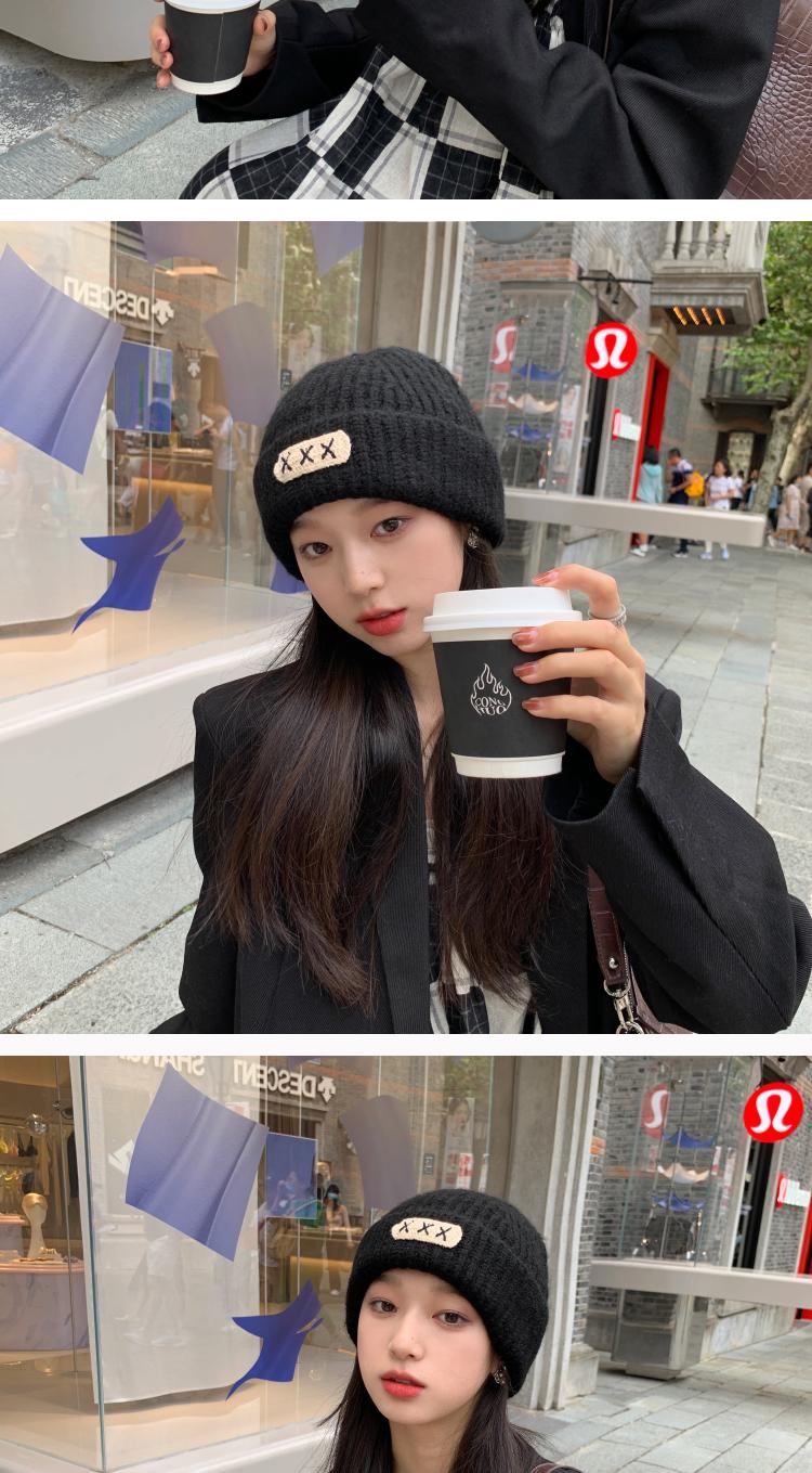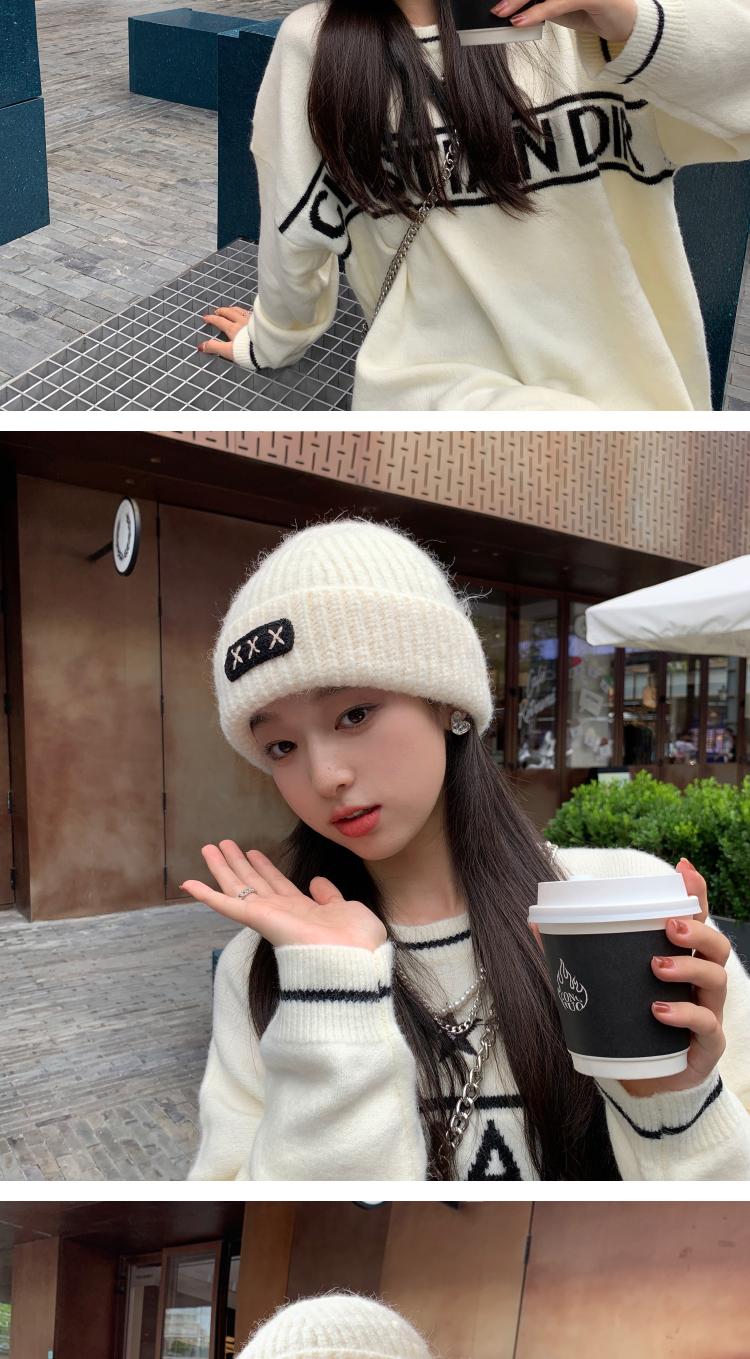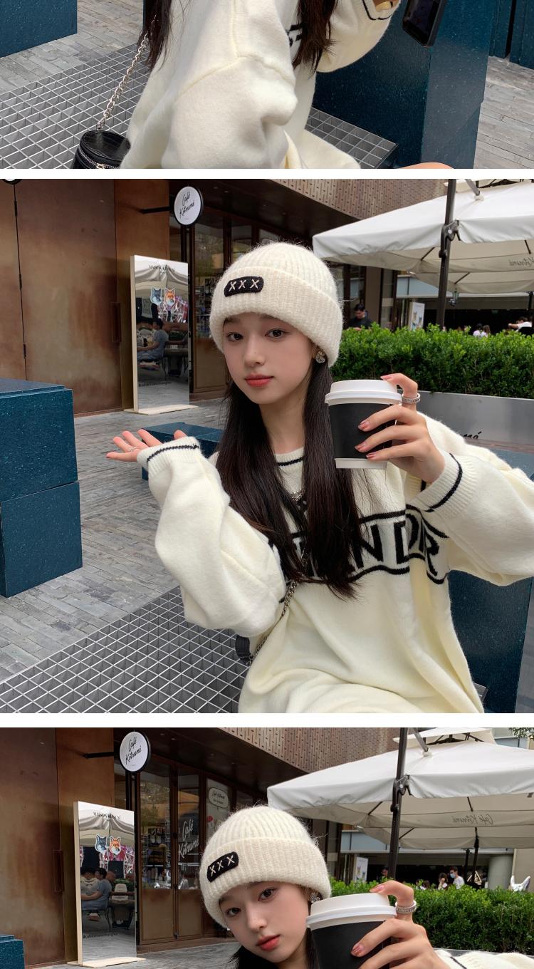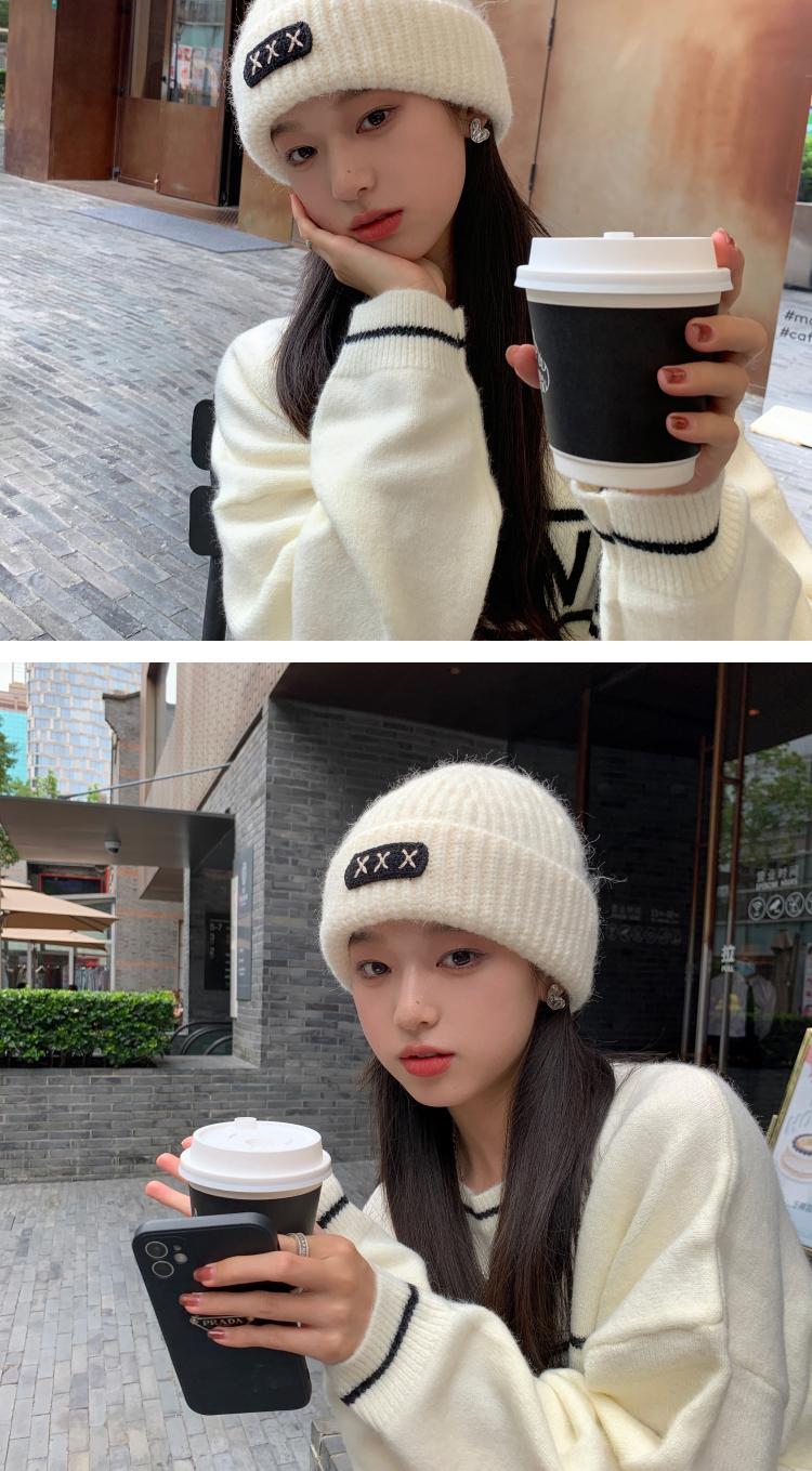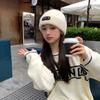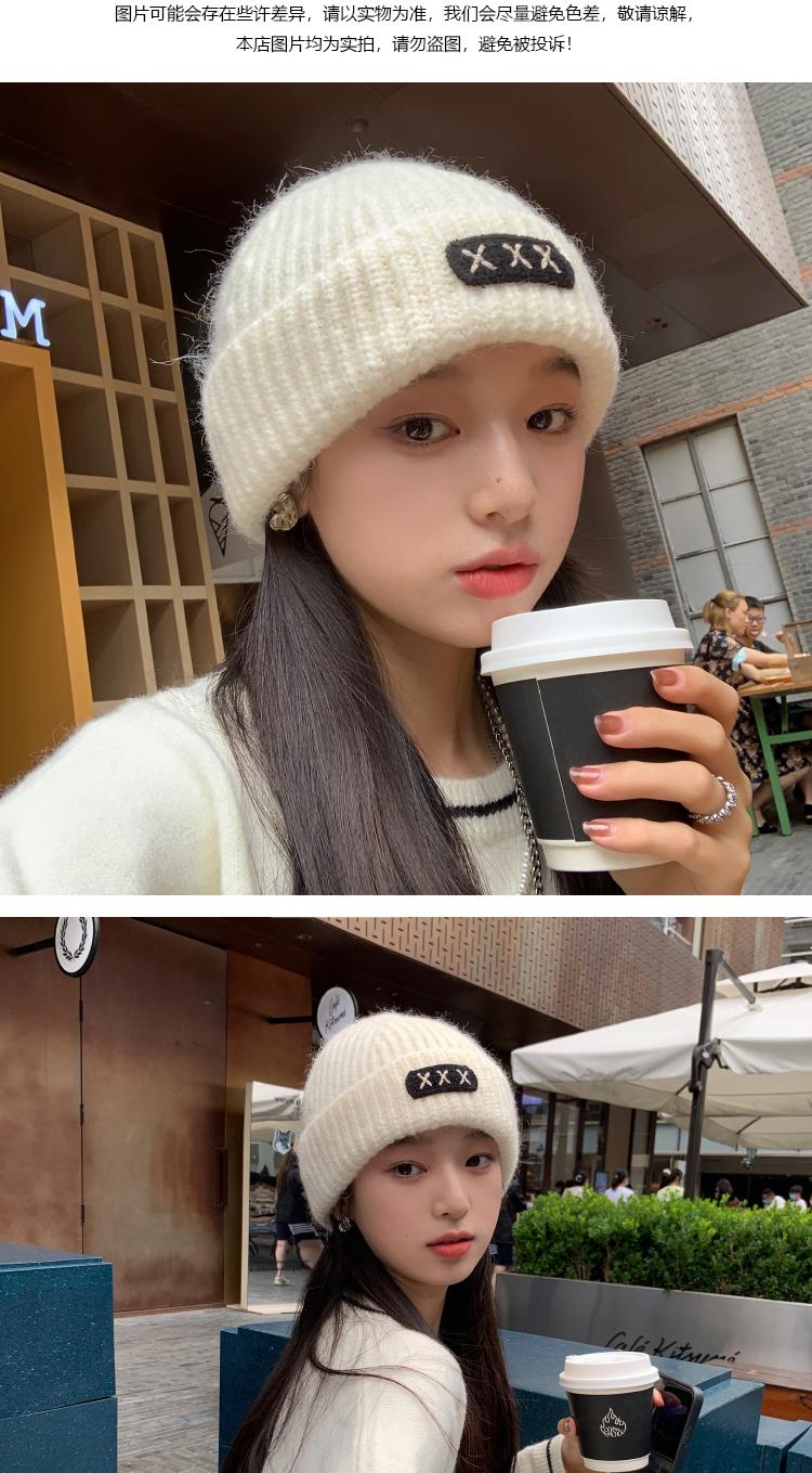 Gorro de punto de mohair adelgazante de cara redonda que combina con todo, de moda, para mujer, de otoño e invierno, cálido gorro de lana con protección para las orejas, estilo coreano.