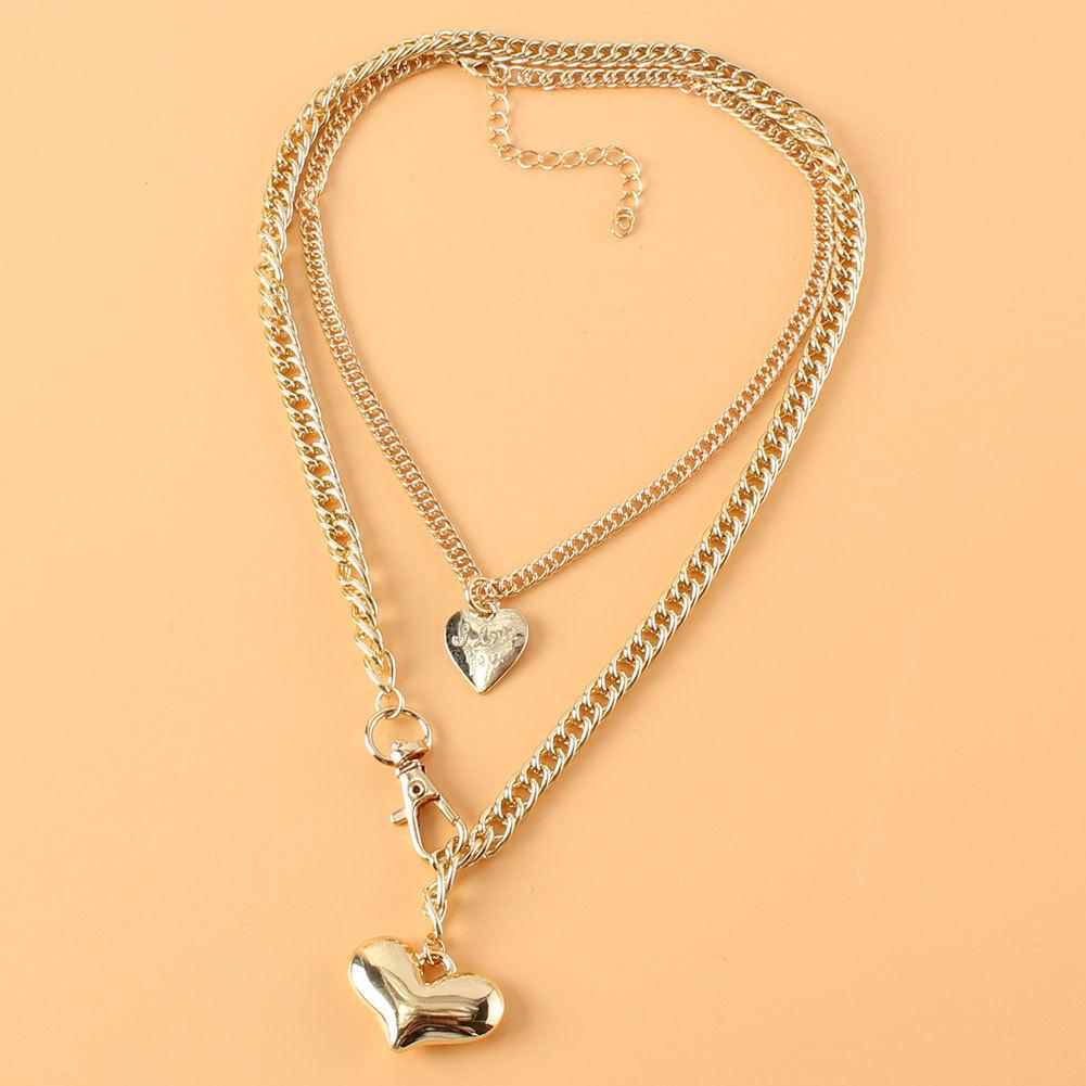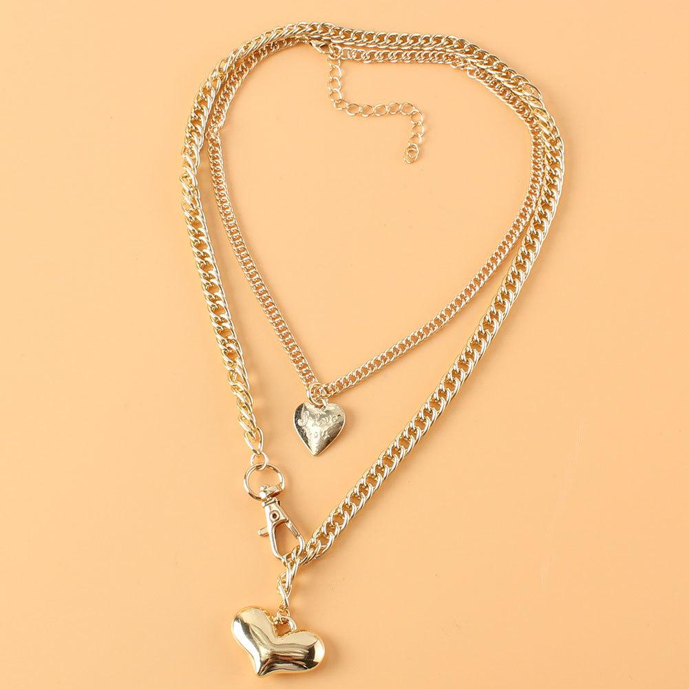 Joyería de moda europea y americana, collar multicapa con colgante de corazón de melocotón de aleación retro con personalidad, joyería transfronteriza para mujer 17450