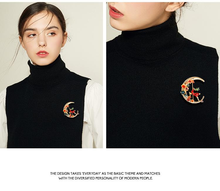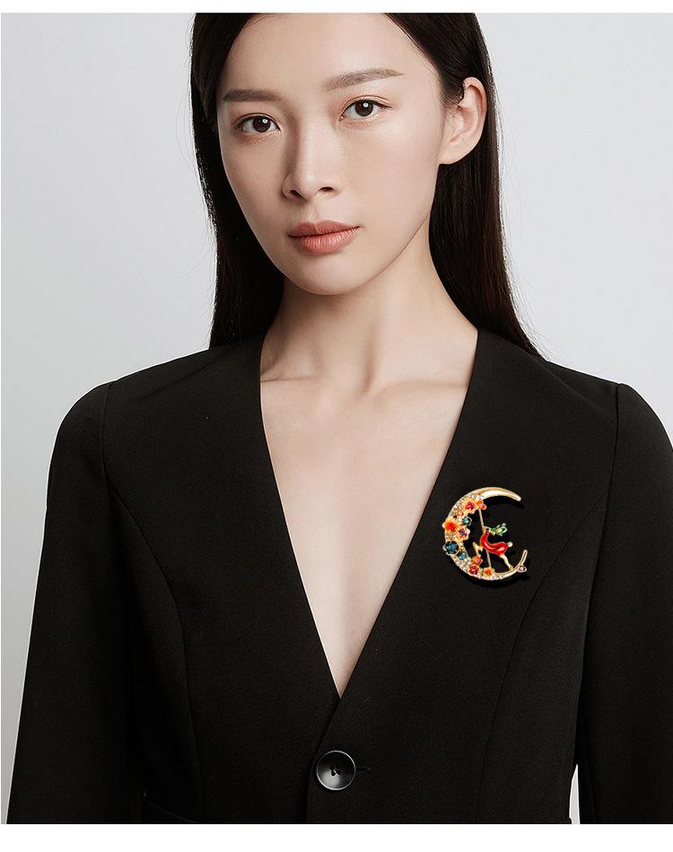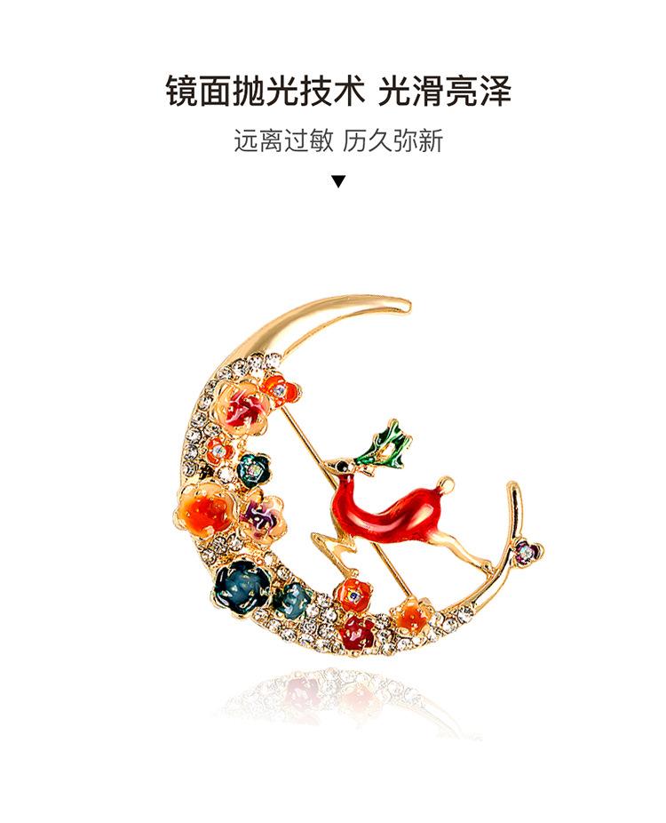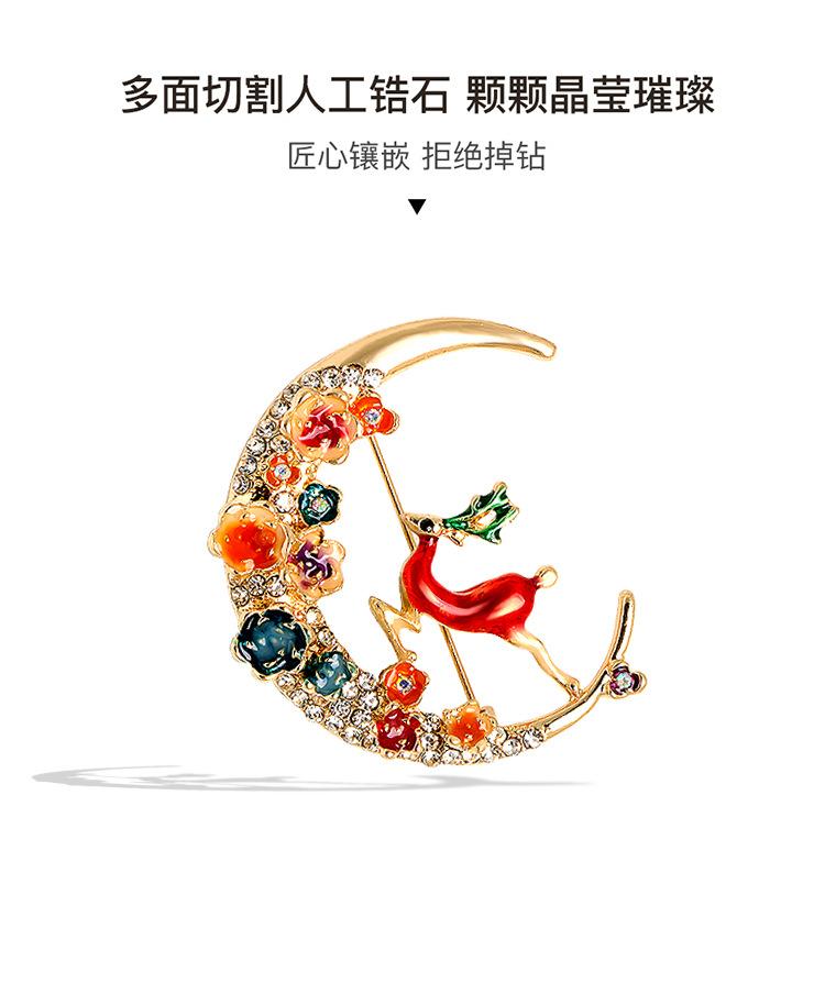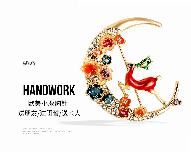 Broche de alce femenino con diamantes de imitación azules, joyería popular europea y americana, accesorios de vestir, elegante broche chapado en oro, ramillete de moda de alta gama.