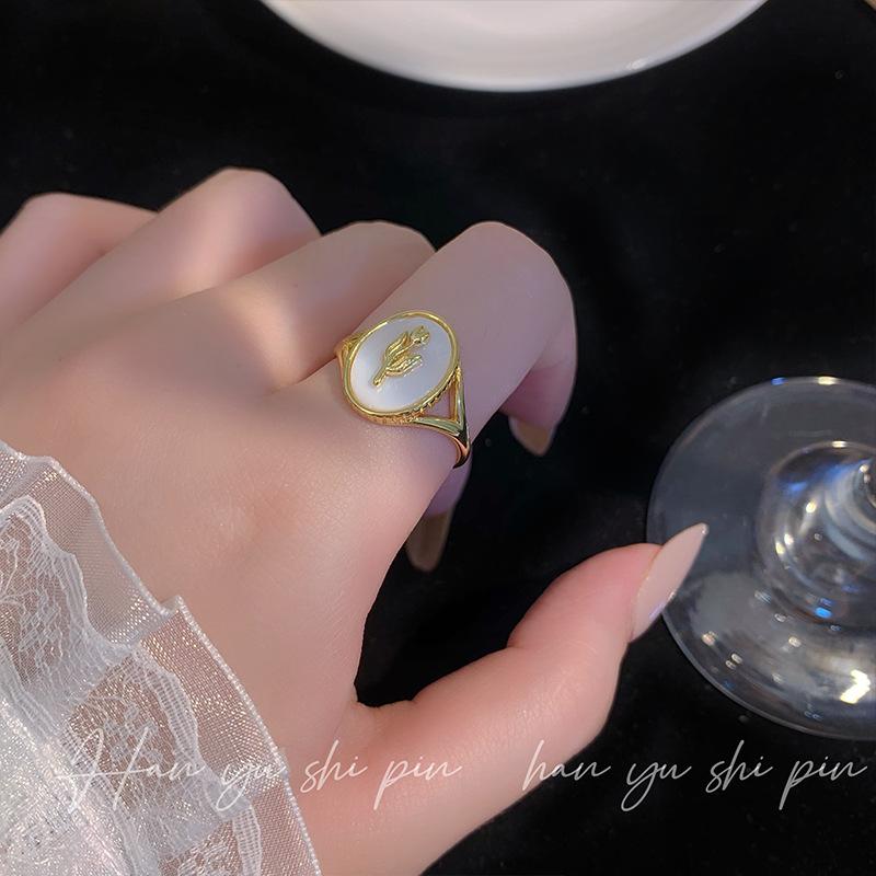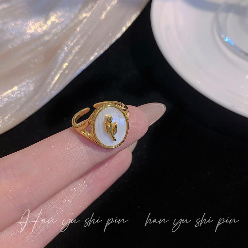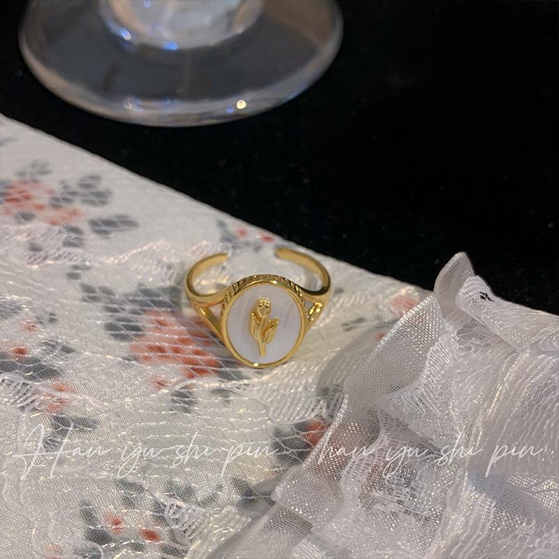 Anillo de flor de tulipán de Corea del Sur diseño nicho retro moda ins combinable anillo de dedo índice de celebridad de internet anillo abierto