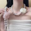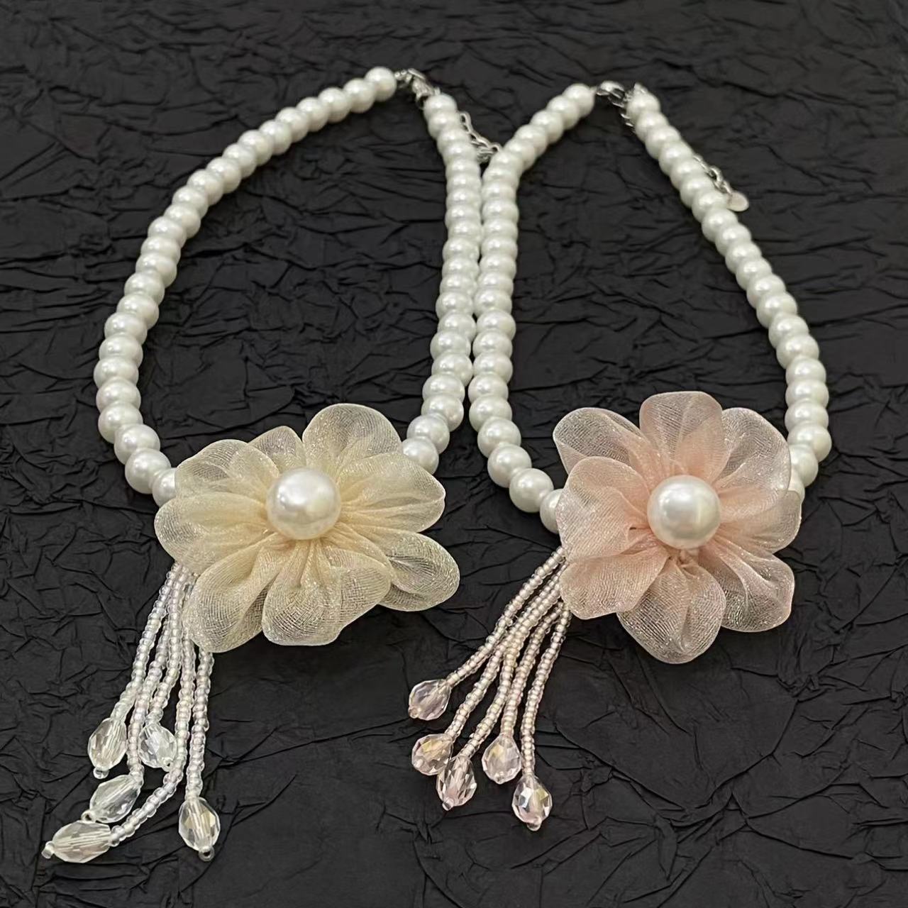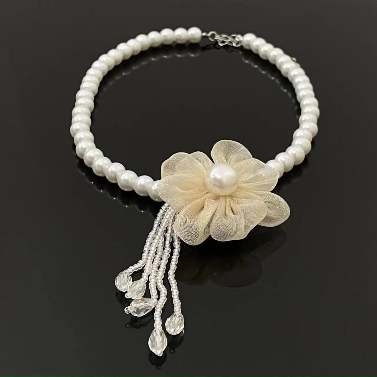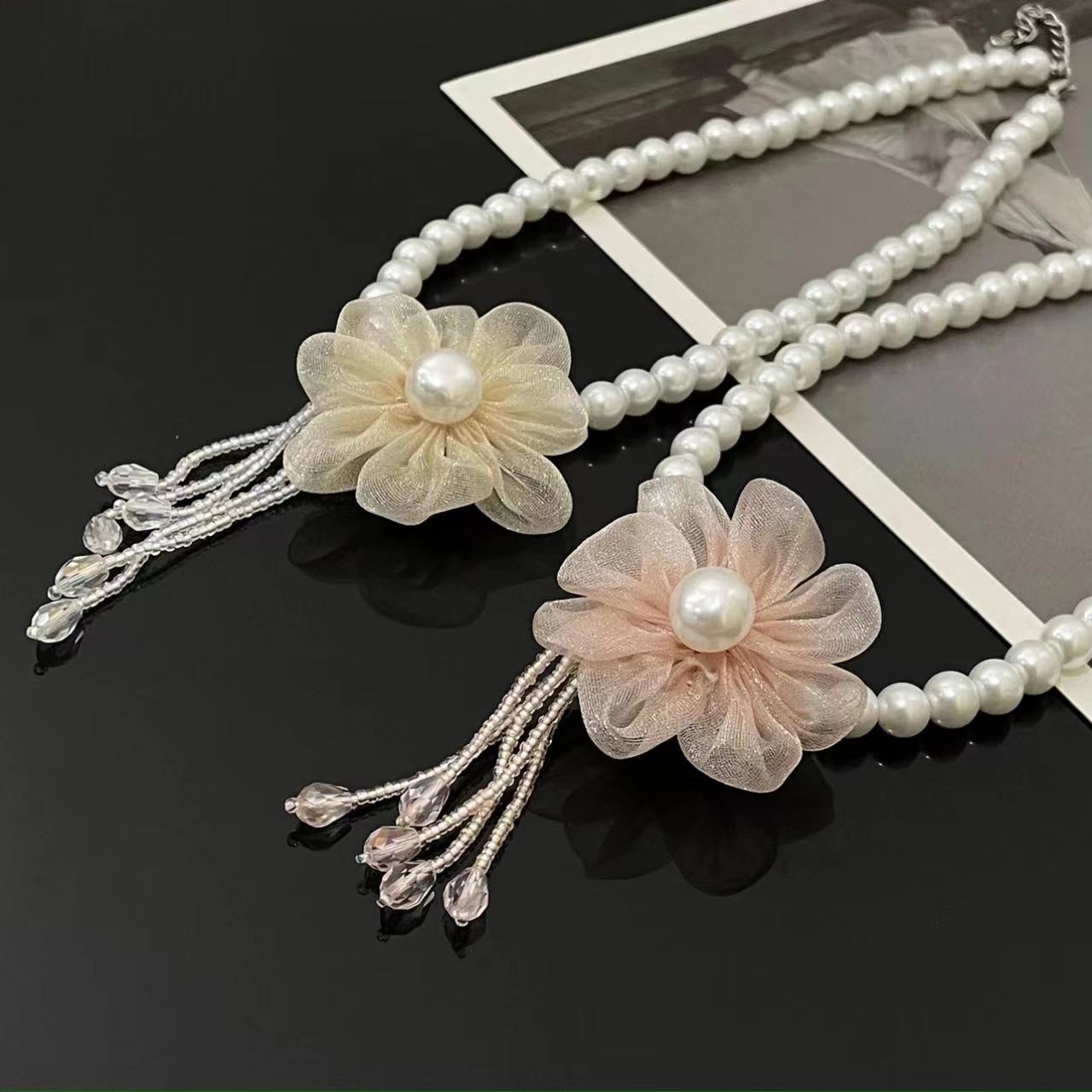 Collar de perlas con borla de flor de encaje francés para mujer, temperamento dulce y elegante, nicho, lujo ligero, cadena para la clavícula, moda