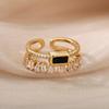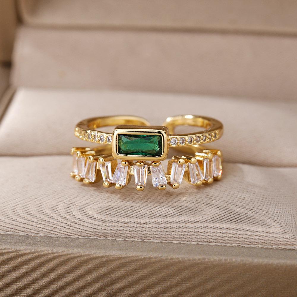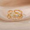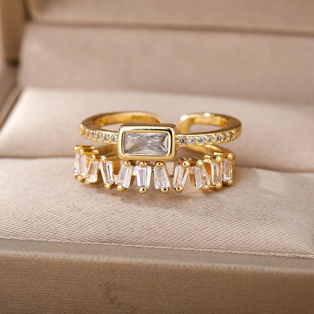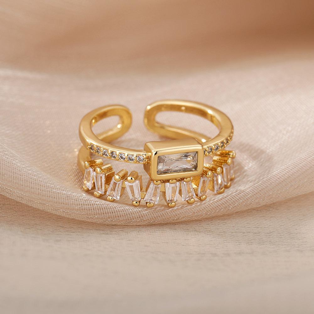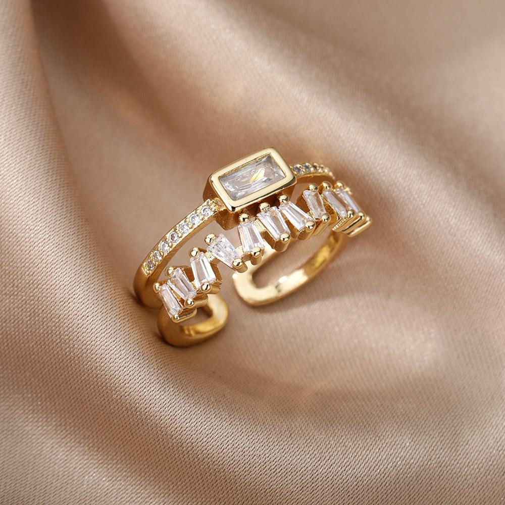 Suministro de Joyería Transfronteriza Europea y Americana Anillo Geométrico de Doble Capa Anillo de Zirconias Micro-incrustadas Anillo de Zirconio T Cuadrado Moda Retro Anillo de Cola para Mujer