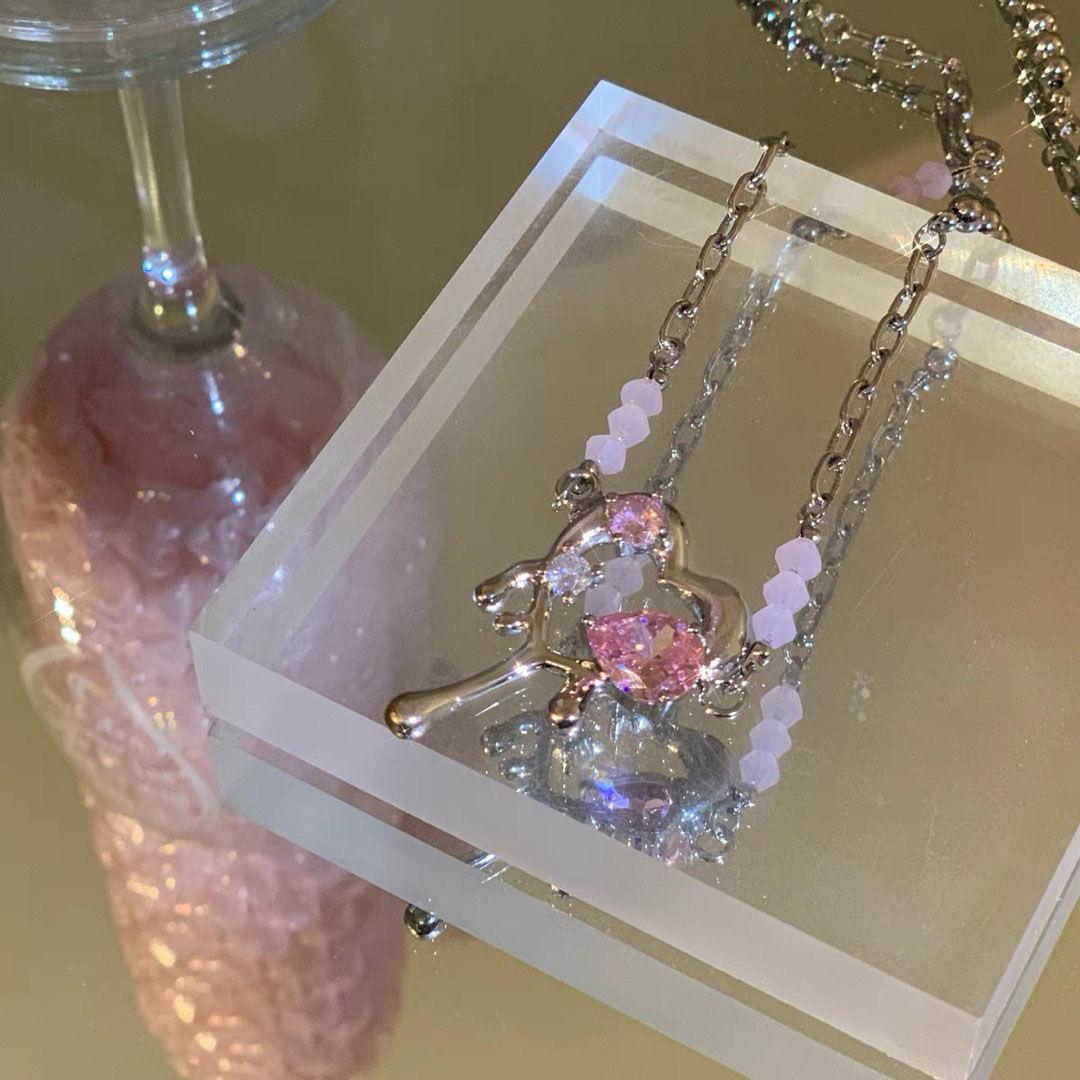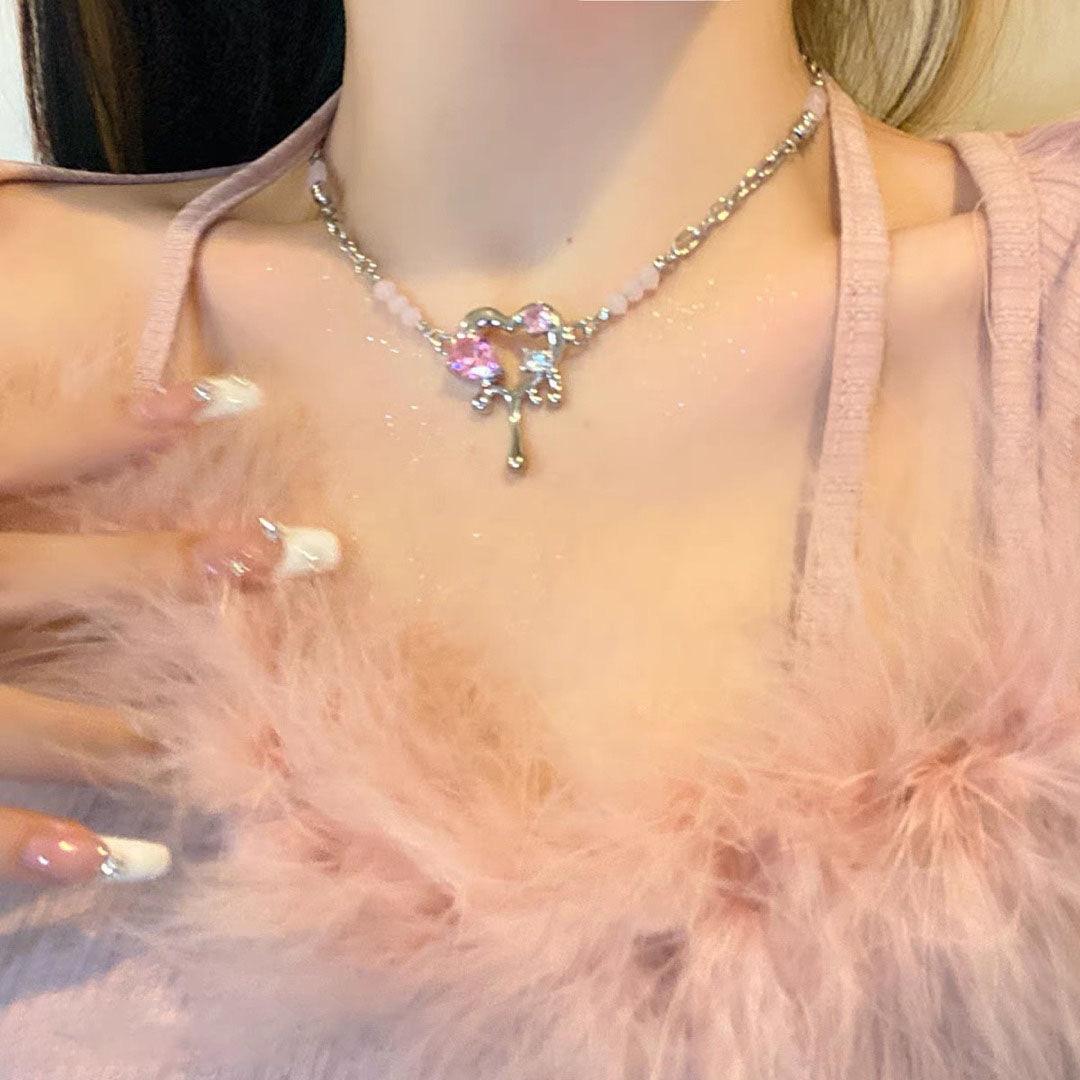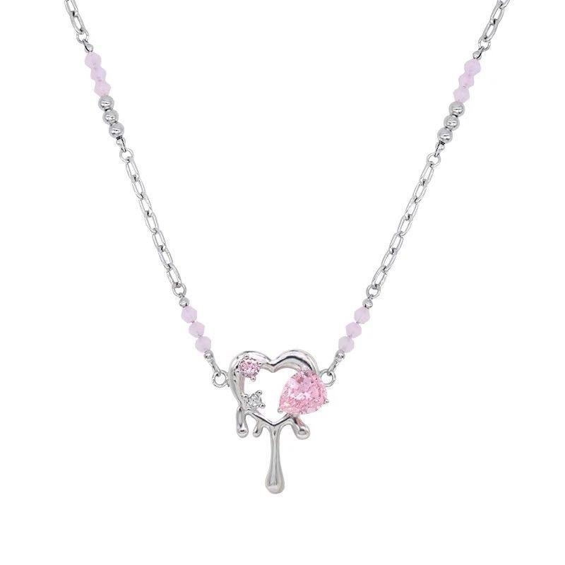 Collar de amor rosa con gotas de agua originales de corazón de melocotón, metal licuado, para mujer 2022, nuevo y dulce collar para mujer