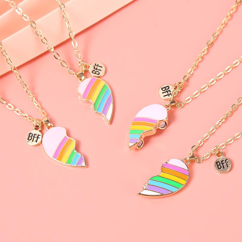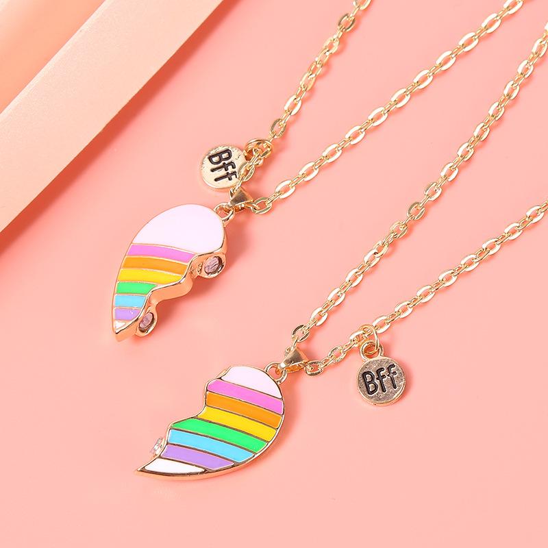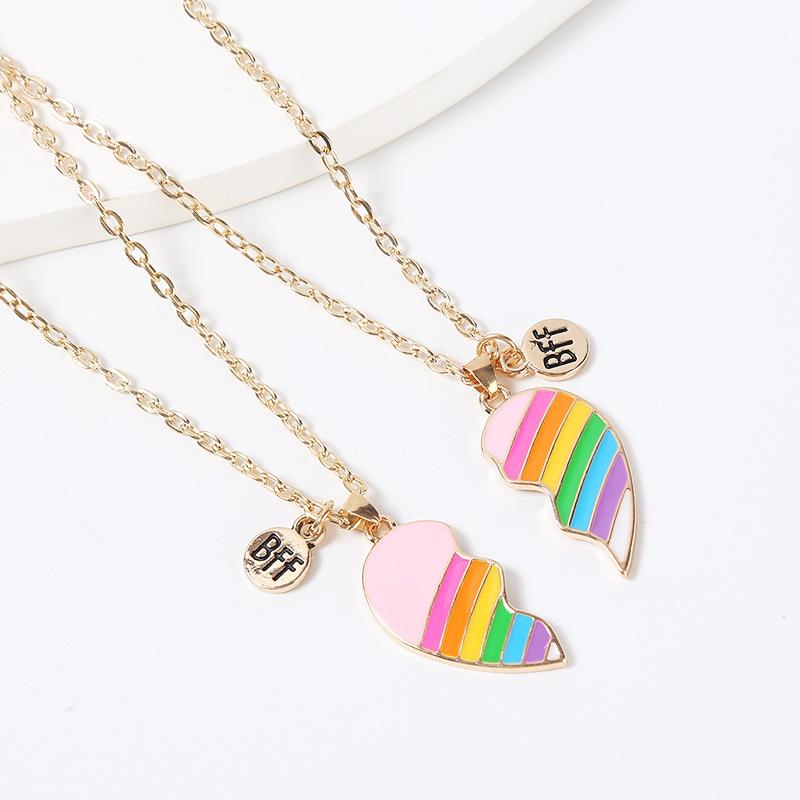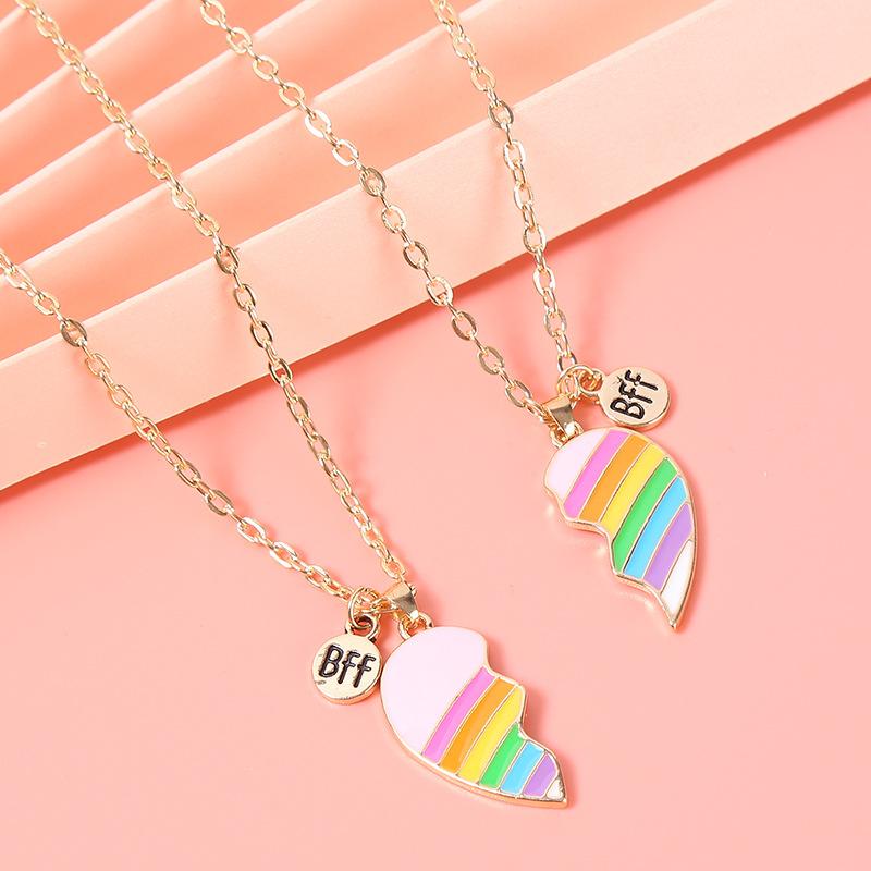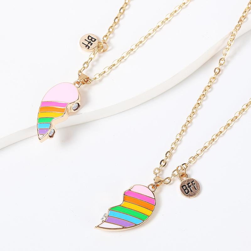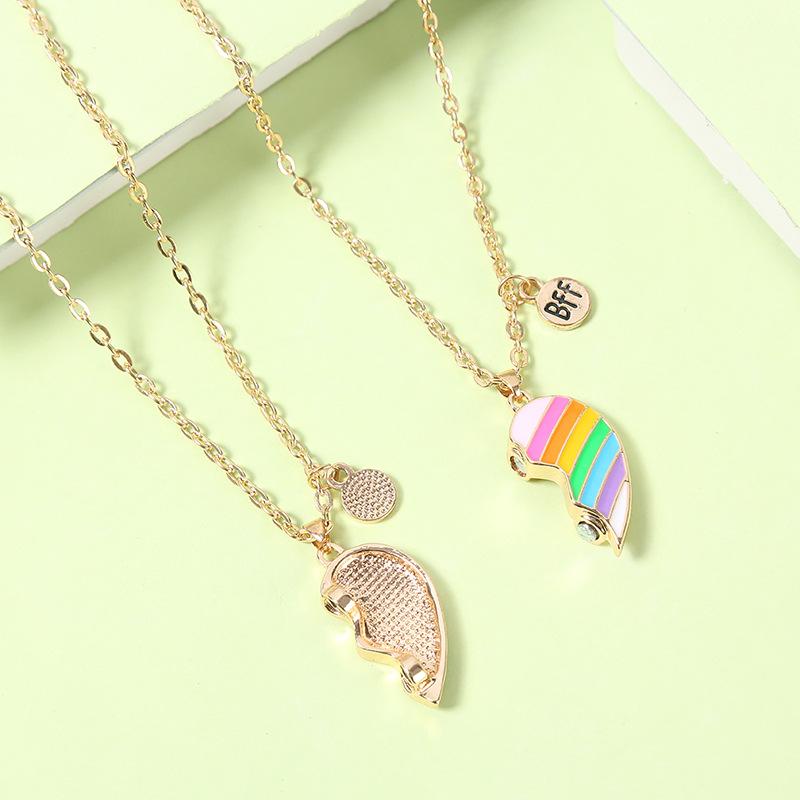 Amazon más vendido nuevo mejor amigo Arcoíris hamburguesa papas fritas amor collar creativo costura magnética colgante para novias