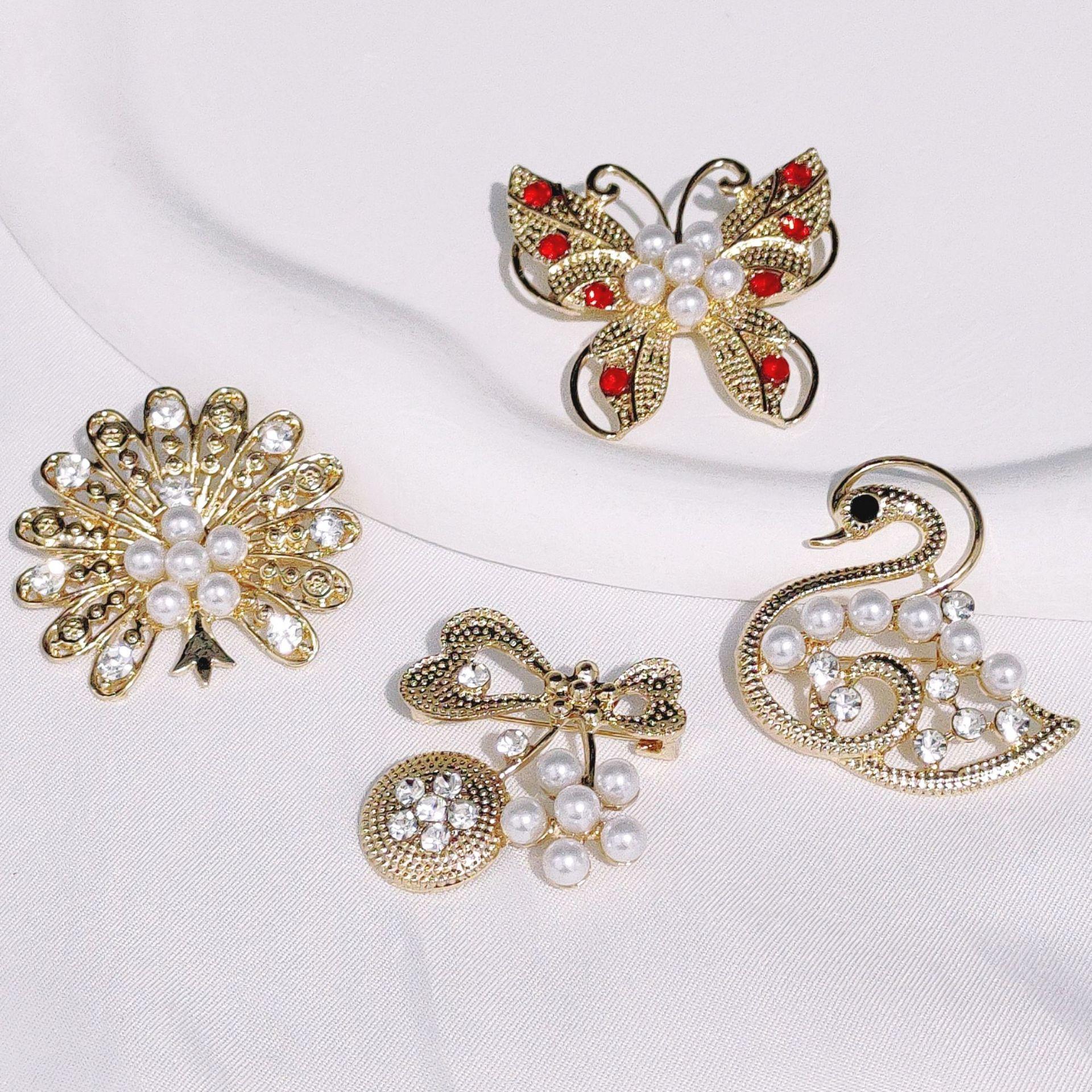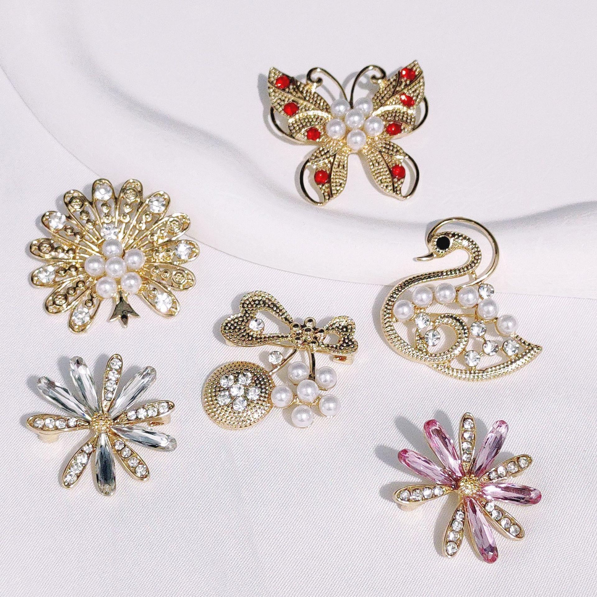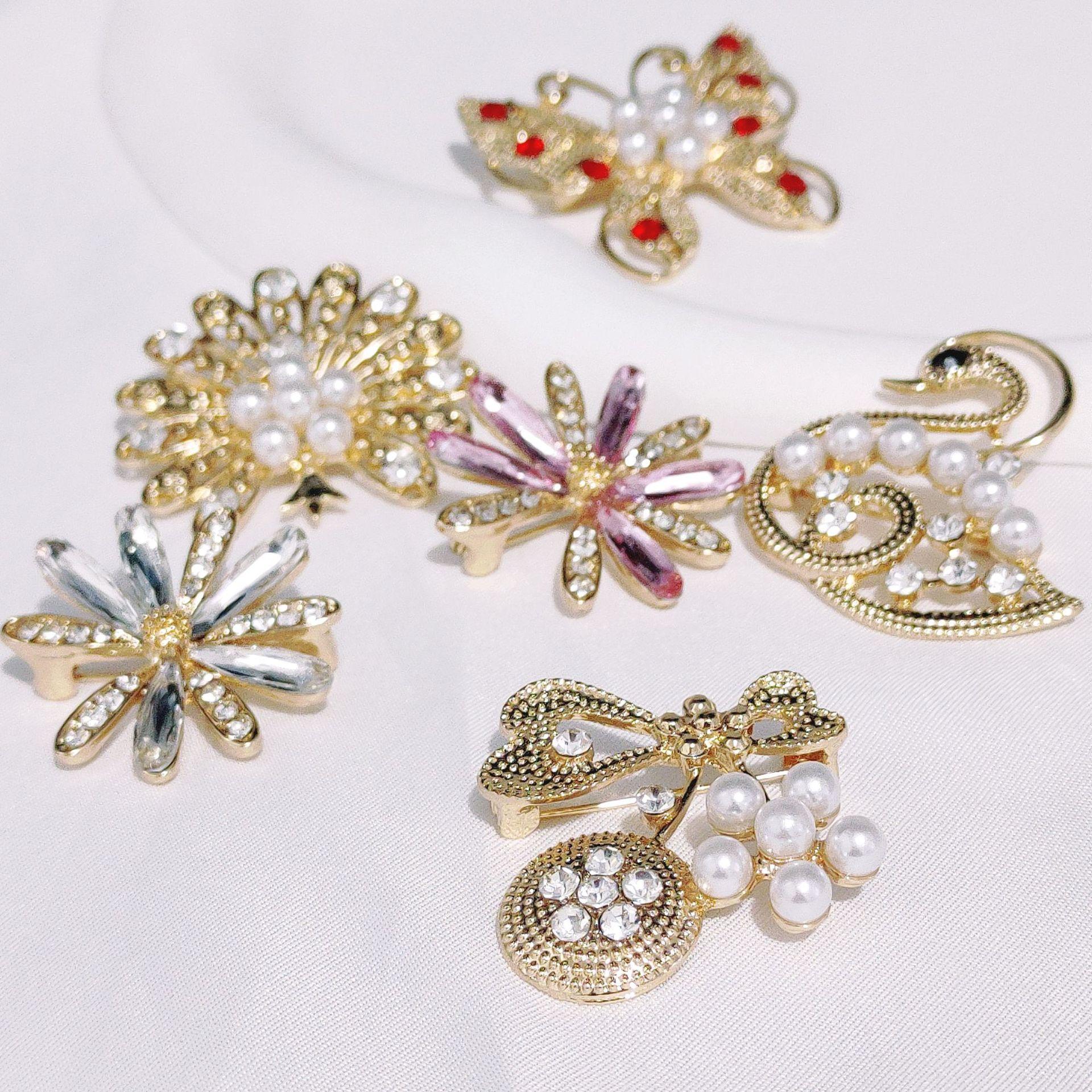Broche de aleación de nicho de alta calidad, abrigo de diamante coreano, ramillete de perlas, alfiler de lazo para ropa, accesorios al por mayor