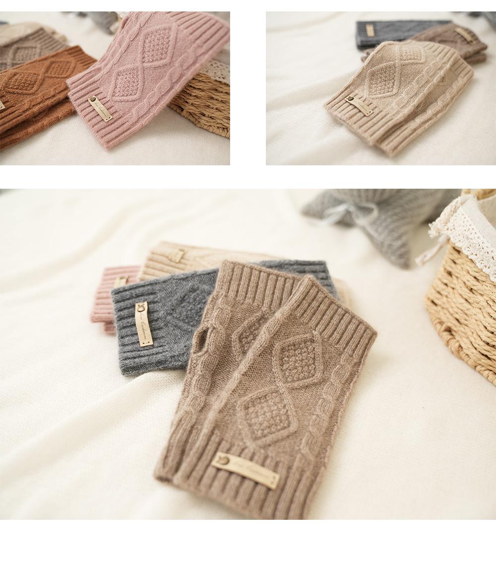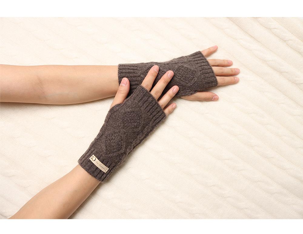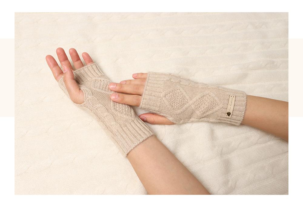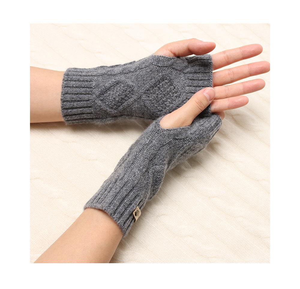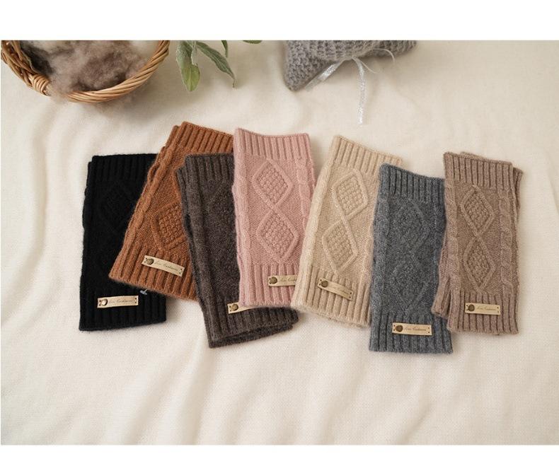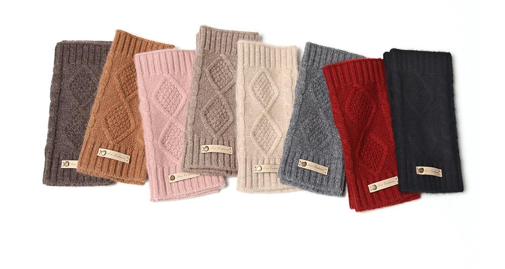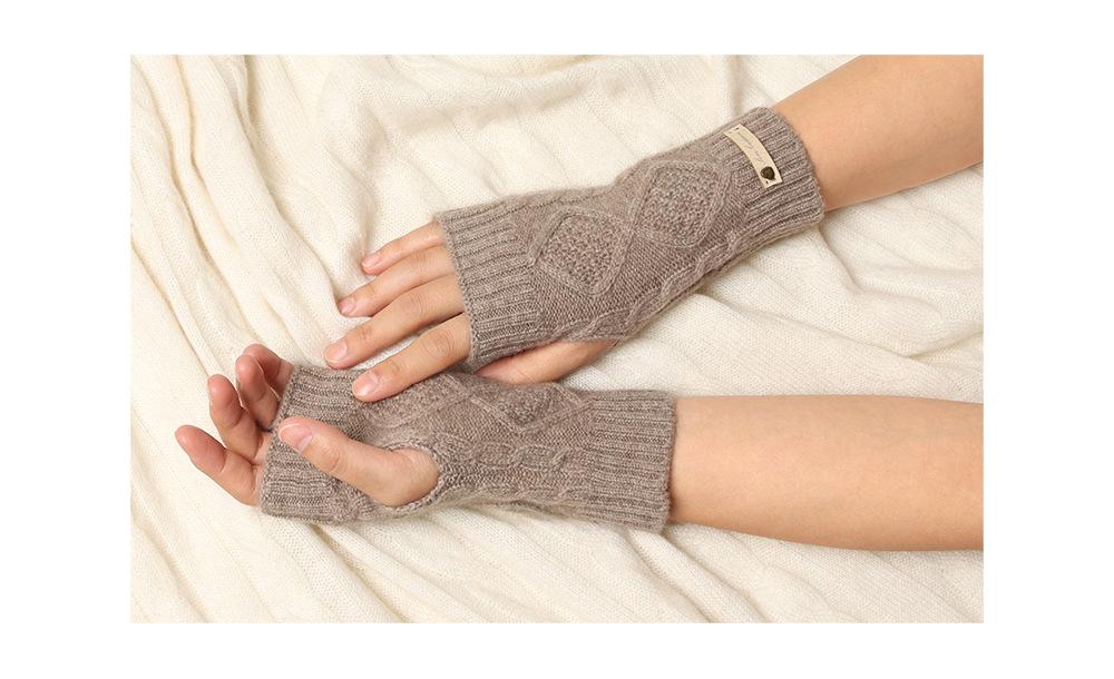 Guantes sin dedos de punto de cachemira pura para mujer, nuevos y cálidos guantes de otoño con forma de rombo.