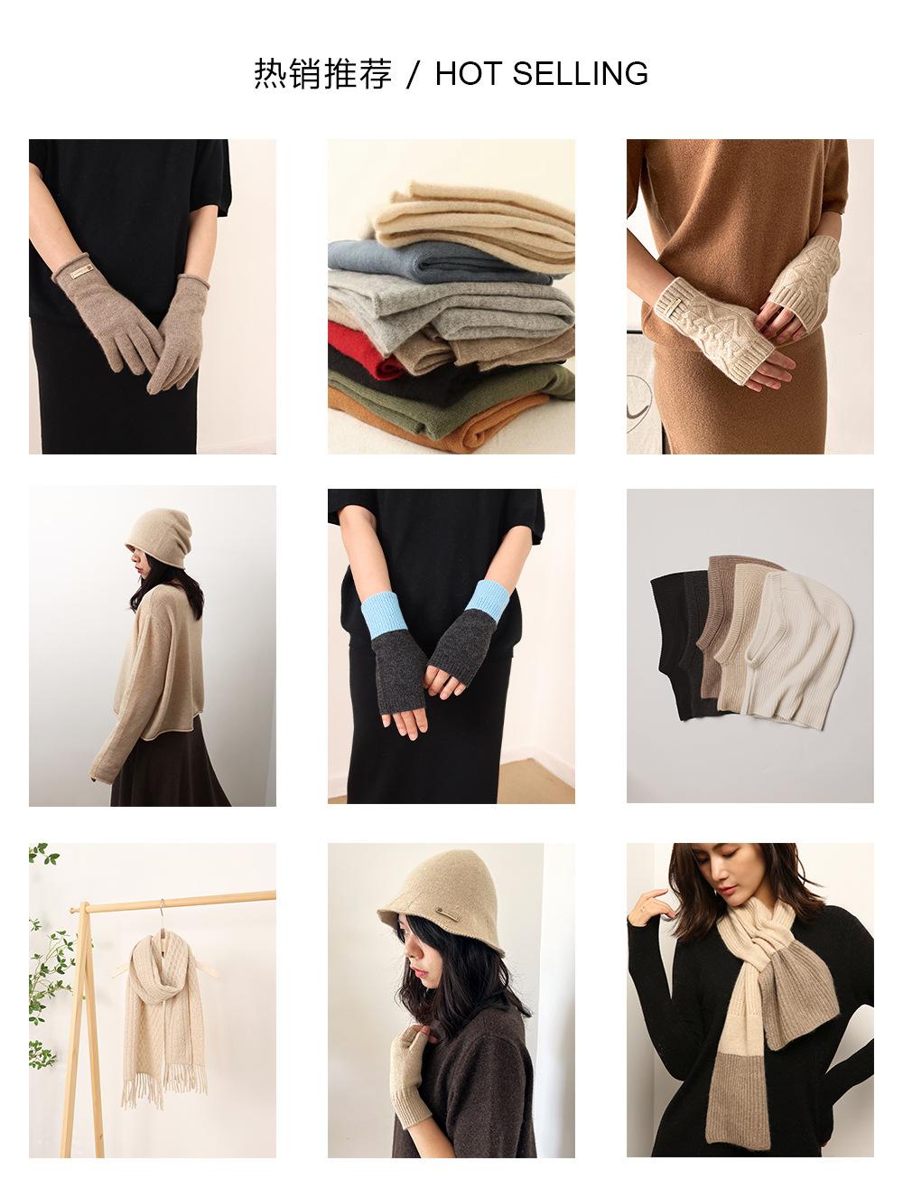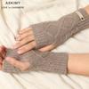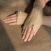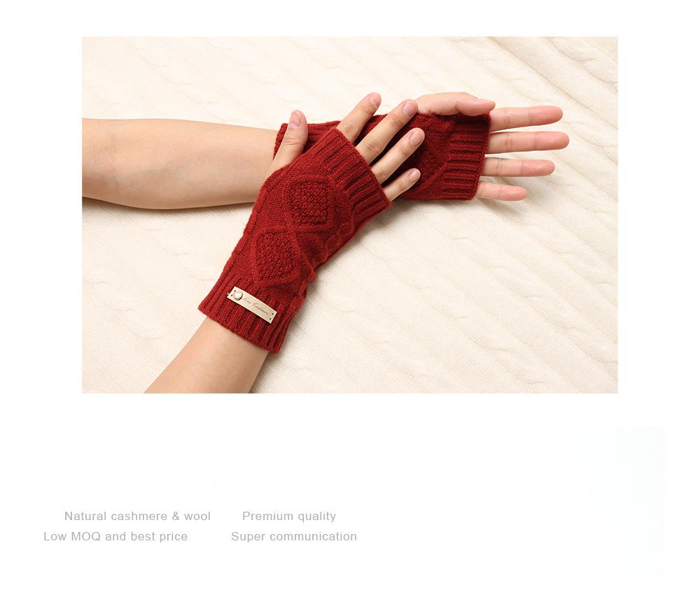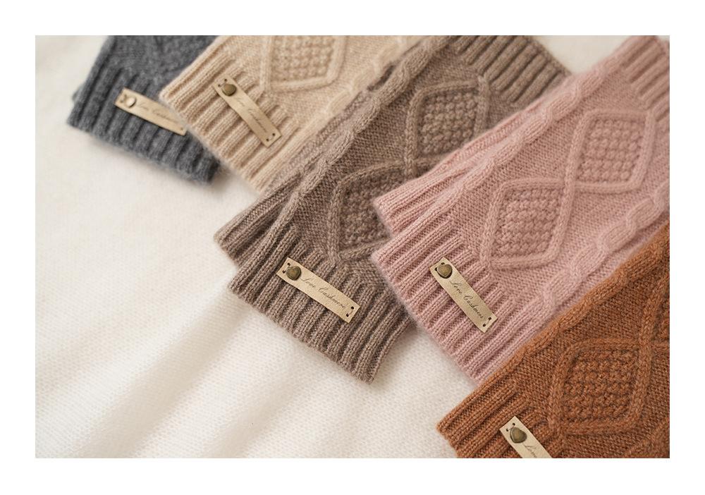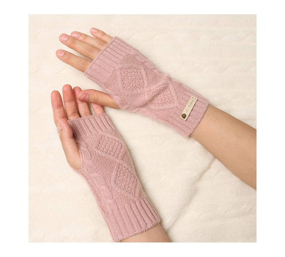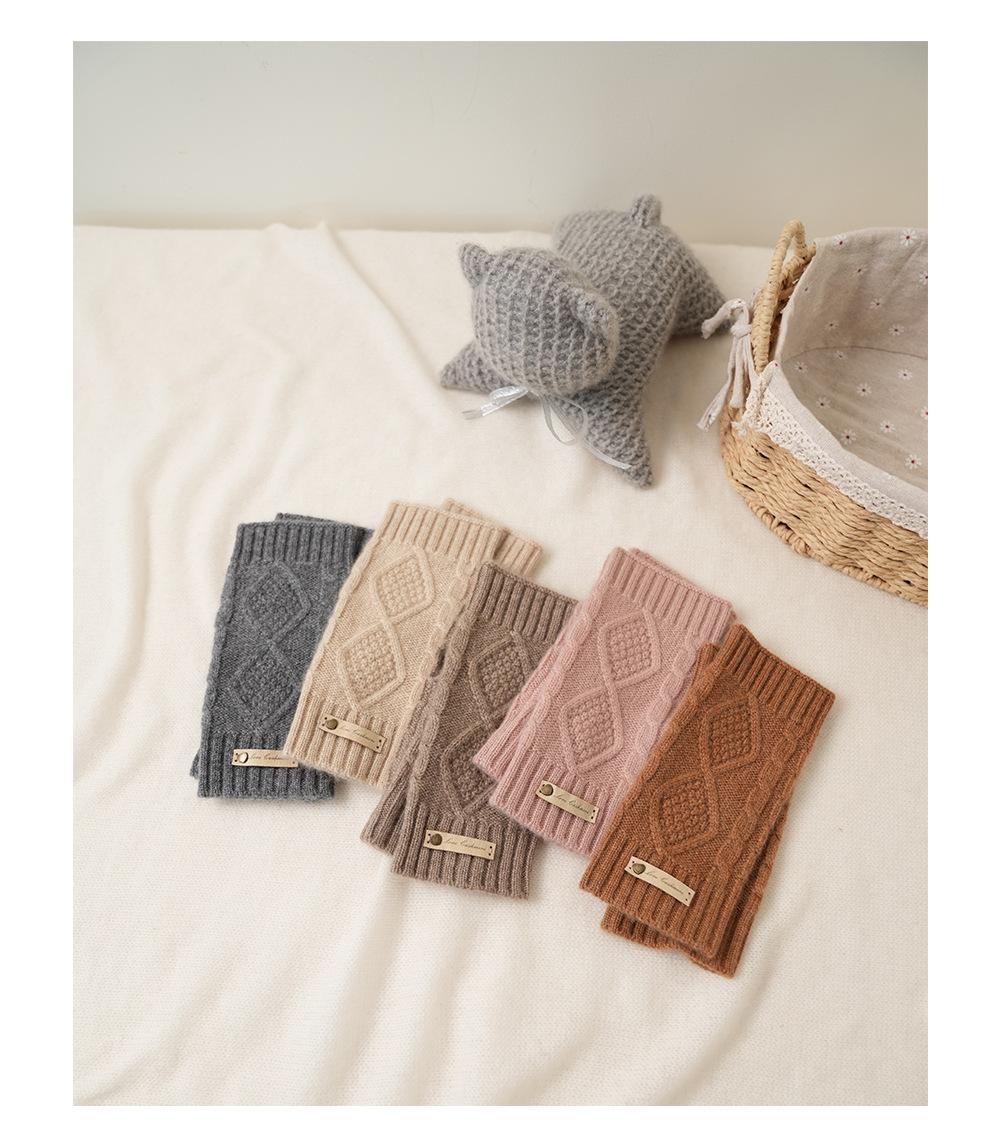 Guantes sin dedos de punto de cachemira pura para mujer, nuevos y cálidos guantes de otoño con forma de rombo.
