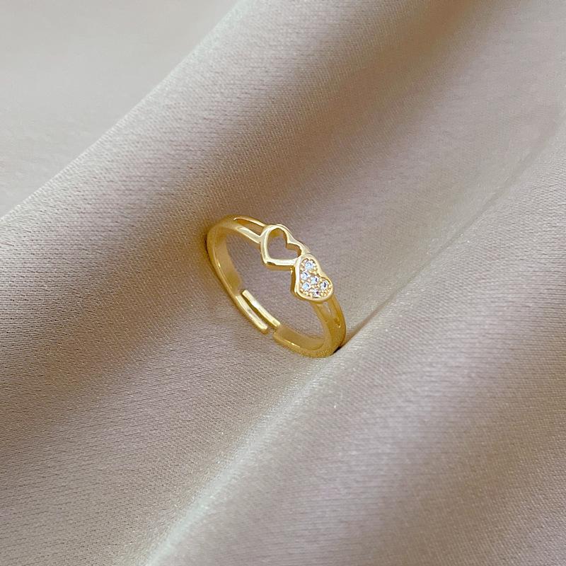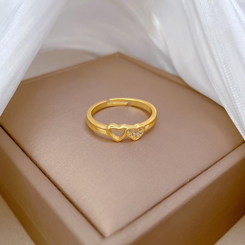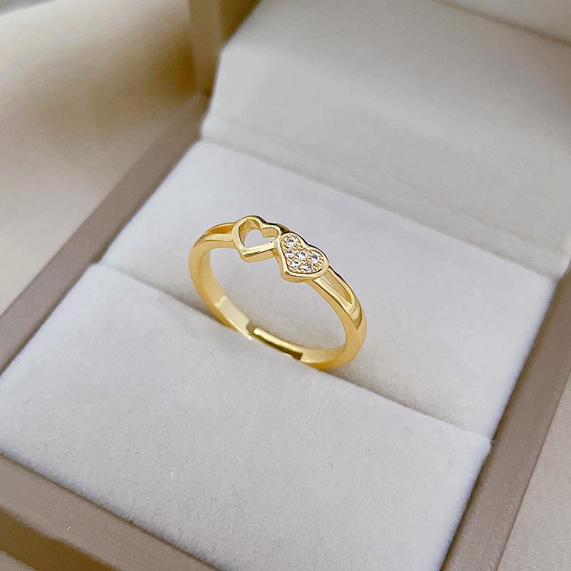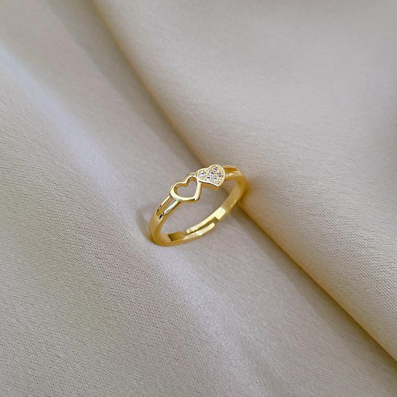 [Oro Verdadero] Amor Hueco Anillo Pequeño Abertura Ajustable Simple Teléfono Móvil Anillo Japonés Anillo de Pareja