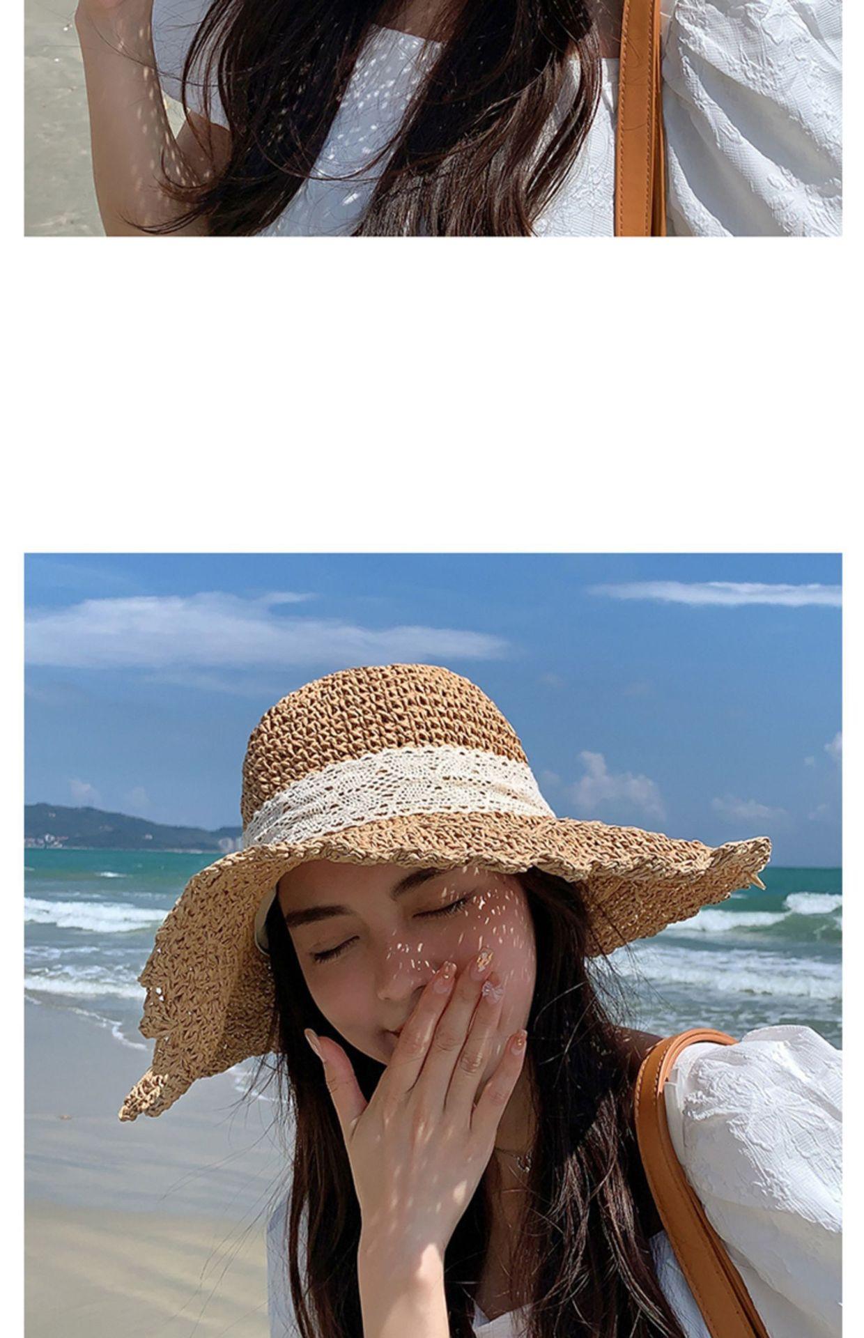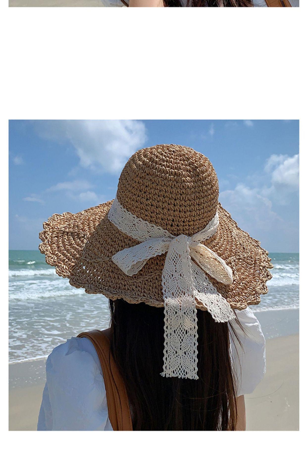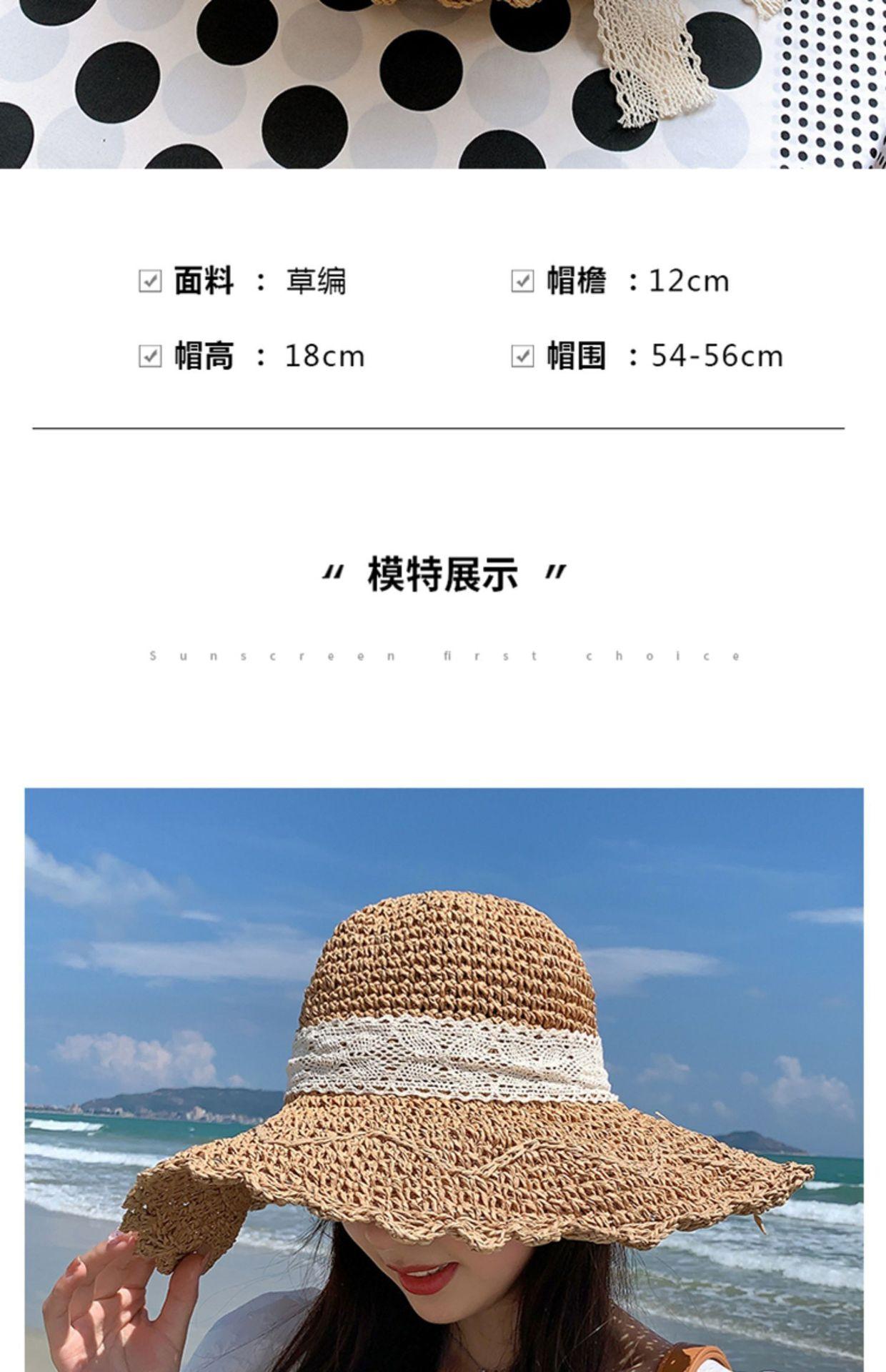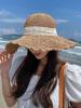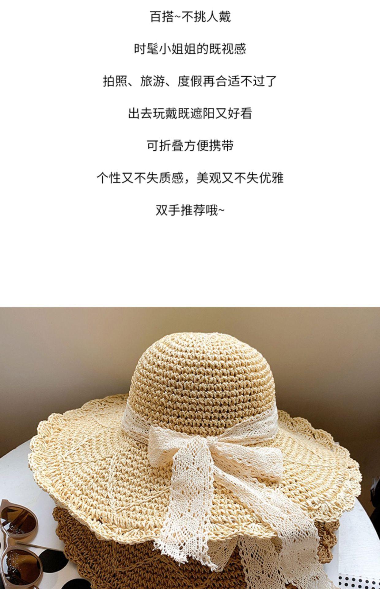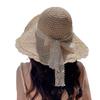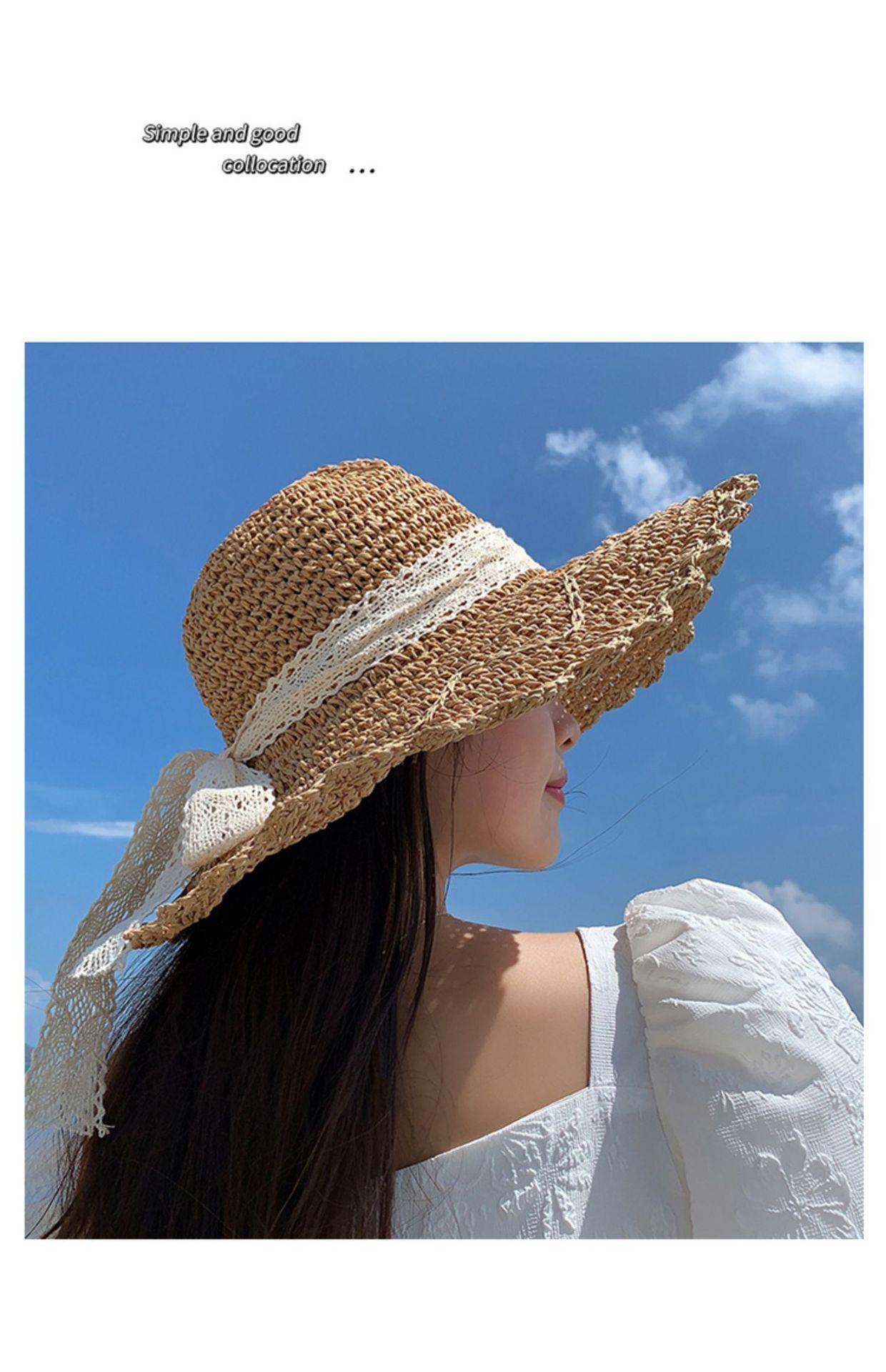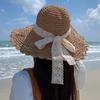 Sombrero de Paja para Mujer Verano Playa Ala Ancha Japonés Protector Solar Sombrilla Sombrero para Viajar y Vacaciones Tejido Junto al Mar con Cordones