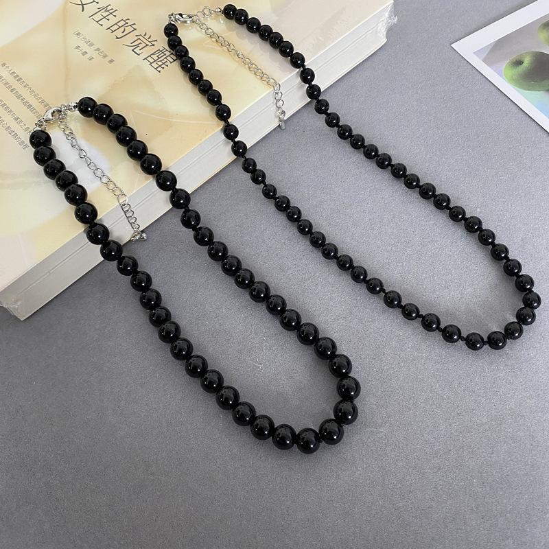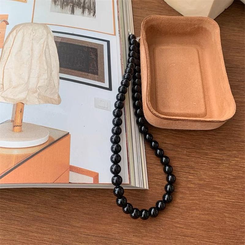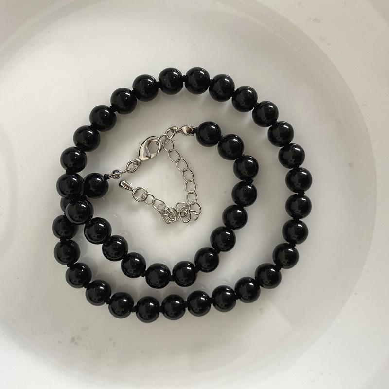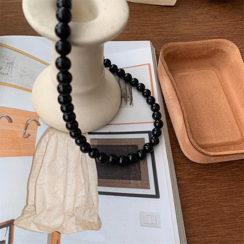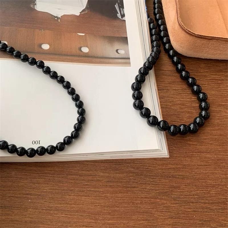 Collar de cuentas negras de piedra natural con diseño de nicho femenino de alta gama, cadena de clavícula hecha a mano con cuentas.