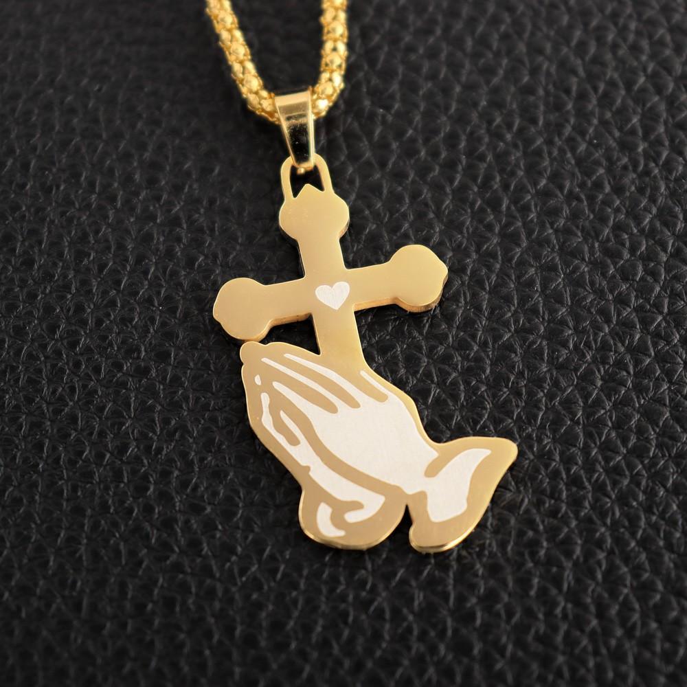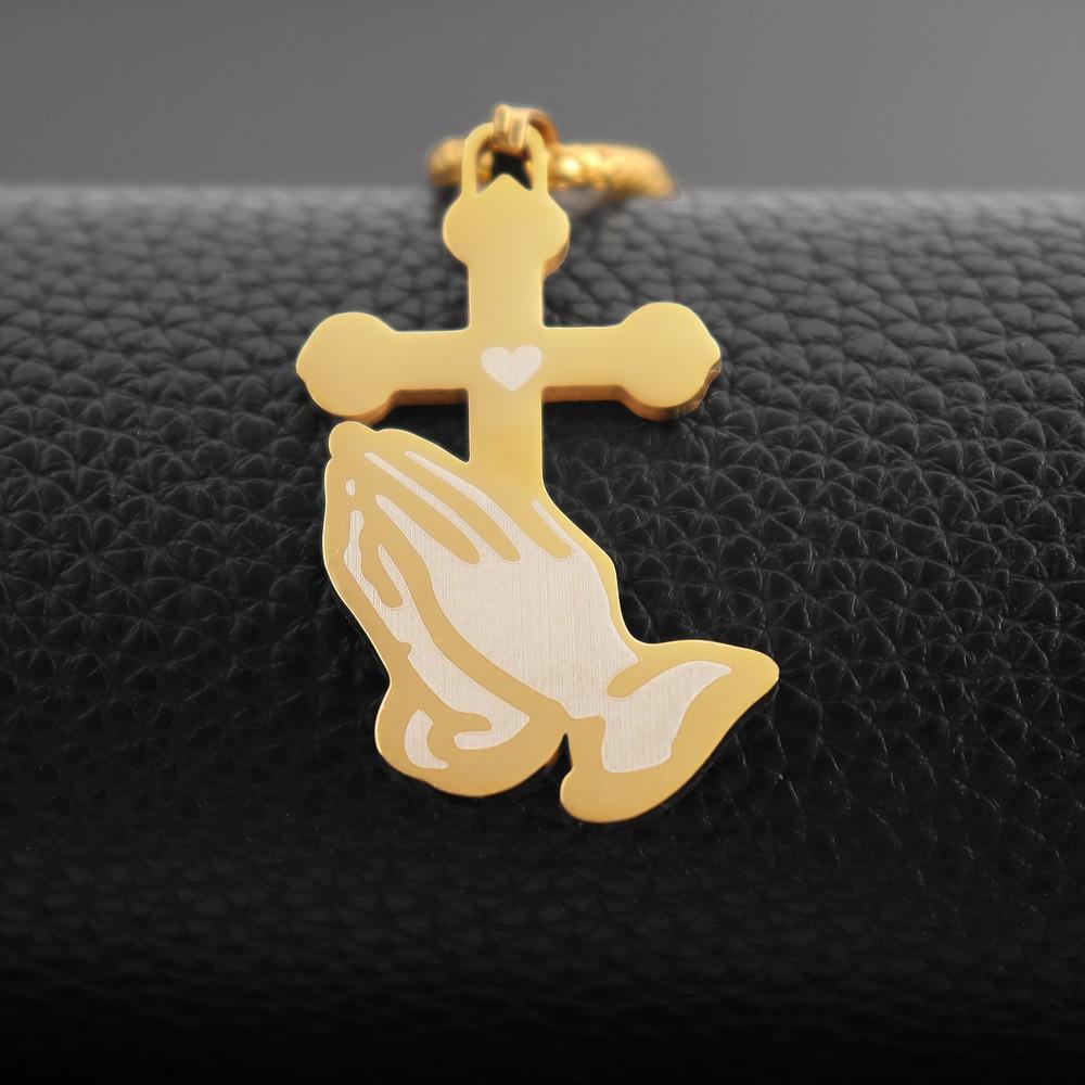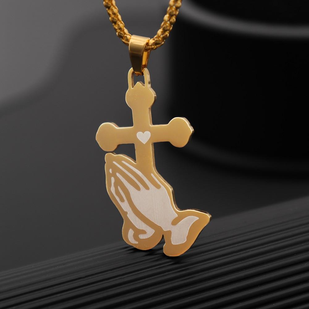 Collar de acero inoxidable Temu, gran oferta, con cruz de palma, colgante de acero inoxidable, joyería de acero de titanio.