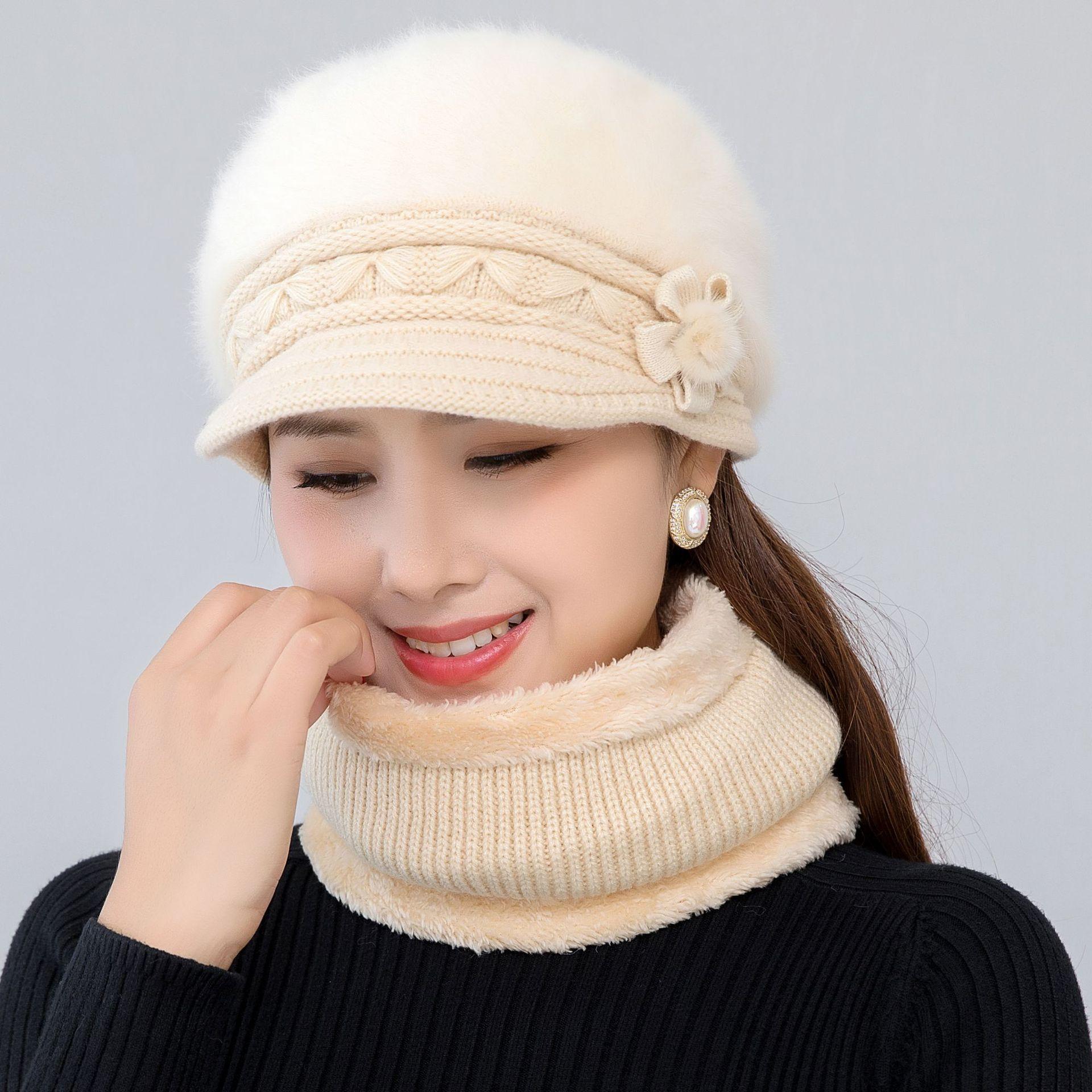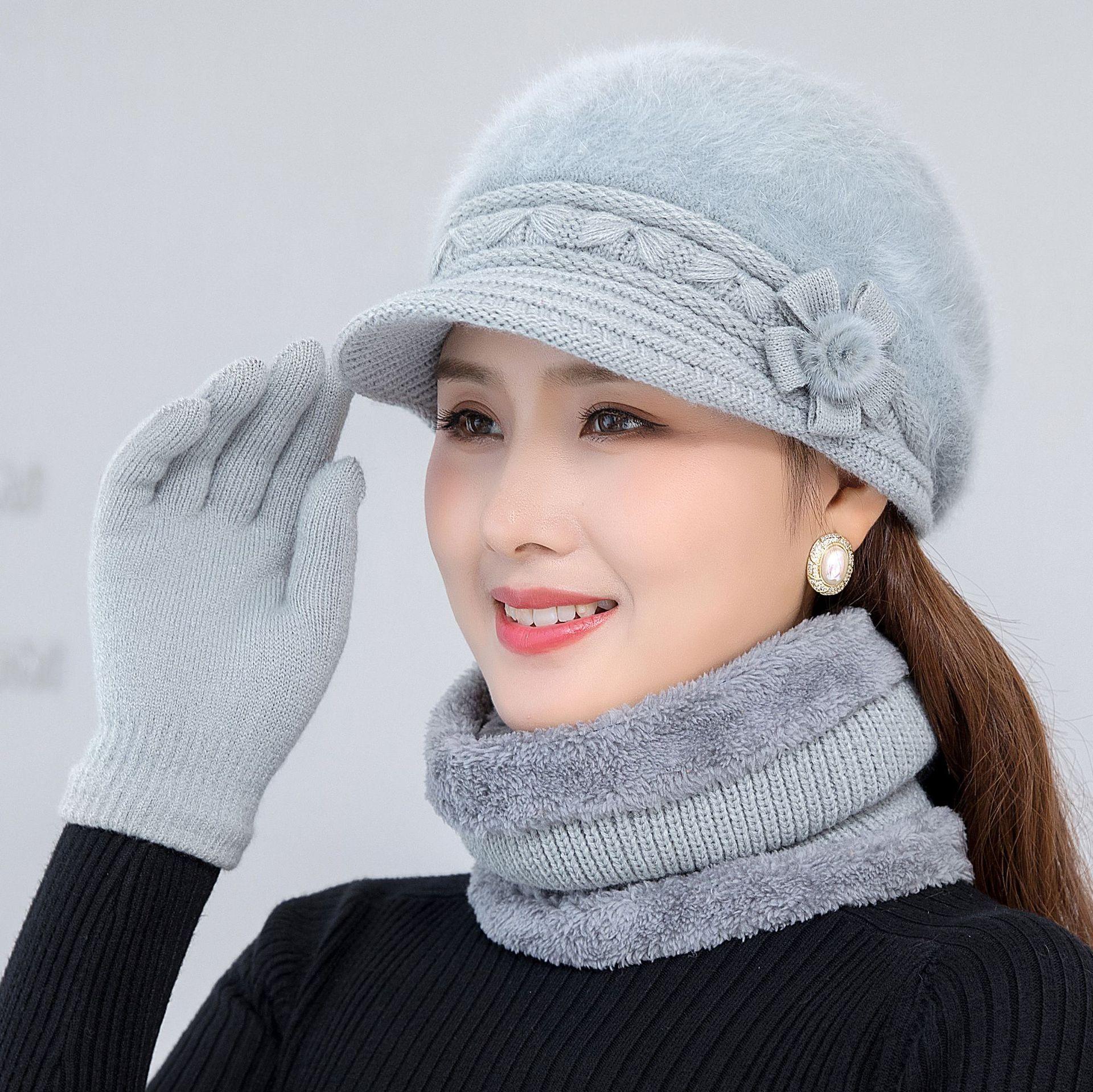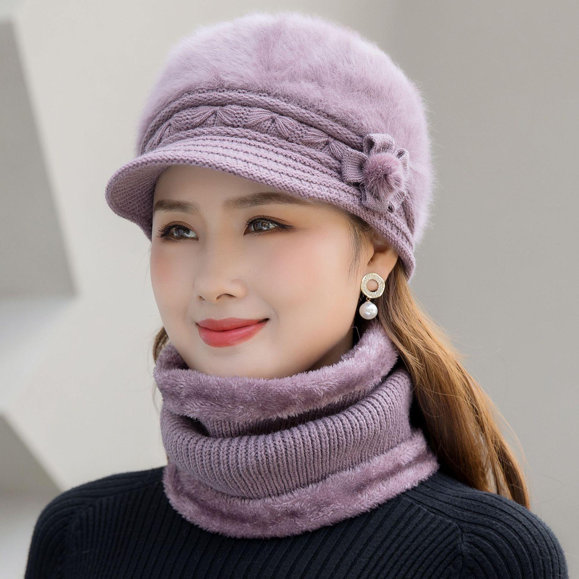 Set de gorro y bufanda para personas de mediana edad y ancianos, gorro cálido de invierno para mujer, gorro de lana tejido para madre, gorro viejo de abuela