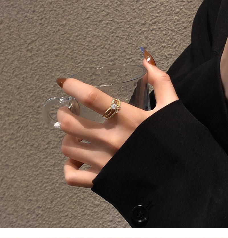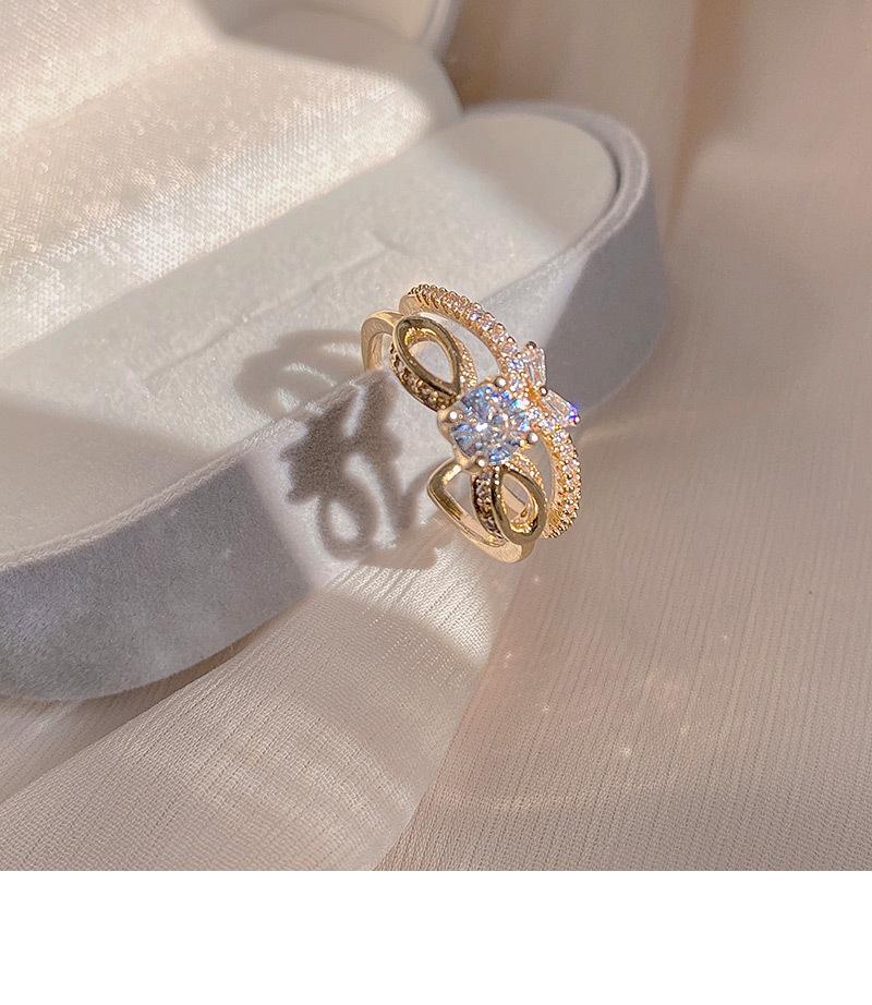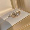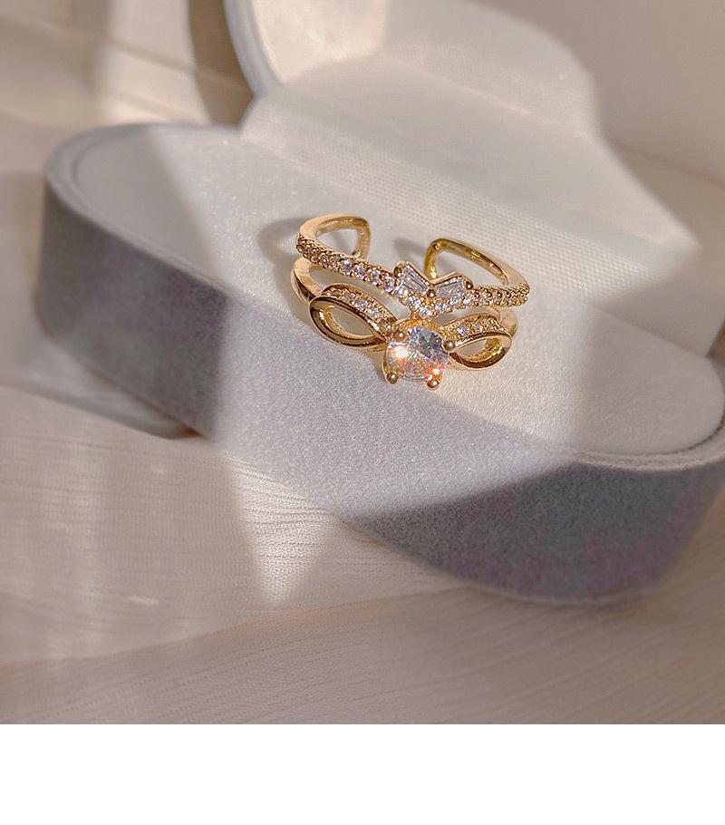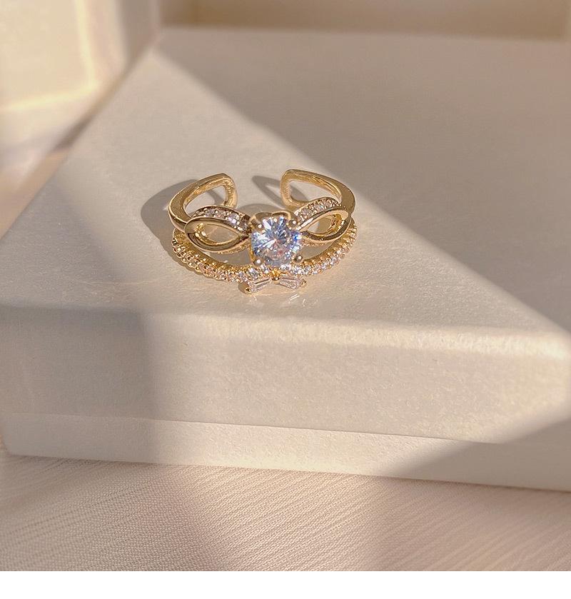 Anillo de circonita de doble capa con lazo de diamantes de diseño, anillo de temperamento de moda de lujo ligero para mujer, anillo de dedo índice de red roja
