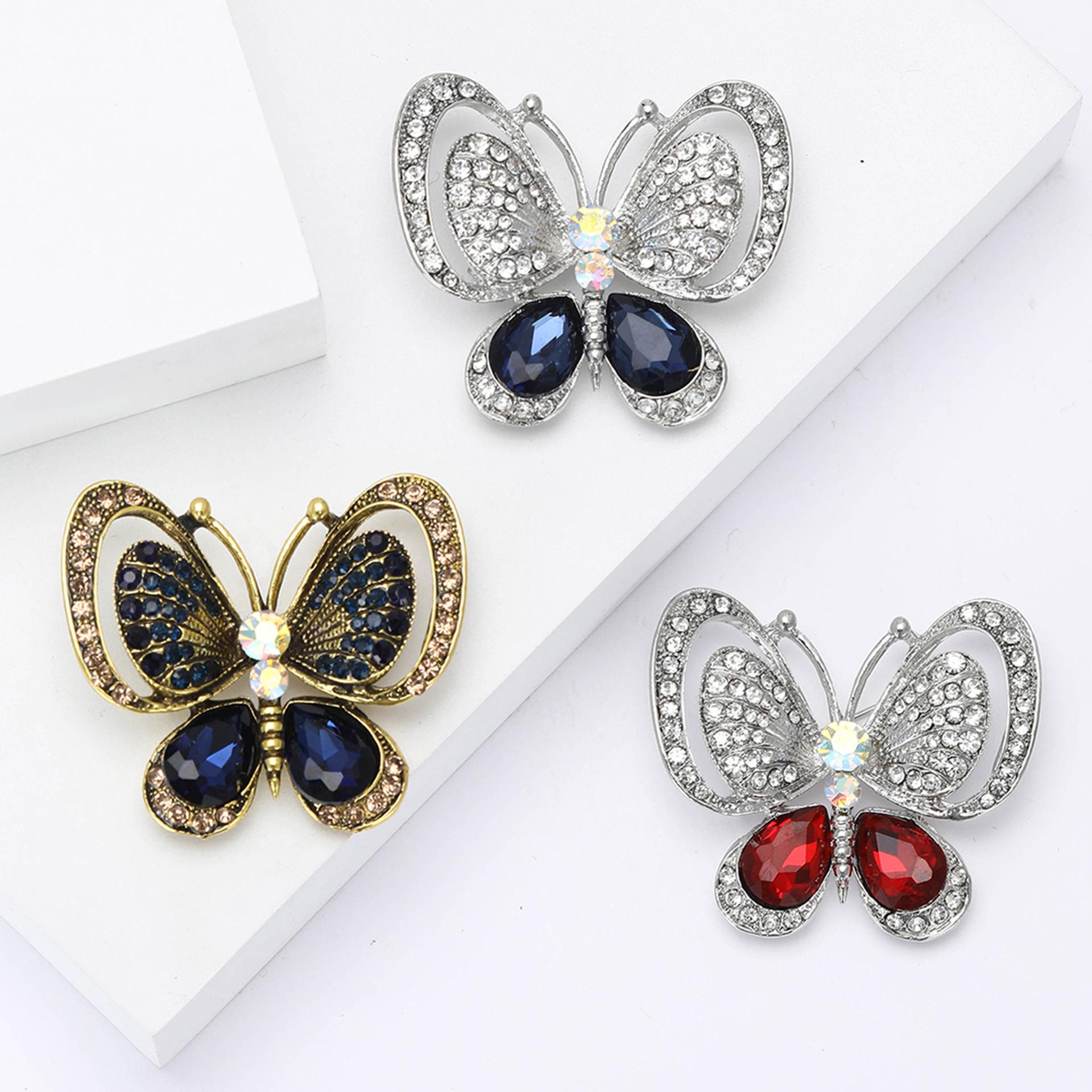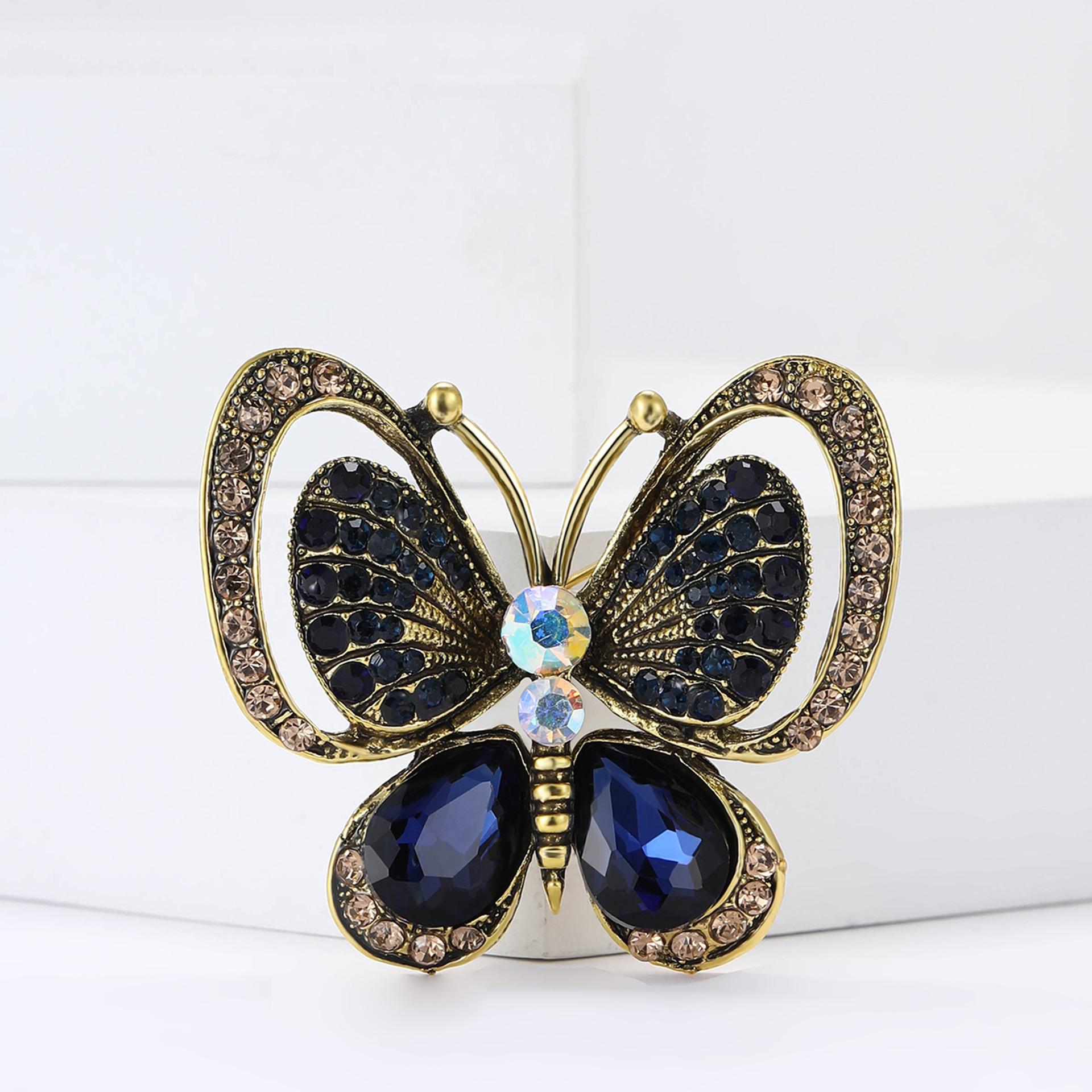 Broche de mariposa de diamantes de aleación vintage de moda coreana, broche de alta gama que combina con todo para mujer, cárdigan, ramillete, alfiler de joyería