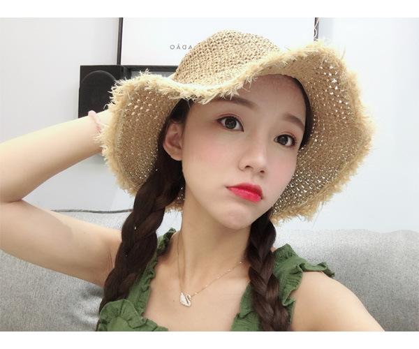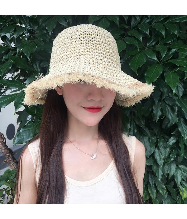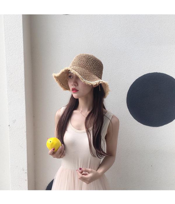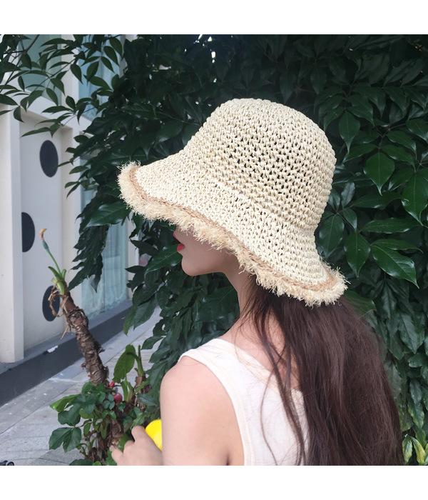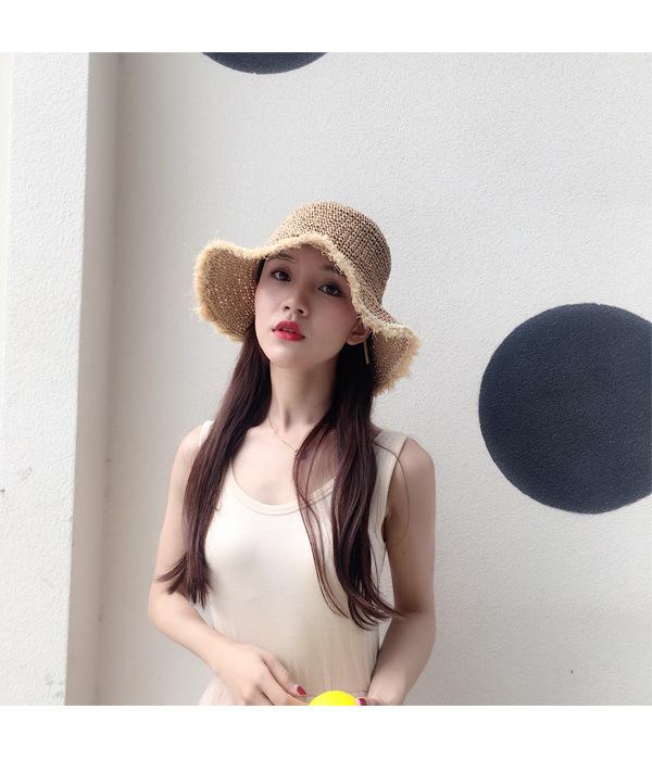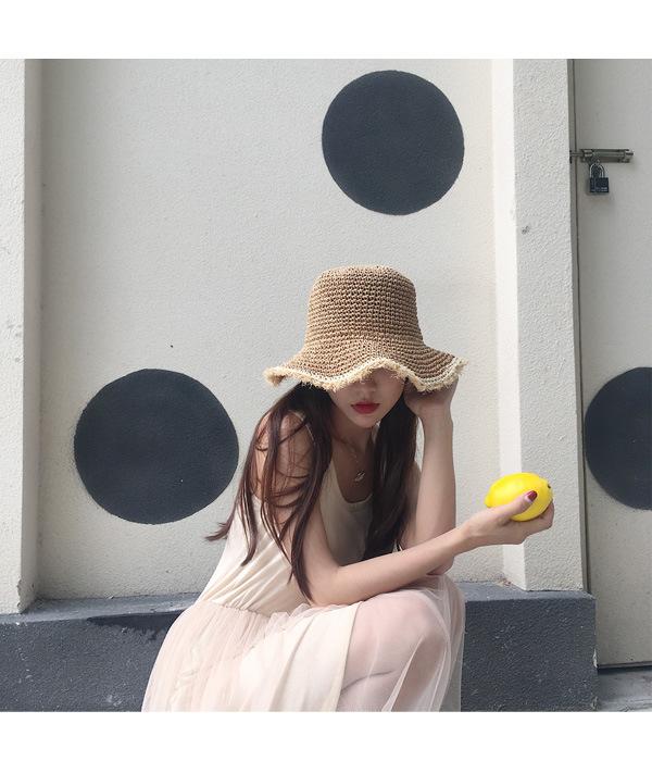 Sombrero de paja para mujer, estilo coreano, para playa, verano, versátil, plegable, estilo pescador
