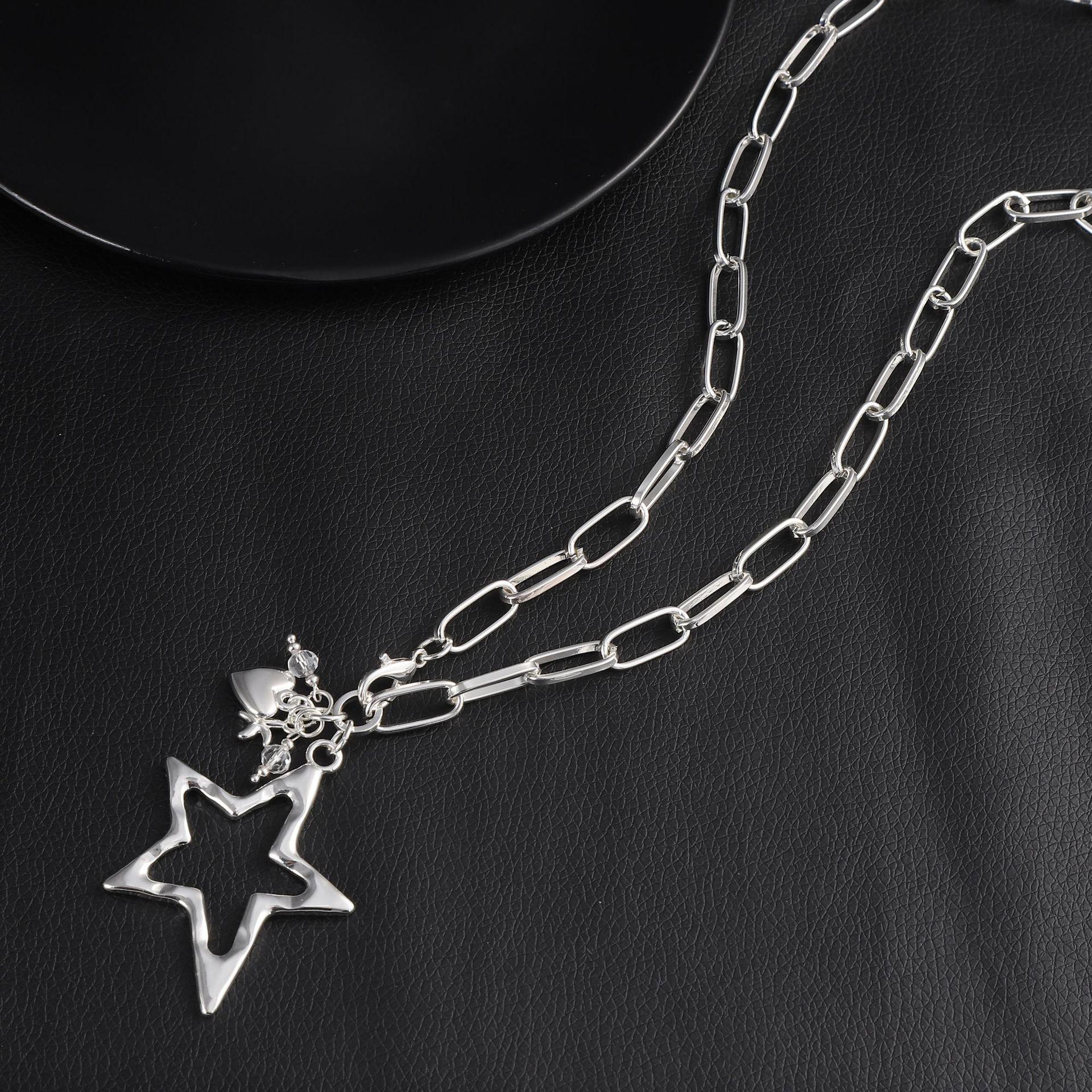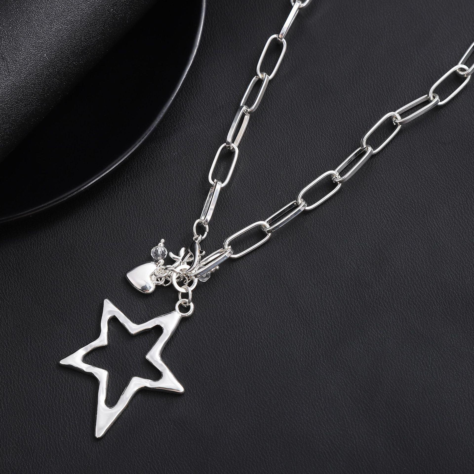 Colgante de aleación de estrella de cinco puntas irregular transfronterizo europeo y americano, cadena de suéter de mujer con estrella fresca simple y creativa