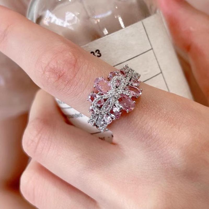 Anillo de mariposa rosa con goteo de aceite de esmalte para mujer, no se desvanece, la apertura es ajustable, nicho, alta gama, lujo ligero, nuevos productos al por mayor