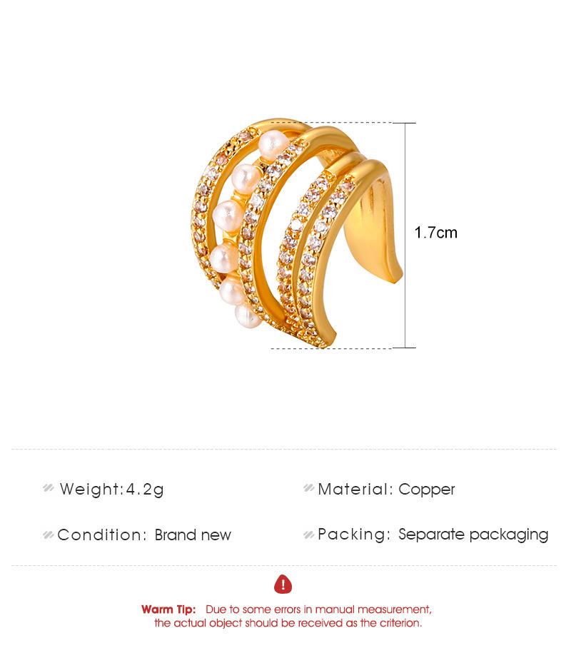Clip para oreja de diamante de cobre multicapa transfronterizo sin agujero para la oreja, temperamento de personalidad, perla, geométrico, estilo ins, aretes europeos y americanos