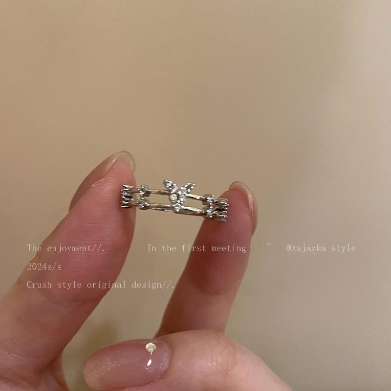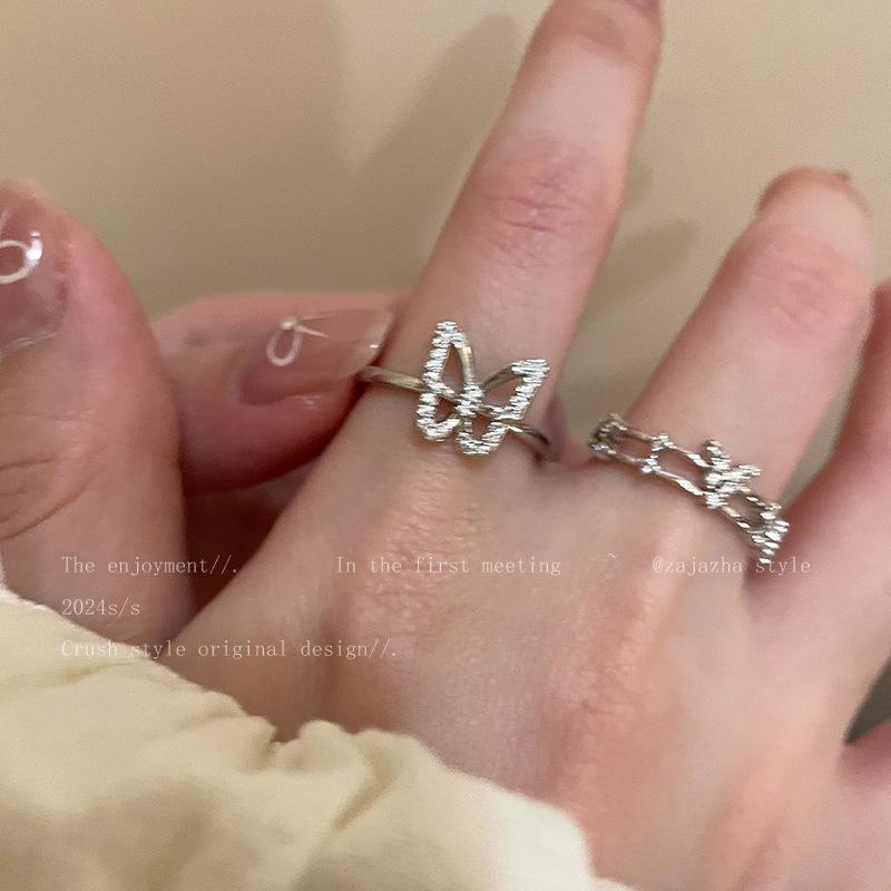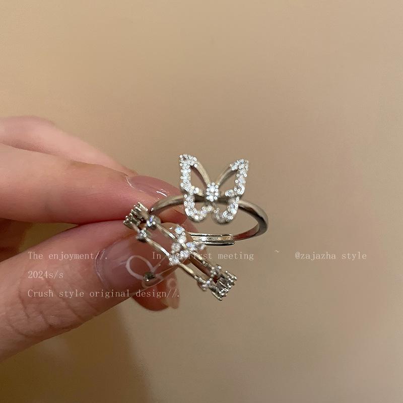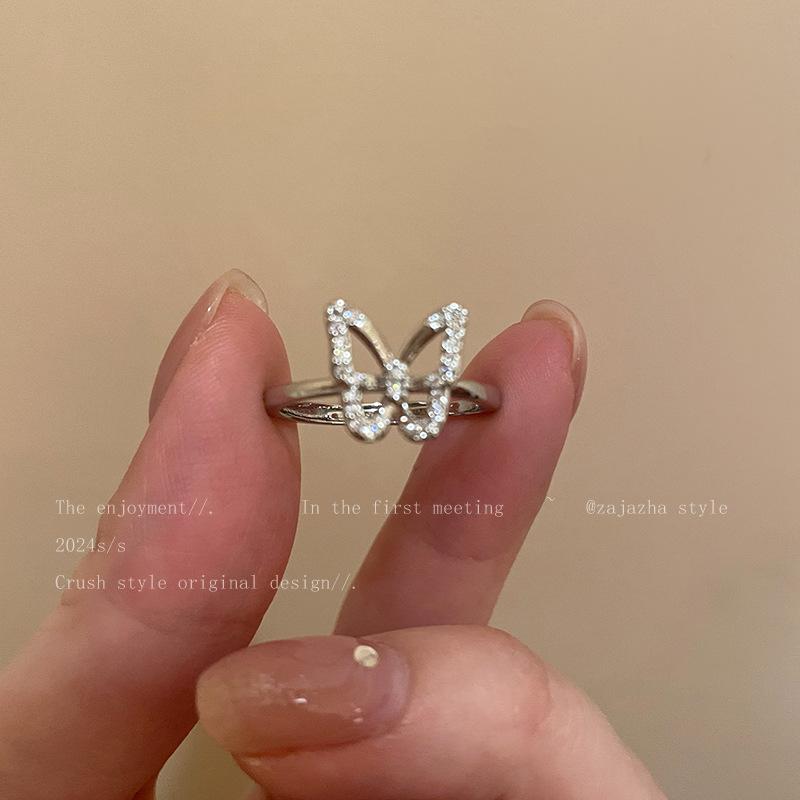 Anillo Abierto Doble Hueco de Zircón de Mariposa Anillo de Dedo Exquisito de Viento Frío para Mujer Anillo de Temperamento Nicho de Clase Alta para Verano
