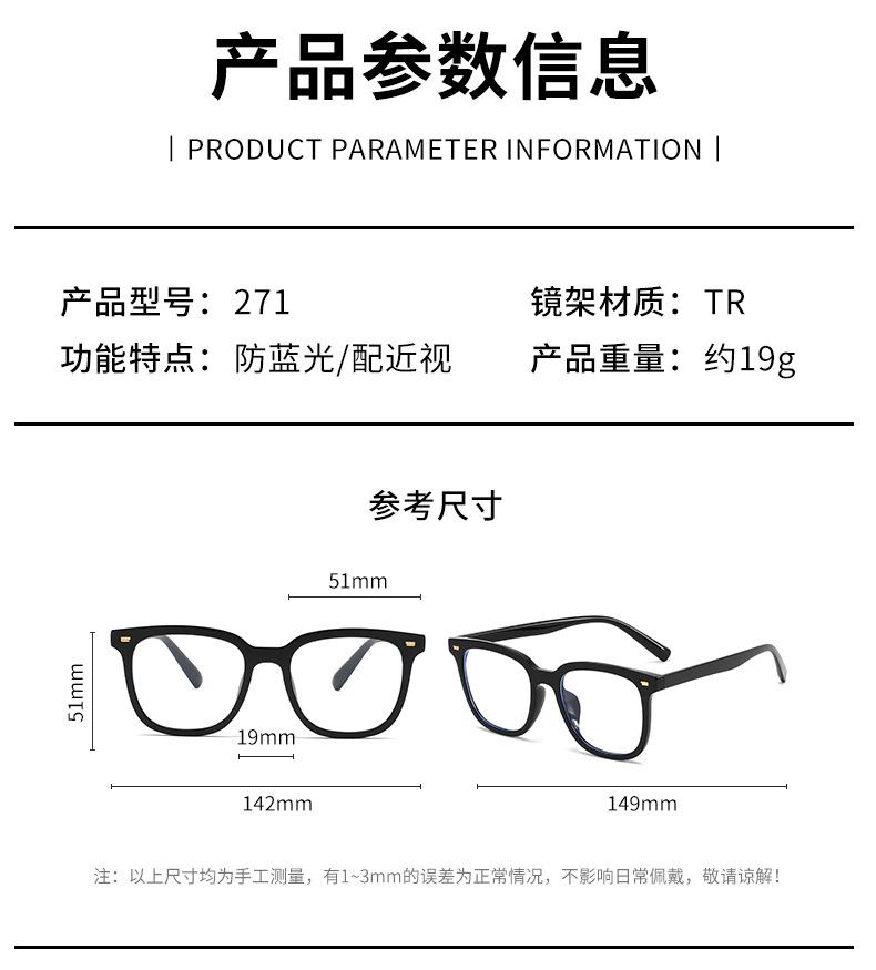 Armazón negro degradado maquillaje artefacto armazón de lentes anti luz azul cara pequeña miopía lentes TR cara cuadrada redonda femenino