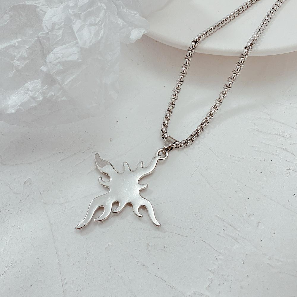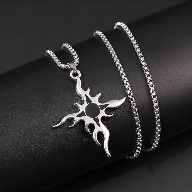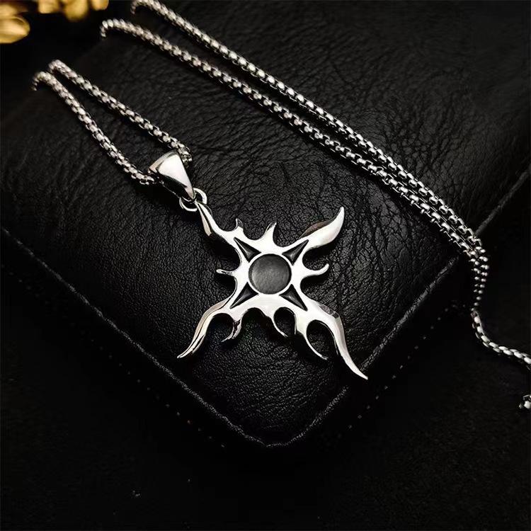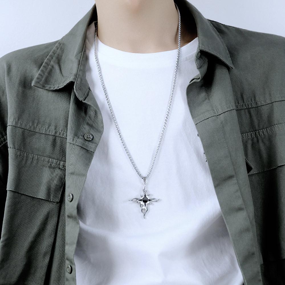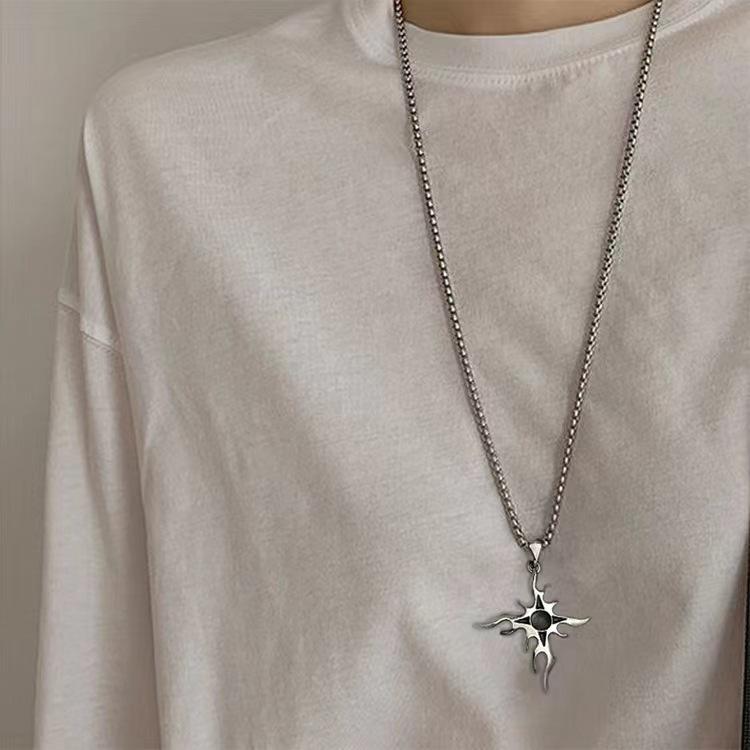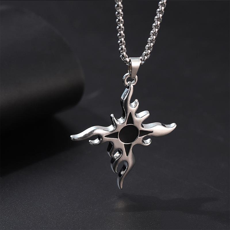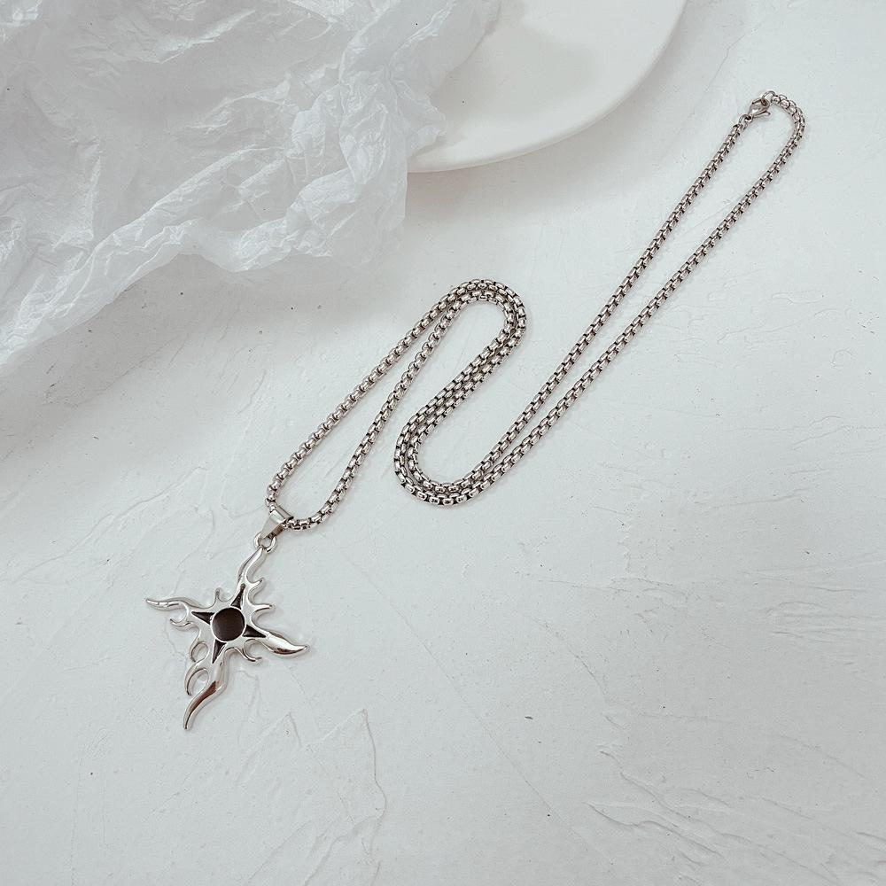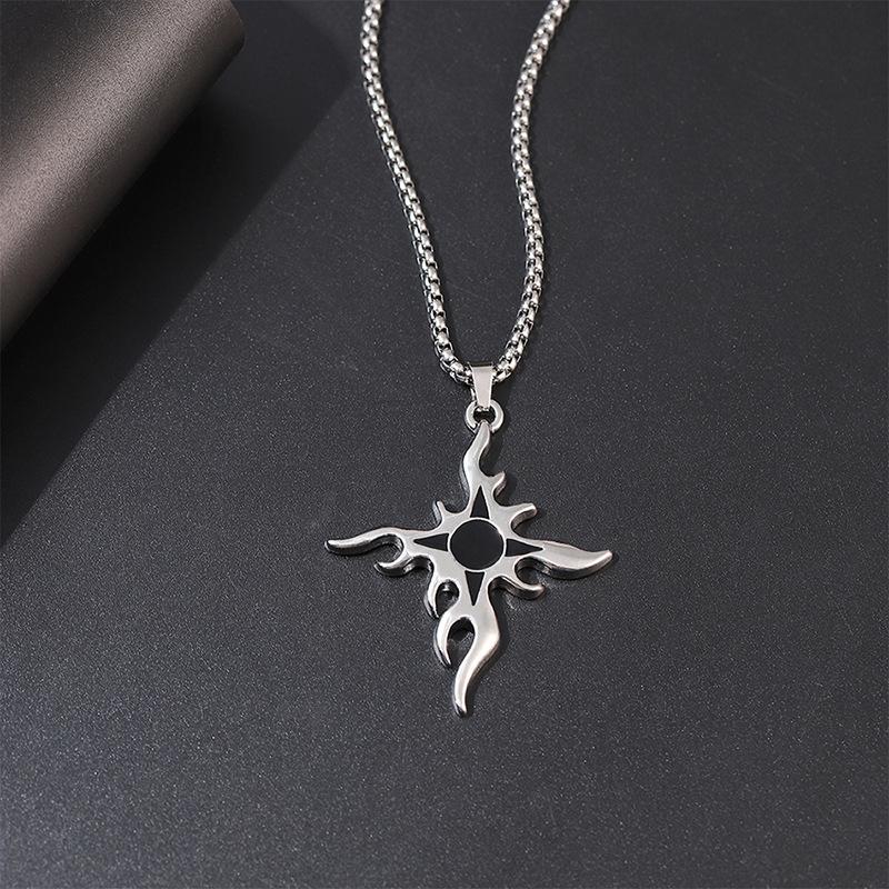 Collar de acero de titanio con cruz de llama de estilo punk para hombre, colgante con personalidad, estilo hip hop, cadena de suéter callejero, collar con colgante