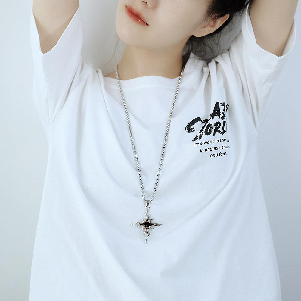 Flame cross necklace (titanium steel keel chain)