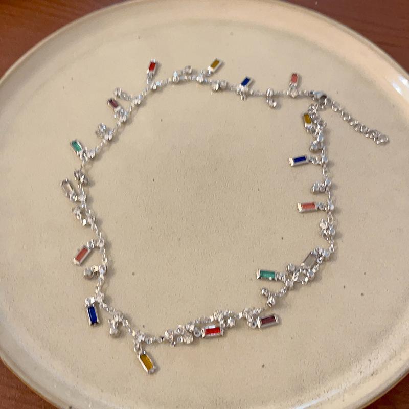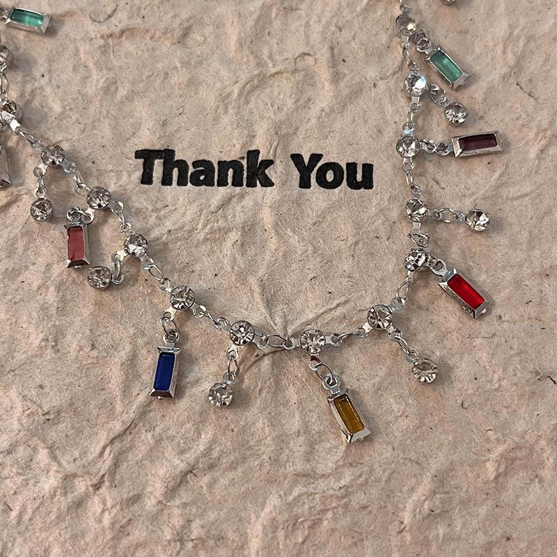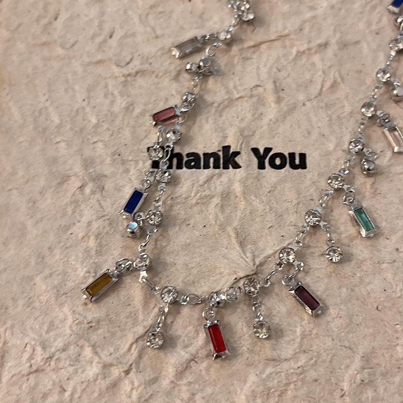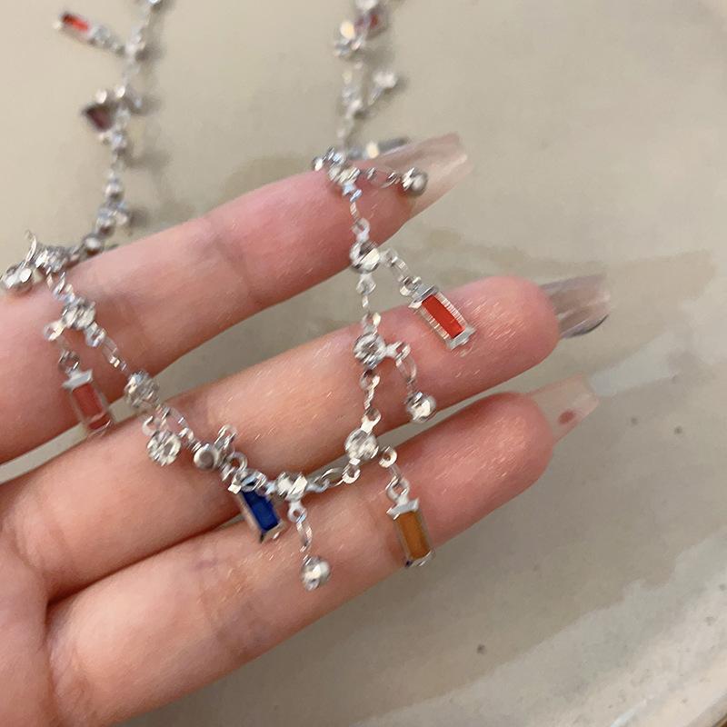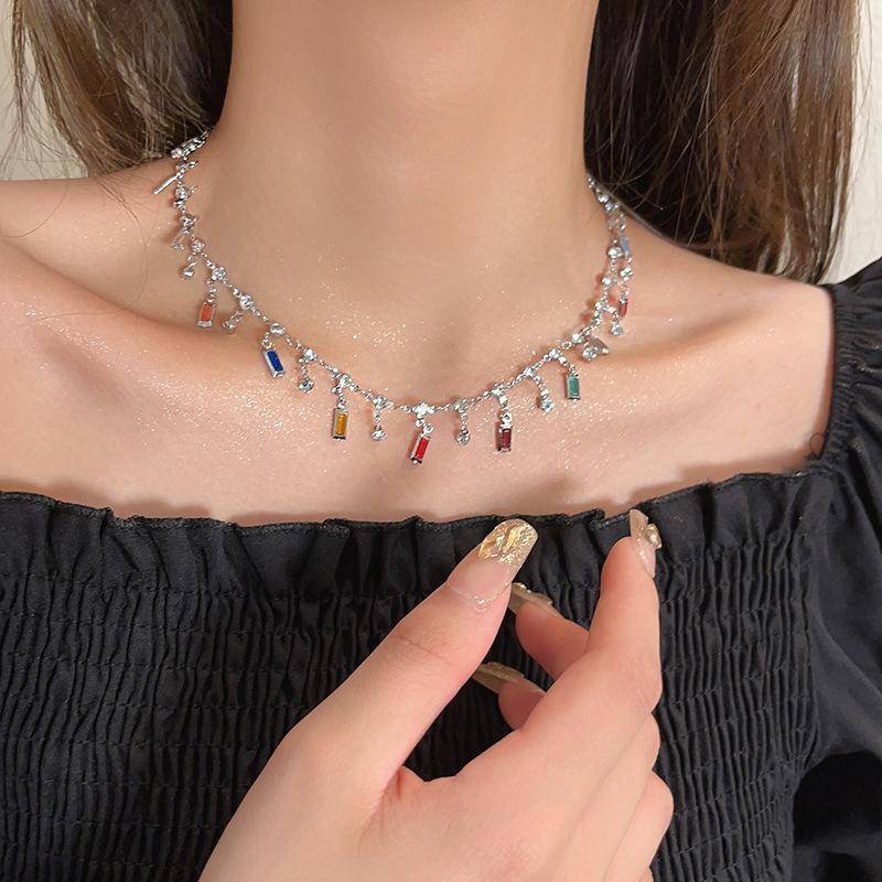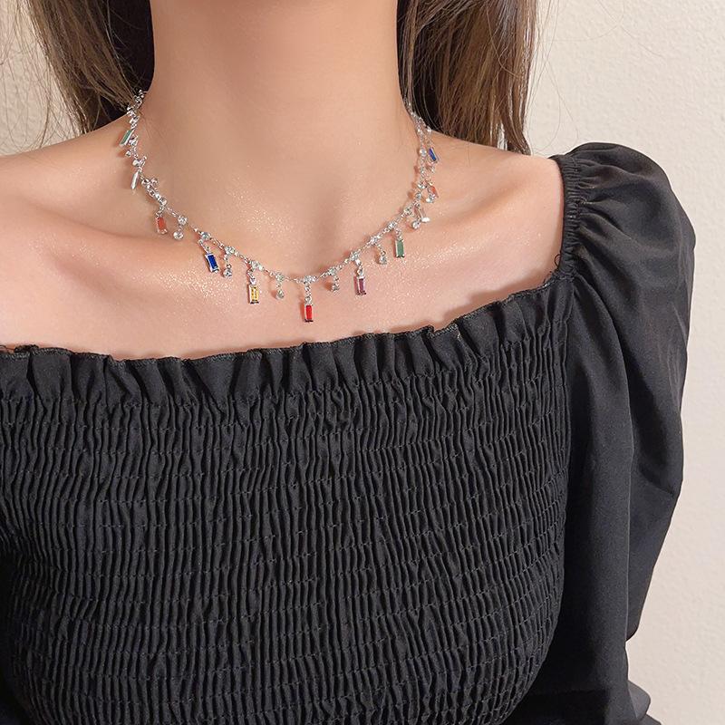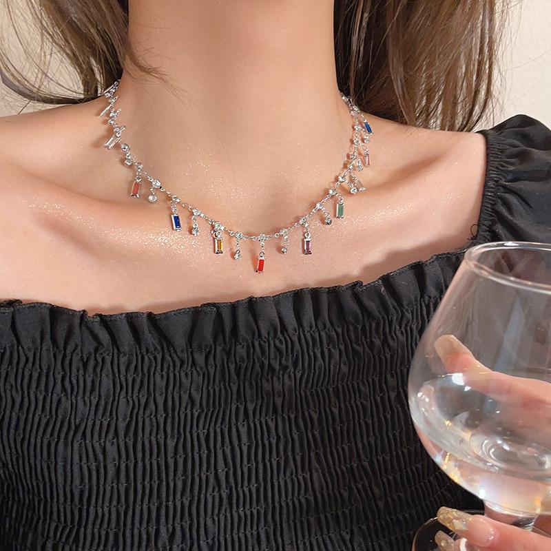 Estilo de verano ~ Collar de circonita con borlas de arcoíris para mujer, diseño de nicho de lujo ligero, collar de alta calidad, cadena de clavícula