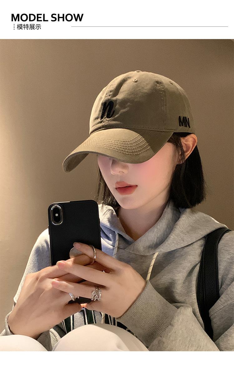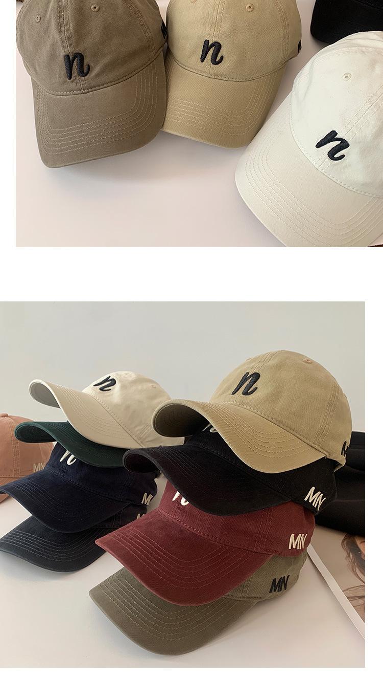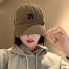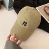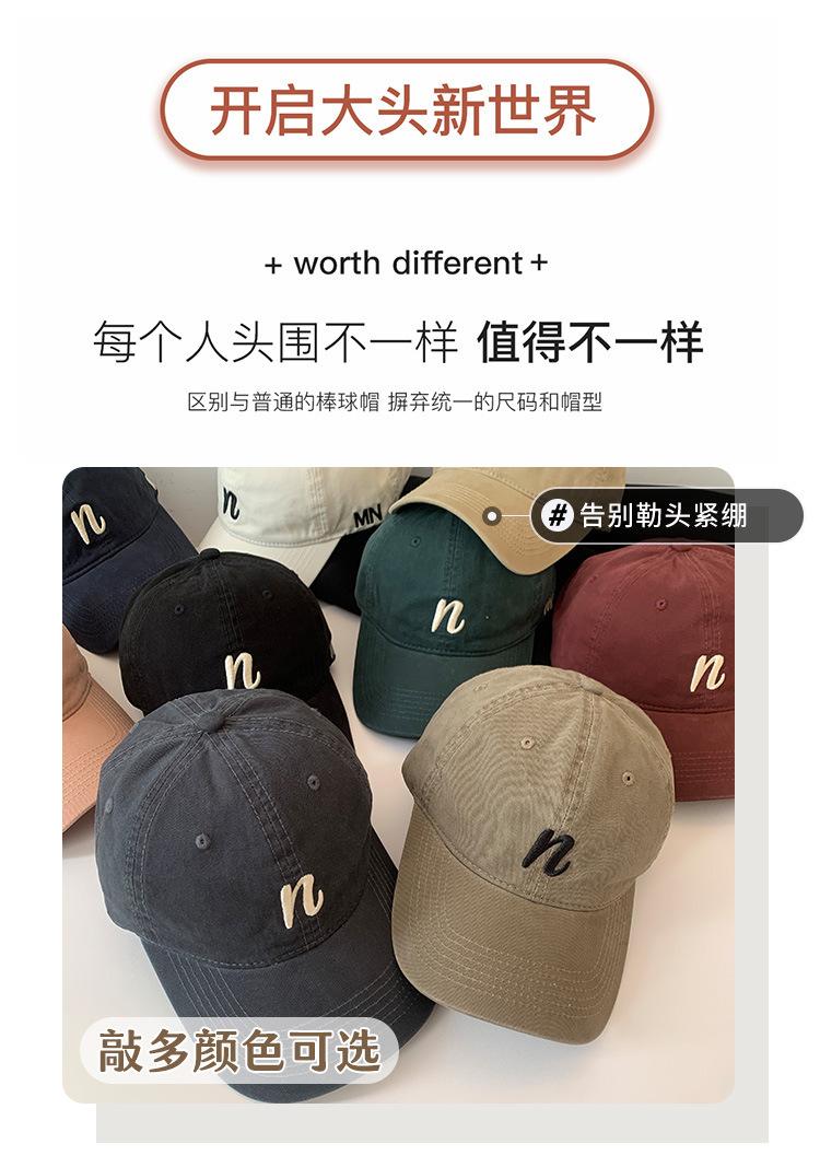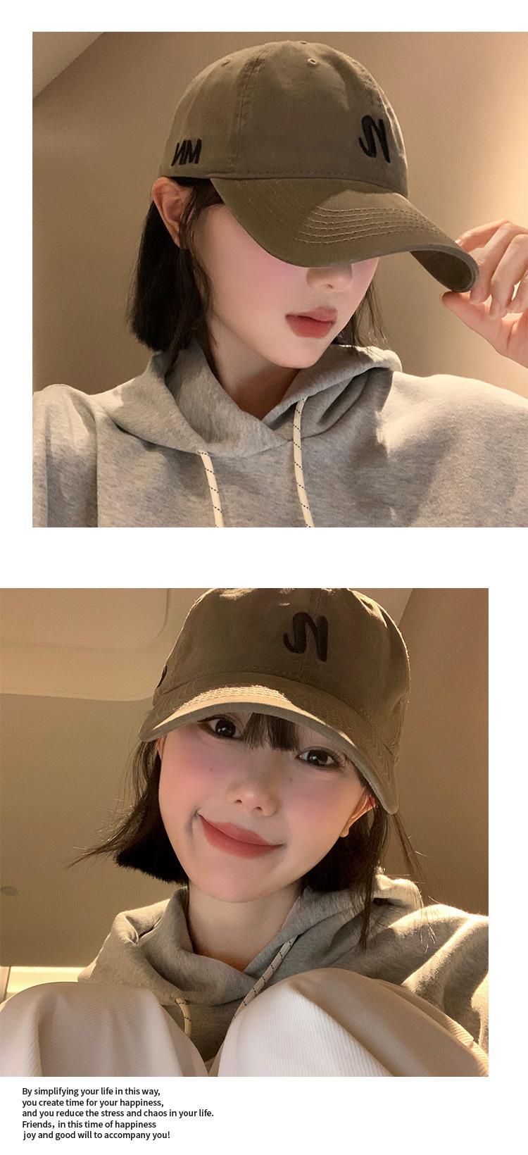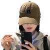 Gorra de béisbol retro marrón con letras bordadas de estilo coreano para mujer, gorra con visera de ala ancha y gran circunferencia de cabeza para todo tipo de ocasiones.