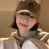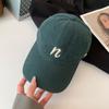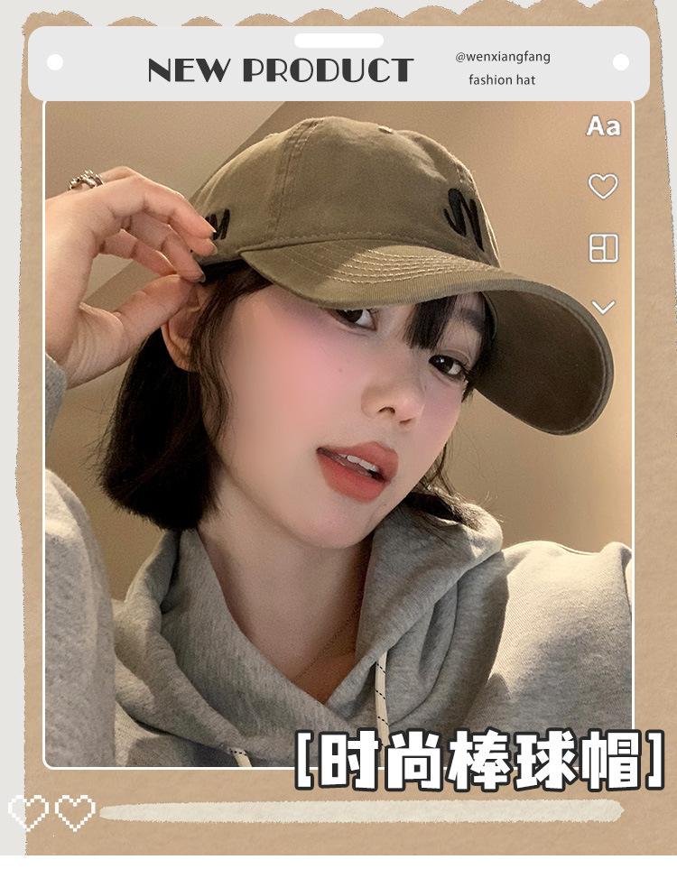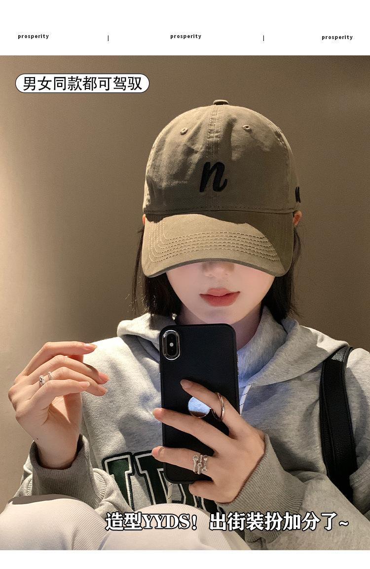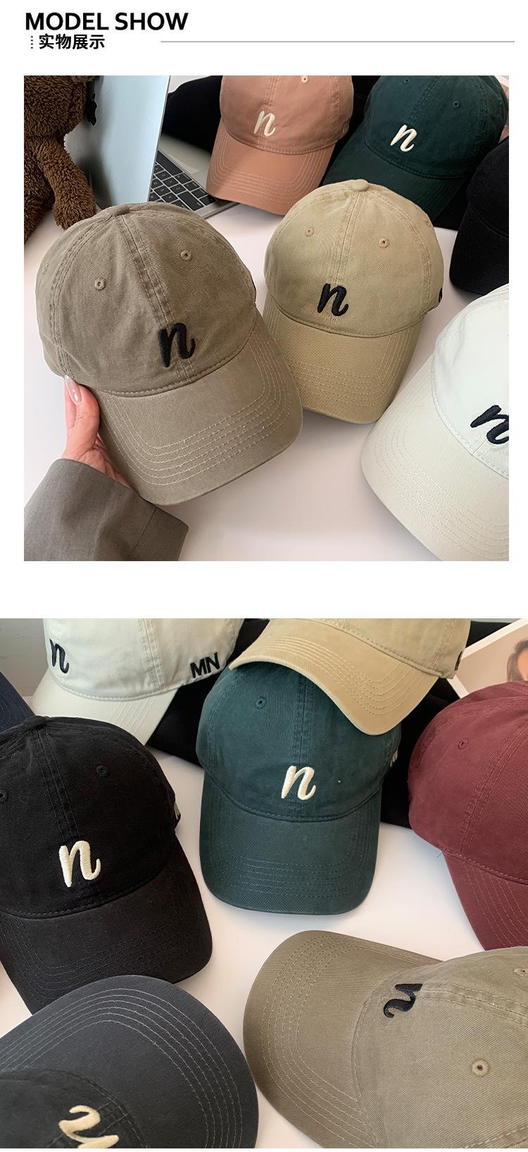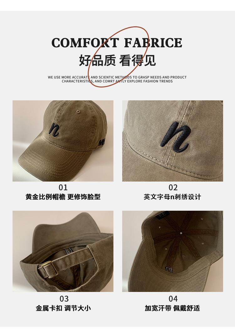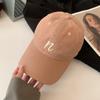 Gorra de béisbol retro marrón con letras bordadas de estilo coreano para mujer, gorra con visera de ala ancha y gran circunferencia de cabeza para todo tipo de ocasiones.