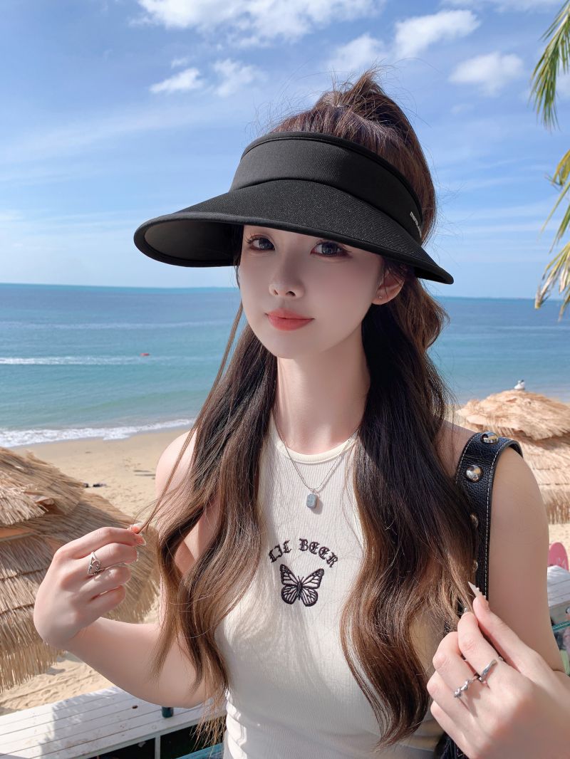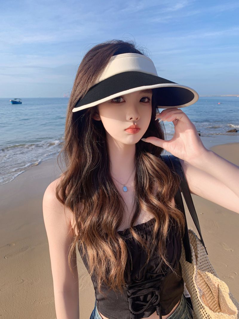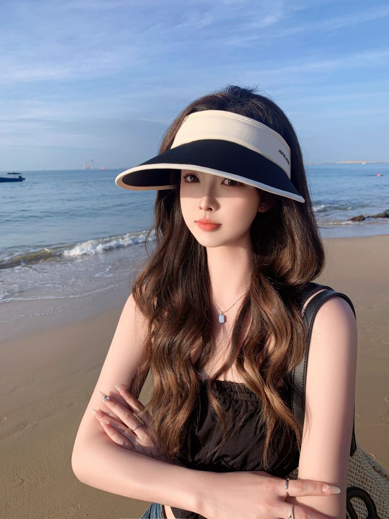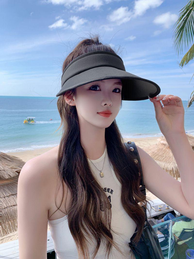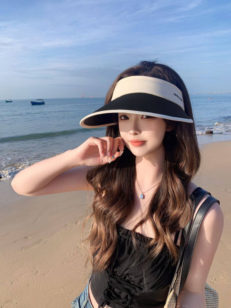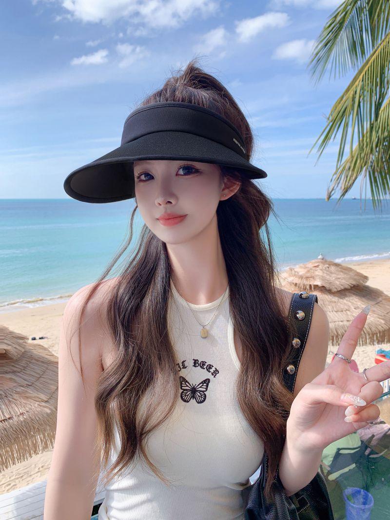 Sombrero de Sol para Mujer 2024 Nuevo Verano Anti-UV Ala Ancha Top Vacío Sombrero de Sol Contraste Seda de Hielo Sombrero Protector Solar