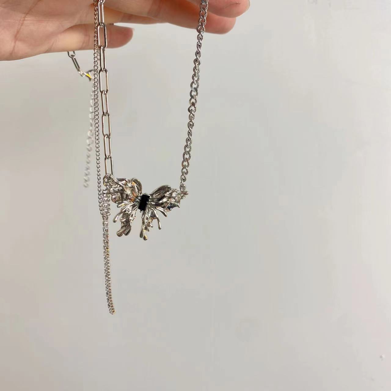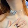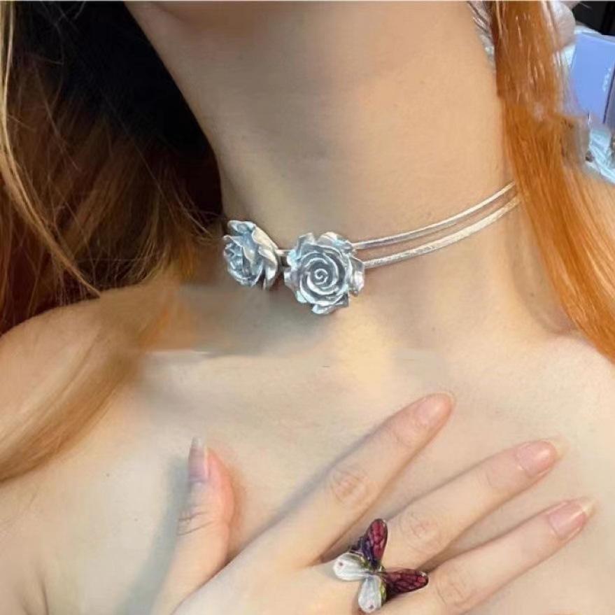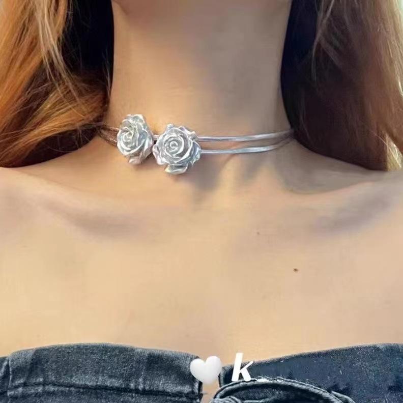 Gargantilla de viento frío con cadena de clavícula de rosa plateada, collar de chica dulce, fresco y sexy, nueva cadena de cuello para mujer 2023