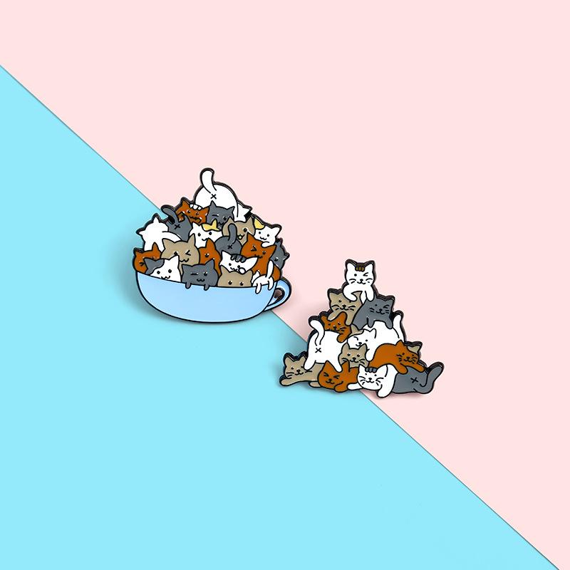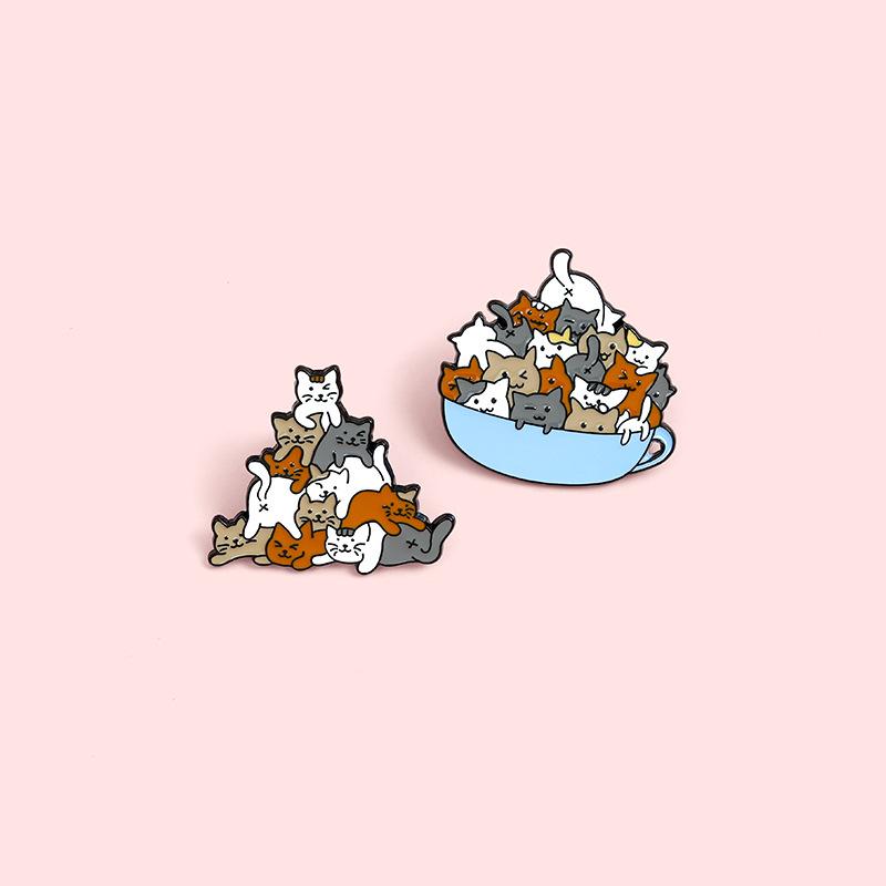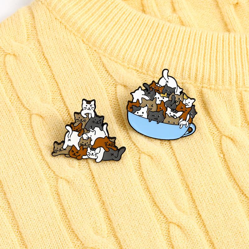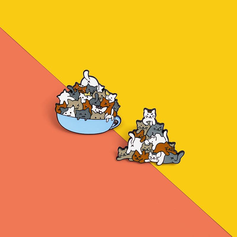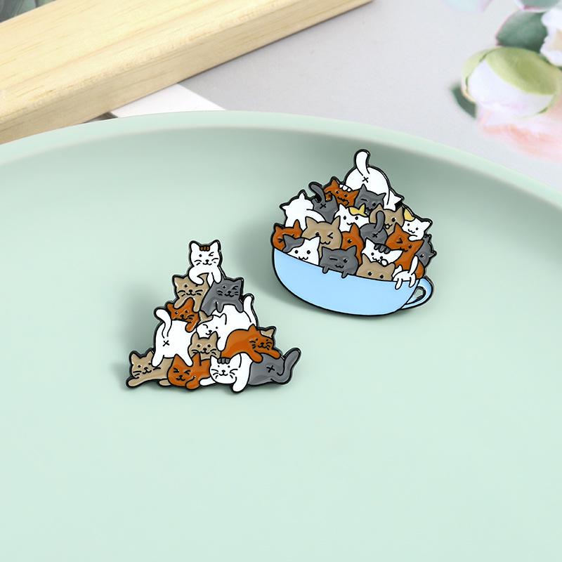 Broche de aleación con forma de animal, joyería de comercio exterior, creativo, con diseño de gato de dibujos animados, broche de pintura Luohan apilado, insignia, venta al por mayor