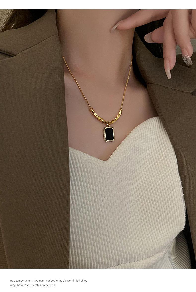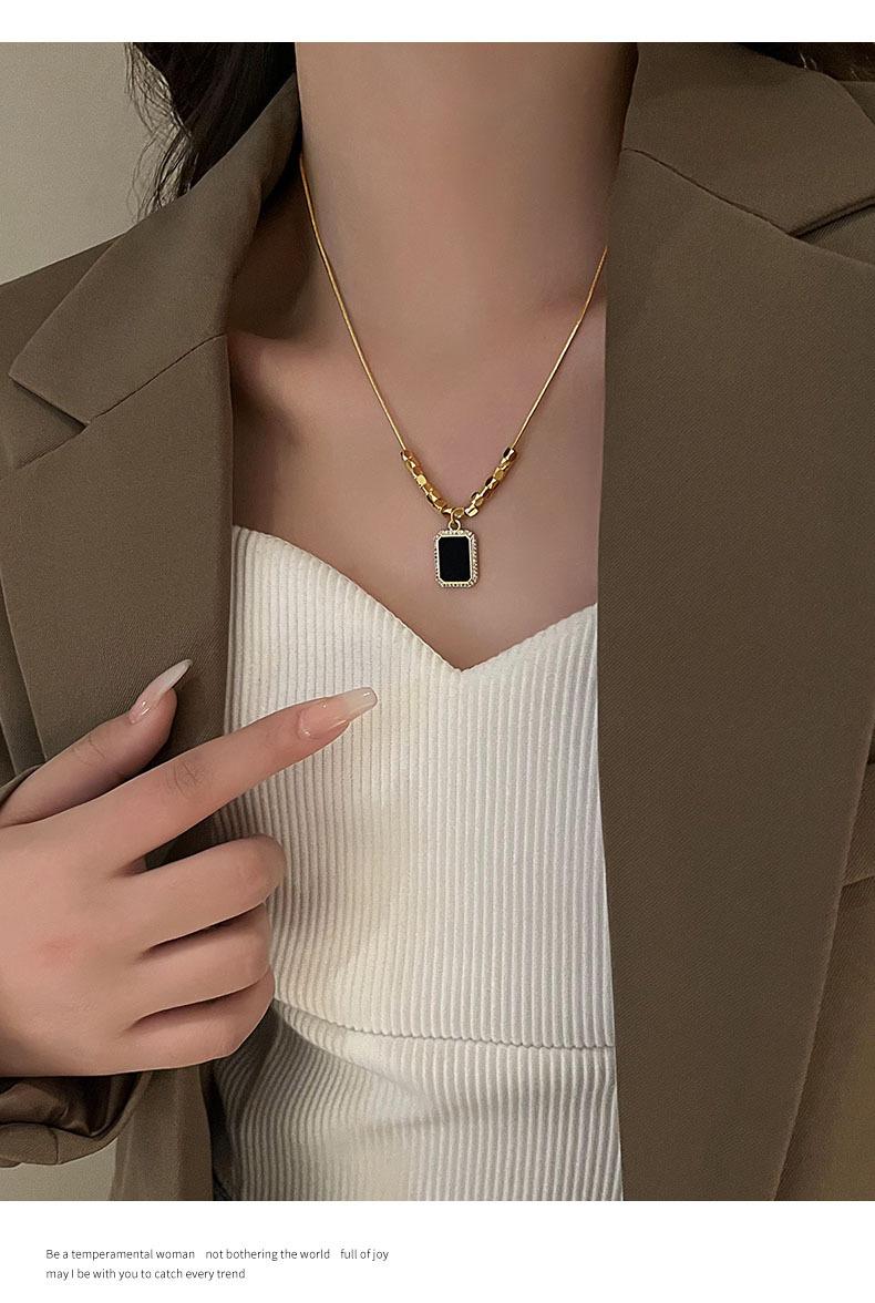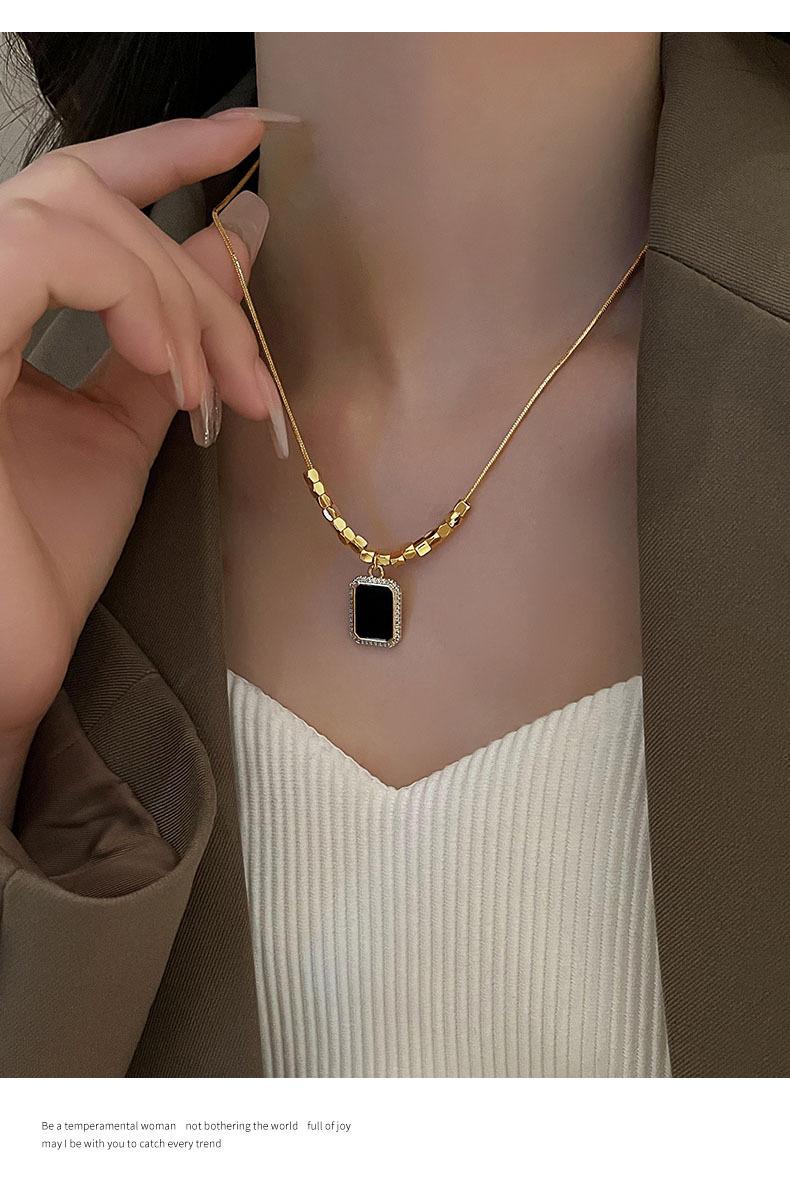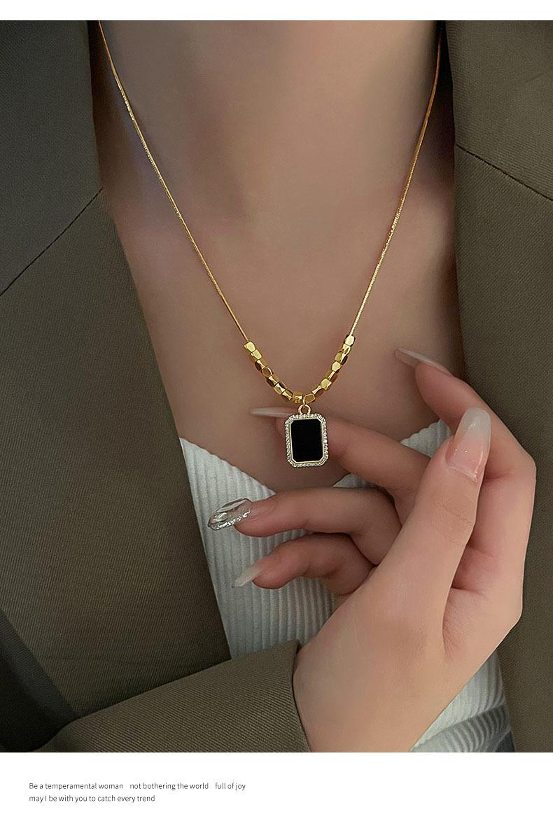 Collar con colgante cuadrado negro para mujer, estilo nuevo 2022, elegante, de alto sentido, cadena de lana, nicho de lujo ligero, elegante cadena para el cuello