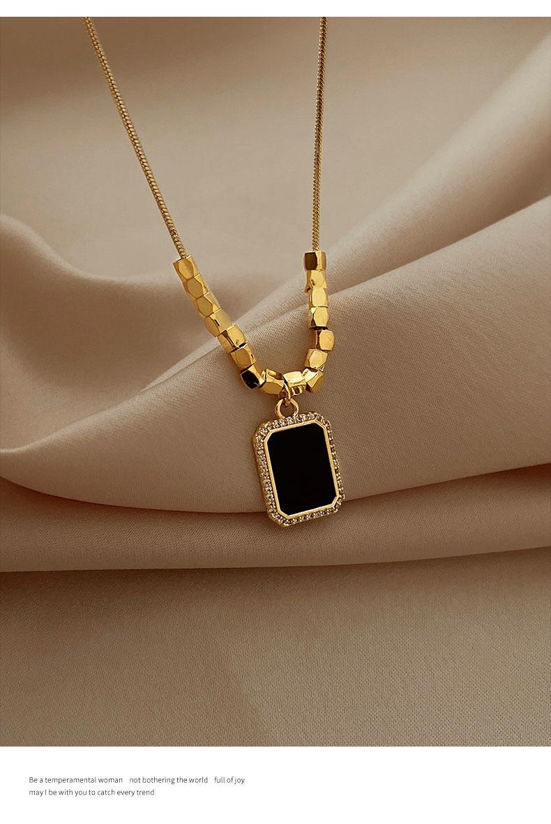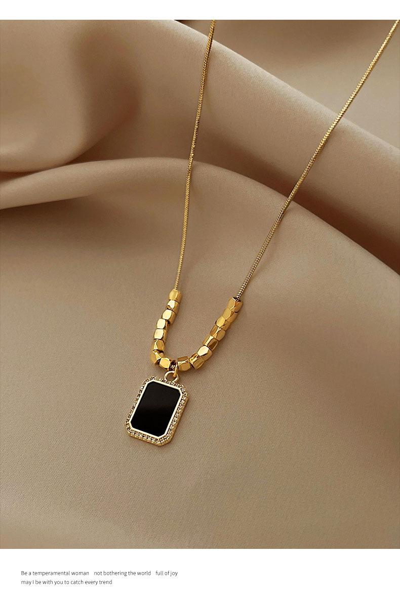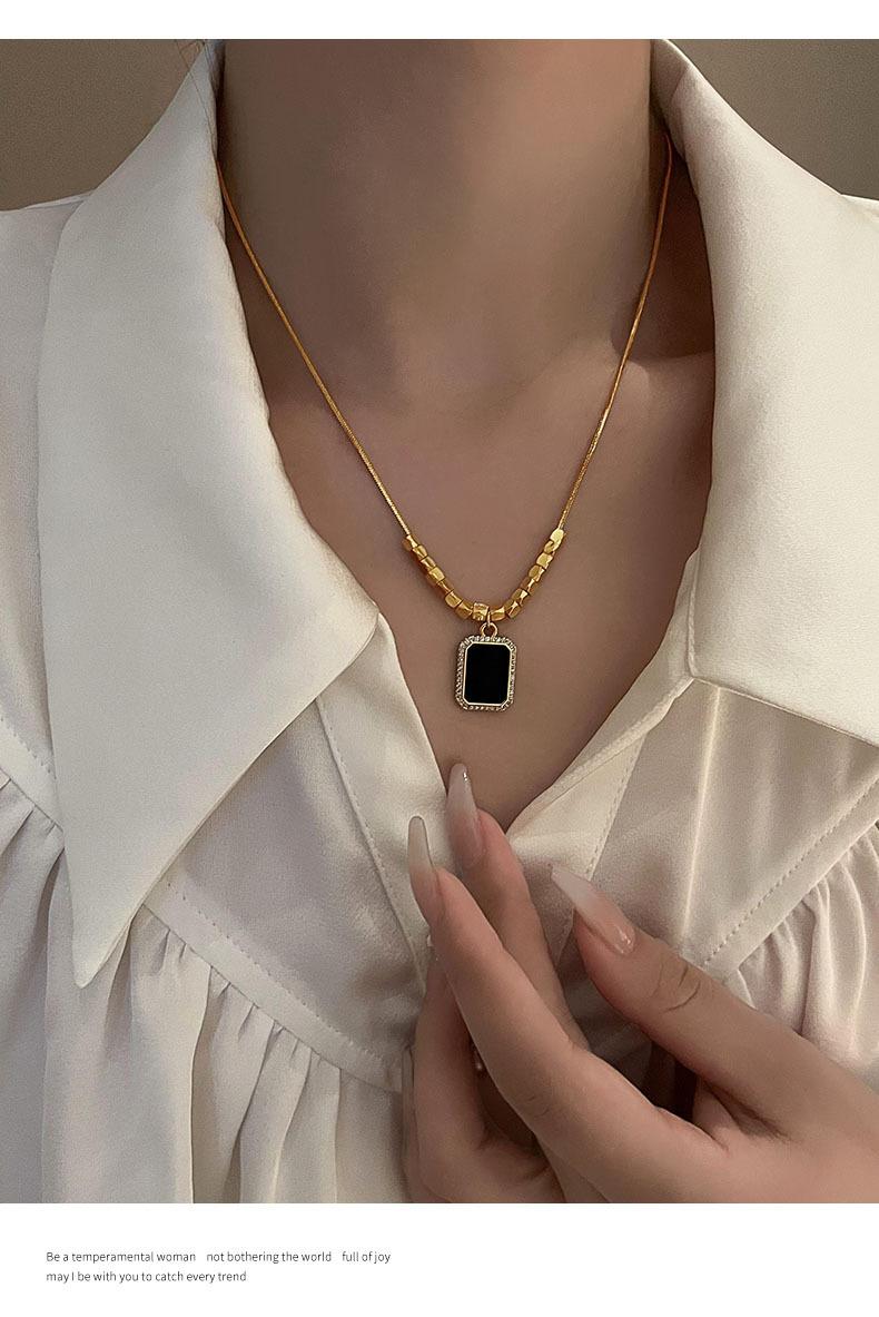 Collar con colgante cuadrado negro para mujer, estilo nuevo 2022, elegante, de alto sentido, cadena de lana, nicho de lujo ligero, elegante cadena para el cuello