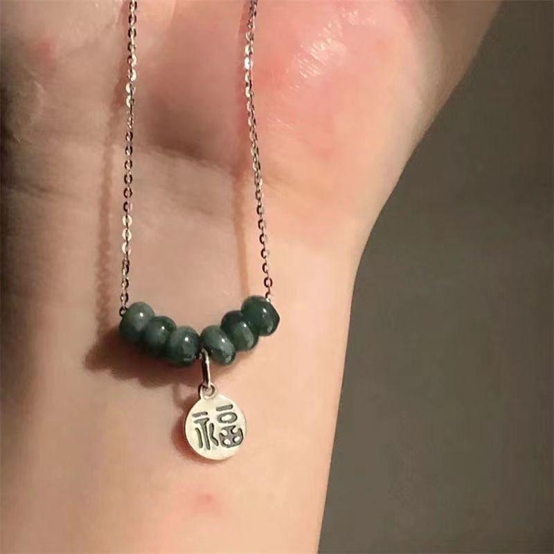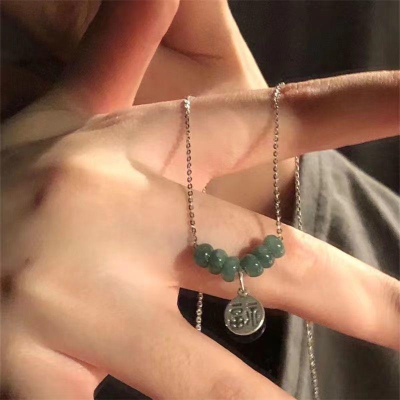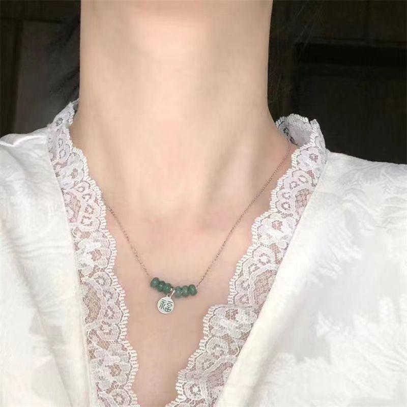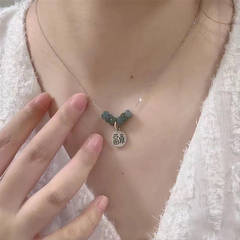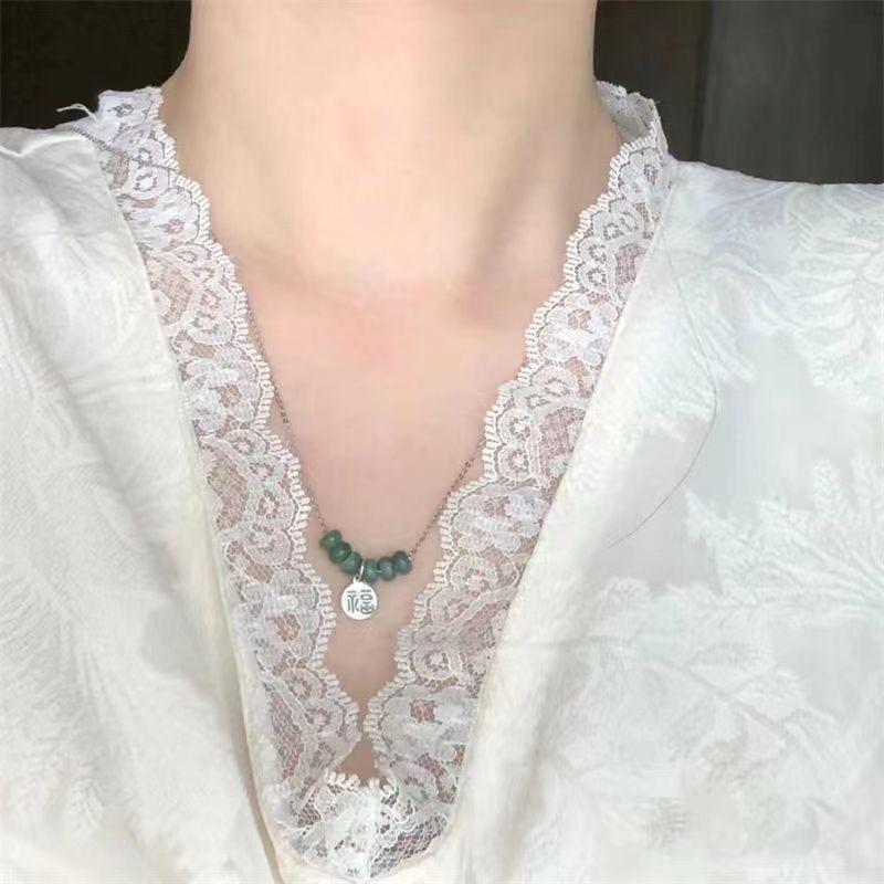 Nuevo collar chino con diseño de nicho de lujo con luz de hada suave y carácter fu de plata de Libro Rojo Pequeño, cadena de clavícula para mujer